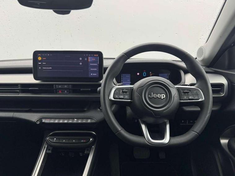 (AEB) Autonomous Emergency Braking with pedestrian and cyclist recognition, 10.25" Full TFT reconfigurable colour cluster, Adaptive cruise control, All-Terrain Mode Selector, Apple Carplay/Android Auto with wireless mirroring, BSRF connectivity box, Connectivity services, Drowsy driver detection system, eCall emergency call system, Front, rear and side parking sensors, Hands free power liftgate, Keyless Start/Engine On Button, Lane Centering, Lane keep assist, Odometer, PAS, Quick Guide English, Rear view camera with dynamic grid lines, Traffic jam assist, Traffic sign recognition, Urban blind spot monitor, Warranty Booklet - UK, Wireless charging, Battery default, High efficiency alternator, Idle coasting, Rear USB port with type-C charging, 3rd brake light, 7 Slots grille in gloss black, All power windows express Up/Down, Automatic headlights, Automatic high/low beam, Body colour exterior door handles, Day time running light, Foldable/Heated/Power door mirrors with Auto folding function and puddle light, Frameless auto dimming interior rear view mirror, Gloss black mirror caps, LED Fog lamps with cornering function, LED projector headlamps, LED rear lights, Privacy glass, Rain sensor, Rear side wing doors, Rear wiper, Silver skid plates, Welcome/leaving lighting, 3 rear headrests, 3 seat bench in 2nd row, Automatic A/C (1 Zone), Cargo Flex Kit - Flat floor on trunk area, height adjustable cargo floor, double face carpet/scratch resistant and washable, Central console dividers x2, Driver and front passenger sunvisor with vanity mirror, Foldable second row seats 40/60 - Fix and Fold, Front and rear velour floor mats, Front central armrest with storage, Front head restraints, Front passenger grab handle, Front passenger isofix child seat attachment, Front seat backrest pocket, I am Jeep label, Paddle shifter, Predisposal for tunnel pad cover, Single front passenger seat, Synthetic leather steering wheel, Tunnel pad cover and Interior rubber mats in Manovra, Anti-lock braking system (ABS), Child locks on rear doors, Electric parking brake with auto hold function, ESC - Electronic Stability Control + traction control, Hill descent control, Kit fix and go predisposition/housing only, Rear seat ISOFIX, Three 3 point rear seatbelts, Vulnerable road user recognition - Pedestrian/Cyclist incl. AEB, Passive entry, Volumetric anti theft alarm, 18" Diamond cut alloy wheels painted in matt black with summer not chainable, Fix and go puncture repair kit,