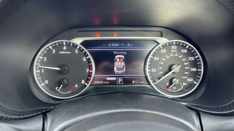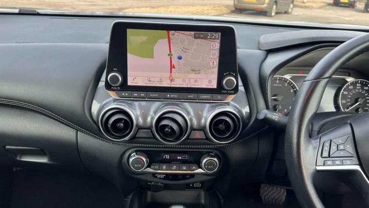 7" full colour TFT screen combimeter, Apple CarPlay and Google Android auto, Drive modes select (Eco, normal and sport), Emergency and breakdown call, Front parking sensor, Idle start/stop system, Intelligent lane intervention, Lane departure warning system, Nissan connect 8" touch screen entertainment system, Nissan connect nav with TomTom traffic, Nissan connect services and Wifi connection, Outside temperature sensor, Power Steering, Rear parking sensor, Traffic sign recognition, Trip computer, Voice recognition, Gasoline particulate filter, 6 speakers, Bluetooth system, USB, Aux-in and 12V socket, DAB Digital radio, Rear console USB port, Auto dimming interior rear view mirror, Auto headlights, Automatic hazard signal with emergency stop signal, Body colour bumpers, Body colour door handles, Electrically adjustable door mirrors with integrated indicators, Follow me home headlights, Front and rear electric window with one touch driver window, Heated and auto folding door mirrors, High beam assist, LED 3rd brake light, LED daytime running lights, LED headlamps, LED rear fog lamp, LED rear lamps, Rain sensor windscreen wipers, Rear privacy glass, Rear side wing doors, Rear wiper, Roof spoiler, Shark fin roof antenna in Pearl Black, Three blink turn signal, 3 height adjustable rear headrests, 3 seat bench in 2nd row, 60/40 split folding rear seat, Automatic climate control, Card holder on driver sunvisor, Cloth upholstery with black and metallic grey syntech leather inserts, Driver and passenger sliding and reclining seats, Driver side rear coat hanger, Driver/passenger sunvisors and vanity mirrors, Front and rear cabin lights, Front armrest, Front door pockets with bottle holders, Front head restraints, Front/rear passenger grab handles, Grey synthetic leather kneepad, Height adjustable driver's seat, Internal chrome door handles, Leather gearshift knob, Leather steering wheel, Luggage board, Luggage space lighting, Monoform sporty seats, Multifunction steering wheel, Rear door bottle holders, Single front passenger seat, Steering wheel mounted gearshift paddles, Telescopic steering wheel adjustment, Two cupholders in front centre console, Two rear isofix child seat anchorage points with top tether, Welcome light and console tray ambient lighting, ABS with EBD and brake assist, Active ride control, Active Trace Control, Driver and passenger airbags, Driver and passenger side airbags, Electric handbrake with auto hold function, Electronic Stability Programme (ESP), Front and rear curtain airbags, Height adjustable seatbelts, Hill start assist, Intelligent emergency braking with pedestrian and cyclist recognition, Rear door child safety locks, Seatbelt reminder for driver/front passenger and rear seats, Single tone horn, Three 3 point rear seatbelts, Traction control, Tyre pressure monitoring system, VDC Dynamic Vehicle Control, Ventilated rear brake discs, Alarm, Immobiliser, Intelligent key and start push button with walk away lock and approach unlock functions, Remote central locking,
