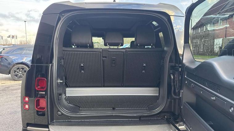 360 degree parking aid, 3D Surround Camera with 360 View, 180 Rear View, Front Traffic Detection, Forward Vehicle Guidance, Tow Hitch Assist and clear sight Ground View, Android Auto, Apple CarPlay, Assisted tailgate with soft close, Blind spot assist, Bluetooth system, Brake pad wear indicator, Clear exit monitor, Connected navigation pro, Driver condition monitor, Electric power assisted steering (EPAS), Lane keep assist, Push button start, Rear traffic monitor, Traffic sign recognition with adaptive speed limiter, Trip computer, Wade Sensing, 8 speed automatic transmission, All wheel drive system, Twin speed transfer box, DAB Radio (Digital Audio Broadcasting), Meridian 400w sound audio system with 11 speakers and subwoofer, Pivi pro connected, Automatic headlight levelling, Automatic headlights, Centre high mounted stop light, Electric heated/power fold door mirrors with approach lights and auto dimming driver side, Electric windows with one touch open/close and anti-trap, Follow me home lighting, Front fog lights, Heated rear window with timer, Heated windscreen, LED tail lights, Panoramic rear side glass, Privacy glass, Puddle lights, Rain sensing windscreen wipers, Rear fog lights, Rear wiper, Side hinged tailgate, Trailer stability assist, X-Dynamic badge, 12V power socket in loadspace, 3 seat bench in 2nd row, Alpine lights, Durable rubber cabin flooring, Durable rubber loadspace flooring, Footwell lights, Loadspace cover, Loadspace Hook, Multifunction steering wheel, Overhead stowage for sunglasses, Premium cabin lighting, Rear headrests, Rear ISOFIX, Rear reading lights, Single front passenger seat, Standard seat configuration, Storage glovebox, Sunvisors with illuminated vanity mirrors, Online pack with data plan - Defender, 5 x 3 point seatbelts, ABS, Brake hold function, Cornering brake control (CBC), Customer configurable autolock, DSC - Dynamic Stability Control, EBD - Electronic brakeforce distribution, Electric parking brake (EPB), Emergency brake assist, Emergency braking, ESP + traction control, Front airbags with passenger seat occupant detector, HDC - Hill descent control, Hill launch assist, Low traction launch, Remote for (e-Call, Optimised assistance call, InControl app, Climate, beep and flash and door), RSC - Roll stability control, Seat belt reminder, TPMS (Tyre pressure monitoring system), Alarm, Immobiliser, Intrusion sensor, Keyless entry, Locking wheel nuts,