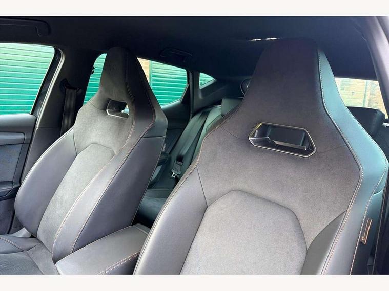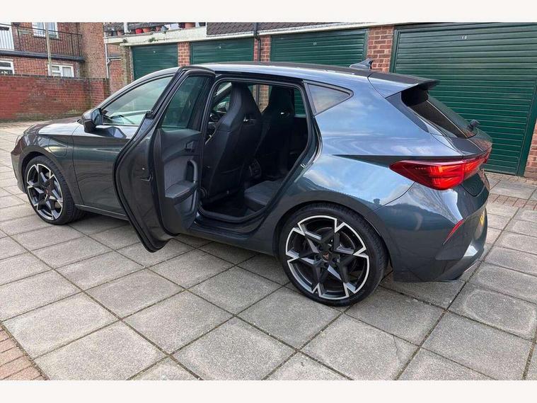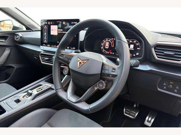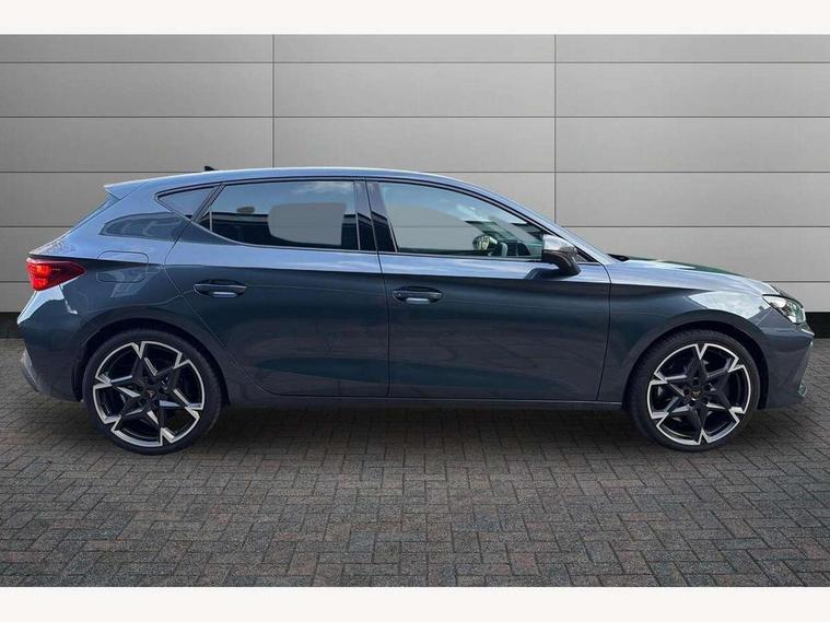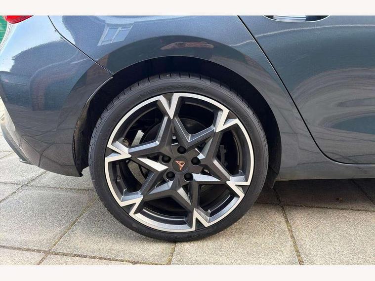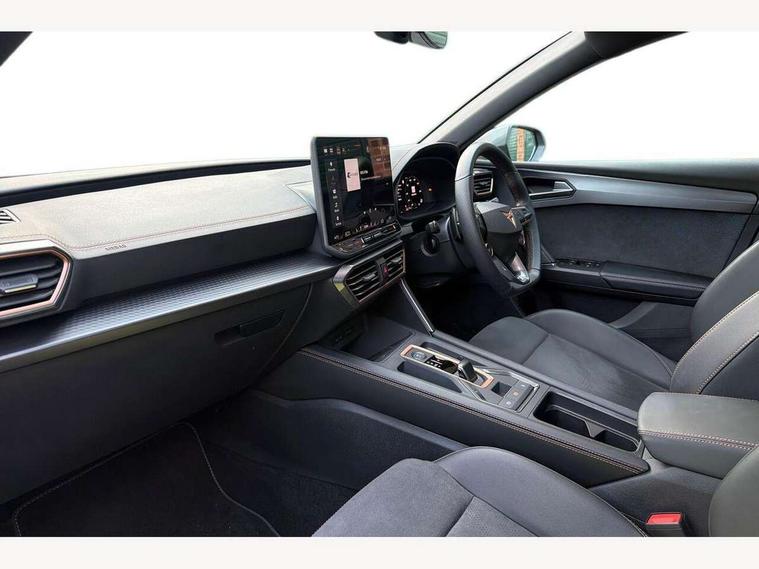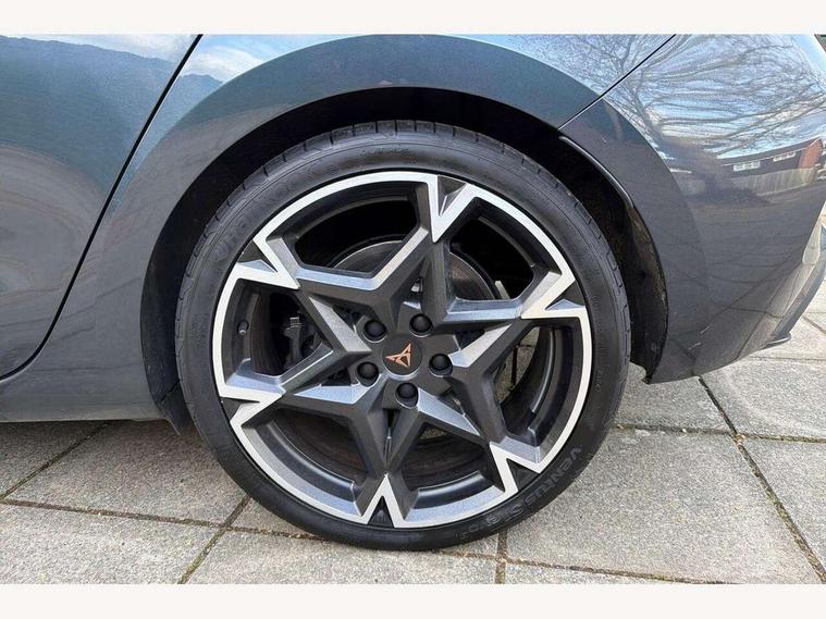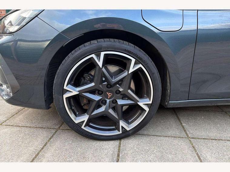 Adaptive cruise control with follow-to-stop and speed limiter, CUPRA drive profile selection with (Comfort/Sport/Individual), throttle response and gearshift mode, Digital cockpit, Dynamic road sign display, E-call, Four x USB Type C ports (2 in front and 2 in rear), Front and rear parking sensors, Front assist with forward collision warning braking reaction to vehicles, pedestrians and cyclists, Full link smartphone integration with Mirror Link, wireless Apple CarPlay and wired Google Android Auto, Lane assist, Lockable tailgate, Rear view camera, RPM, trip computer, outside temp gauge, instrument light brightness, low fuel warning light, lights on reminder, gearshift indicator, Service interval indicator, Start/stop system with regenerative braking, Wireless phone charger, 10 amp mode 2 charging cable, 16 amp mode 3 charging cable, Auxiliary input socket, Auto dimming rear view mirror, Body colour door handles, Body coloured bumpers, Cupra sports bumpers, Dark tinted rear windows, Electric front/rear windows, Electrically adjustable, heated and folding door mirrors, High beam assist, LED front fog lamps with cornering function, LED rear fog lamp, Matrix LED Headlights with variable light distribution, Matrix Beam and Dynamic headlight range control, Rain sensing wipers, Rear side wing doors, Rear wash/wipe, Separate daytime running light with automatic headlight control and coming home feature, Third brake light, Welcome light with logo projector in door mirrors, 12v power supply in centre console, 3 seat bench in 2nd row, 5 headrests, 60/40 split rear bench seat with armrest, Ambient lighting (glovebox, footwell, ambient lighting multicoloured), Black headlining, Cupra sports pedals, CUPRA Supersports, heated steering wheel with satellite buttons, Dinamica cloth upholstery, Electrically adjustable driver seat and lumbar support with memory function + manually adjustable passenger seat, Folding boot cover, Front and rear reading lights X 4, Front centre armrest, Heated front seats, Height/reach adjust steering wheel, Illuminated interior front door sills, Interior wraparound lighting, ISOFIX points in outer rear seats with top tether anchorage points, Single front passenger seat, Storage pockets on rear of front seats, Sunvisors with illuminated mirror, Three zone climate control, Dynamic and comfort pack - Leon Cupra, Media system plus with 12.9" display + navigation pack - Leon Cupra, 3 point seatbelts on all rear seats, ABS, Brake control system - ESC and brake booster, Child proof door locks, Cupra black brake calipers, Driver and front passenger airbags with front passenger airbag de-activation, front side and curtain airbags, Electronic parking brake, Hill hold control, Rear disc brakes, Seat belt reminder for front and rear seats, Tiredness recognition system, Tyre pressure monitoring system, Anti theft alarm system with interior monitoring in cab, backup horn and towing protection, KESSY Advanced - Keyless start, keyless entry, Locking wheel bolts, Chrome and copper interior detailing, 19" Polar machined sport black and silver alloy wheel with 91Y tyres, Breakdown kit, Tool kit,