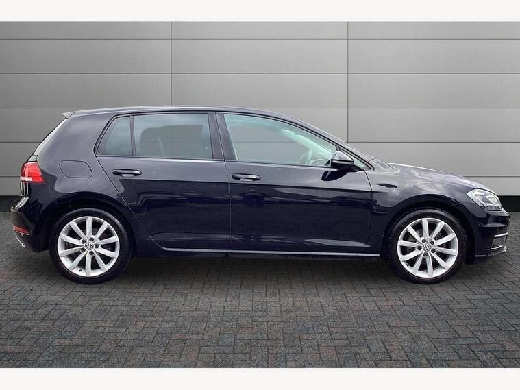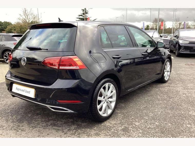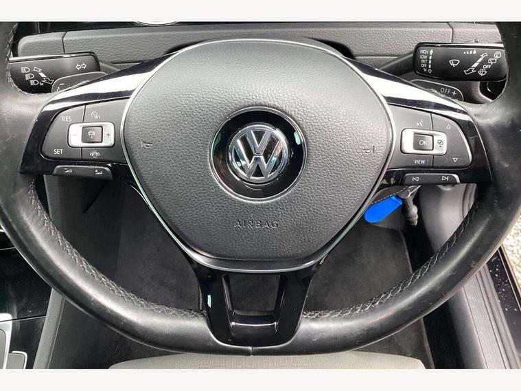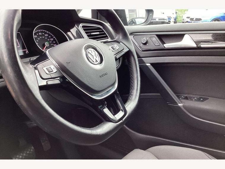 'Lights On' Reminder warning buzzer, ACC - Adaptive cruise control with front assist, forward collision warning, distance monitoring, city emergency brake and speed limiter, Bluetooth telephone and audio connection for compatible devices, Brake pad wear indicator warning light, Driver alert system, Driving Mode Selection with four preset modes - Eco, normal, sport or individual modes, Multifunction computer with visual gear change recommendation for fuel consumption, Power assisted speed sensitive electro-mechanical steering, Push tank flap, Speed limit display, Speedo, rev counter, electronic odometer, trip, service interval display, exterior temperature and fuel gauge, Stop/start system, Think blue trainer driver tips and journey analysis, Warning buzzer and light for front seatbelts unfastened, Battery regeneration during braking, XDS electronic differential lock, Composition media system, DAB Digital radio receiver, Driver Personalisation profile selection, MP3/WMA compatability, Multi device interface (MDI) via USB connection, Premium USB cable in choice of either Apple or Android smartphone compatibility, SMS Functionality, Title and cover art display, USB and SD card connectivity, Volkswagen media control, Black front air intake and radiator grille with chrome insert, Black rear diffuser, Body colour bumpers, Body colour door handles, Body colour door mirrors with integrated indicators, Chrome trimmed front air intake surrounds, Dusk sensor + automatic driving lights, Electric front windows, Electric rear windows, Electrically adjustable and heated door mirrors, Fully galvanised body, Heated rear windscreen, High level 3rd brake light incorporating LED Technology, LED front fog lights with static cornering light function, Range adjustable headlights via infotainment system with LED daytime running lights, Rear fog lamp, Rear number plate lights incorporating LED technology, Rear tinted glass 65% light absorbing from B pillar backwards, Rear window aerial, Rear window wash/wipe with intermittent wipe, Reflectors in all doors, Tailgate with integrated rear roof spoiler, Windscreen wipers/ intermittent wipe + 4 position delay, 12V socket in luggage compartment, 3 rear headrests, 4 load lashing points in luggage compartment, 60/40 split folding rear seat backrest, Bag hook in luggage compartment x 2, Climate control - 2 zone electronic air conditioning with automatic air recirculation and allergy filter, Cooled glovebox, Cover for storage compartment in centre, Dust/pollen filter, Front + rear carpet mats, Front centre armrest with storage compartment and two rear air vents, Front seat back storage pockets, Grab handles front x 2, rear x 2 with integrated coat hooks, Height and reach adjustable steering wheel, Illuminated vanity mirrors, Instrument lighting white adjustable panel illumination, Interior light delay, Isofix preparation for 2 rear child seats, Load through provision with rear centre armrest and cupholders x2, Luggage compartment lighting, Overhead storage box, Pearl grey headlining, Storage box in luggage compartment, Storage compartment in roof console with cover, Storage compartments in centre console, Storage compartments in front doors, Storage compartments in rear doors, Stowable luggage compartment cover, Sun visors, Variable boot floor, height adjustable and removable, Ambient lighting pack - Golf, Convenience Pack - Golf, Mirror pack - Golf, Winter pack - Golf, 3 rear three point seatbelts, Airbags - Driver's and front passenger's, curtain airbag, Driver's knee, front side impact and passenger's airbag deactivation switch, Anti-lock Braking System (ABS) with Hydraulic Brake Assist (HBA), Automatic post collision braking system, Child locks on rear doors, Driver/Passenger optimised head restraints, Electronic parking brake with auto hold, Electronic stability control (ESC) including Electronic differential lock (EDL) and ASR (Traction control) with deactivation via infotainment system, Front ventilated disc brakes and rear disc brakes, Pre crash preventive occupant protection, Three point height adjustable front seatbelts with tensioners, Tyre pressure loss indicator, Alarm with interior protection and deactivation via infotainment system, Electronic engine immobiliser, Chrome plated air vent surround, Chrome plated electric mirror adjustment switch surround, Chrome-plated light switch surround, Piano black decorative inserts in centre console, Tumbler decorative inserts, Steel space saver spare wheel,
