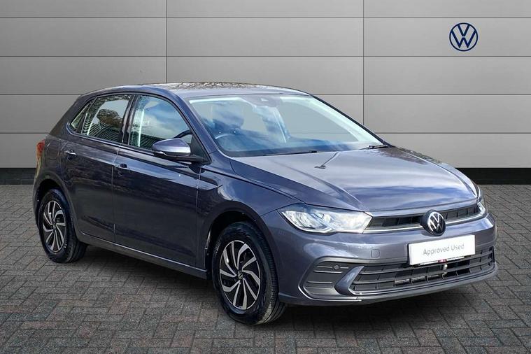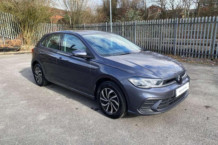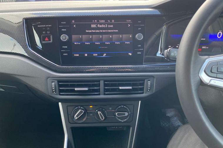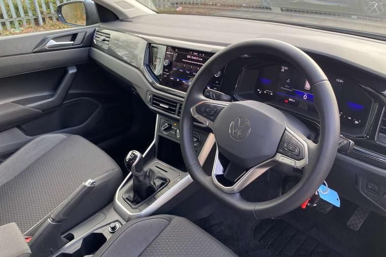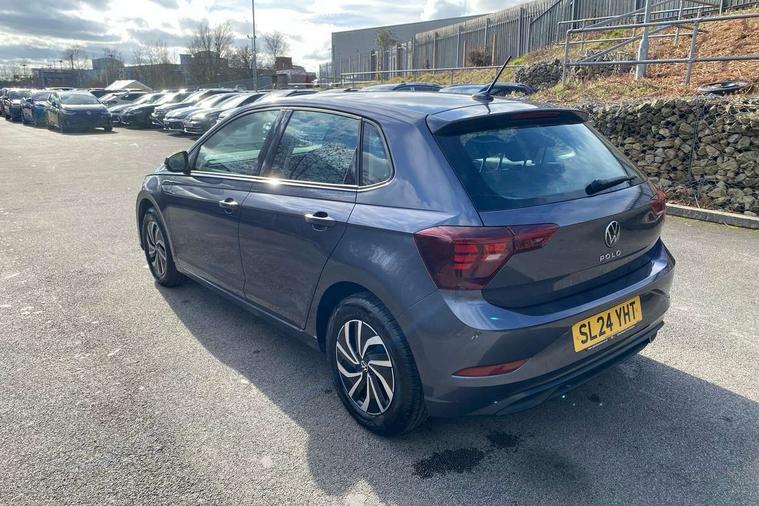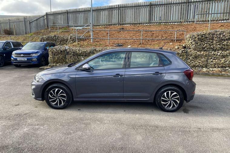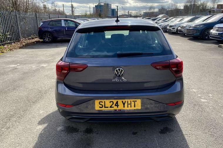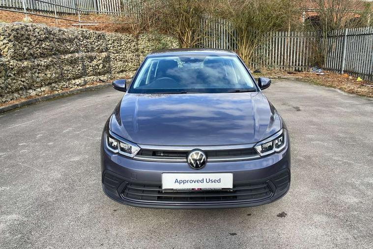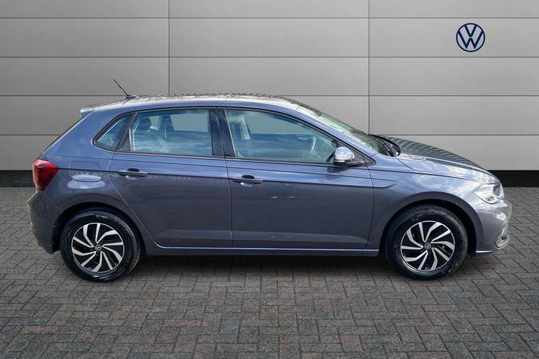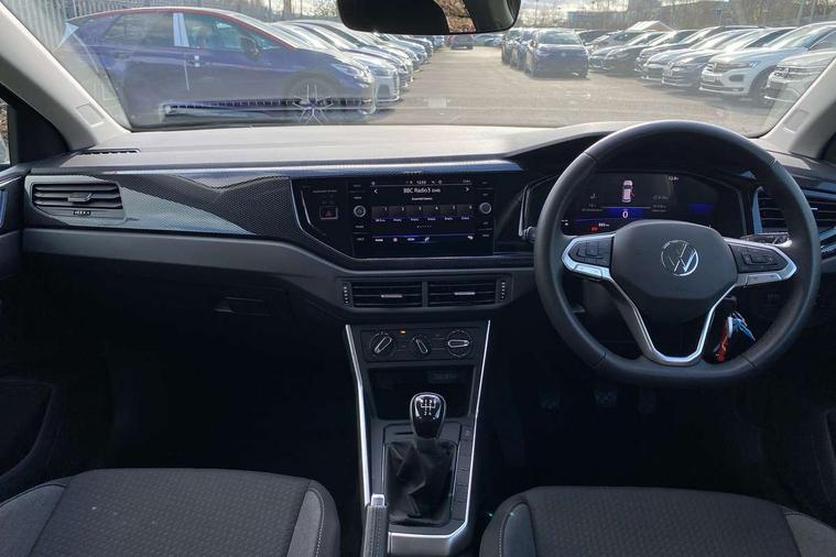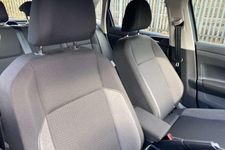 Adaptive cruise control without follow-to-stop and speed limiter, Advanced driver attention and drowsiness monitor, Bluetooth mobile phone interface, Dynamic road sign display, Emergency call service, Power assisted speed sensitive steering, Preparation for navigation system with media and internet package, Preparation for We connect and We connect plus, Speedo and rev counter, electronic odometer, trip, service interval display and exterior temperature gauge, Standard rear axle, Travel Assist - Lane keeping system and traffic jam assist, Travel assist including emergency assist, Trip computer, Warning signal and warning light for front and rear seatbelts not fastened, Washer fluid level indicator, Wireless app connect, Front wheel drive, Rear shock absorpion, Start-stop system with battery regeneration (recuperation - energy recovery during braking), DAB Digital radio, Diversity antenna for FM reception, Front and rear 6 speakers, Automatic dimming interior rear view mirror, Automatic headlight control with LED separate daytime running lights with coming/leaving home function, Body colour bumpers with chrome inserts, Body colour door handles, Body colour door mirrors, Electric front windows, Engine badge deletion, Headlight range adjustment, Heat insulating and laminated safety glass windshield, Heat insulating darkened glass in side and rear windows, Heat insulating glass windscreen, LED Headlights, LED rear combination lamps, Power folding adjustable/heated exterior mirrors and front passenger exterior mirror lowering function, Rain sensor, Rear electric windows, Rear fog light, Rear side wing doors, Rear windscreen washer and wiper with interval delay, Third brake light, 12V power socket in centre console, 2 front and 2 rear reading lights with switch off delay and dimmer, 2 USB-C ports in the front, 2 USB-C charging sockets on the center console in the rear, 3 rear head restraints, 60/40 split folding rear seat and rear seat bench not split, Ceramique roof lining, Chrome plated radiator grille inserts, air vent surrounds and light switch surrounds, Door and side trim panel, Driver and front passenger seat height adjustment, Driver/passenger sunvisors with illuminated vanity mirrors, Front centre armrest, Front seat backrest storage pockets, Front standard seats, Handbrake lever handle in leather, Hartley/Thomas cloth upholstery, Headliner in recycled material, Isofix child seat preparation easy-fit (for two outer rear seats, and front passenger seat) compatible with I-size, Leather trimmed gear knob, Luggage compartment cover, Luggage compartment lighting, Removable luggage compartment floor, Single front passenger seat, Standard climatic zones, Standard pedal cluster, Three spoke leather wrapped multifunction steering wheel, Light and vision pack - Polo, 3 point height adj front seatbelts + pretensioners, 3x3 point rear seatbelts, ABS, Driver and front passenger airbag with front passenger airbag deactivation, Drivers and front passengers safety optimised head restraints, ESC (Electronic stability control) + EDL (Electronic Differntial lock) and ASR (Traction control), Extended and predictive pedestrian/ cyclist protection, Front assist with autonomous emergency braking (for Adaptive Cruise Control ACC up to 130 mph), Front curtain and side airbags with center airbag, Front disc brakes, Hill hold control, Manual child lock in rear doors, Rear drum brakes, Single tone horn, Tyre pressure loss indicator, Alarm with interior protection, Anti-theft alarm system with interior monitoring, backup horn, and towing protection, Anti-theft wheel bolts, Electronic engine immobiliser, Lava stone black gloss/matt decorative inserts in dash and front door panels, Low rolling resistance tyres,