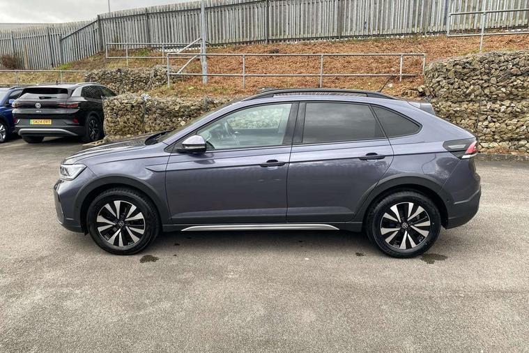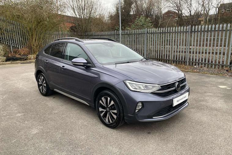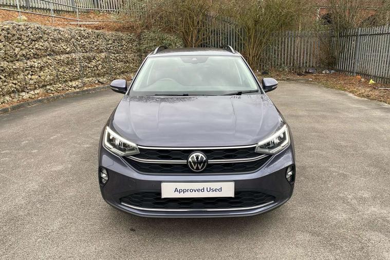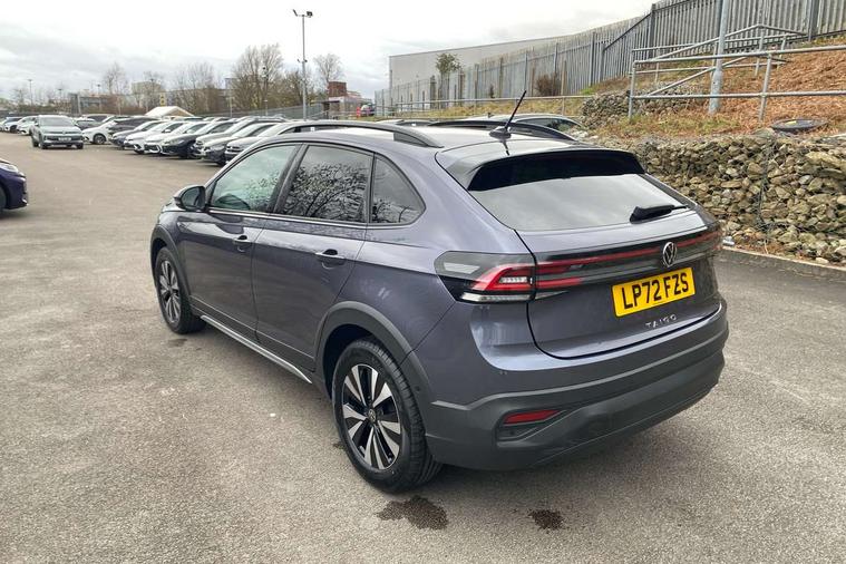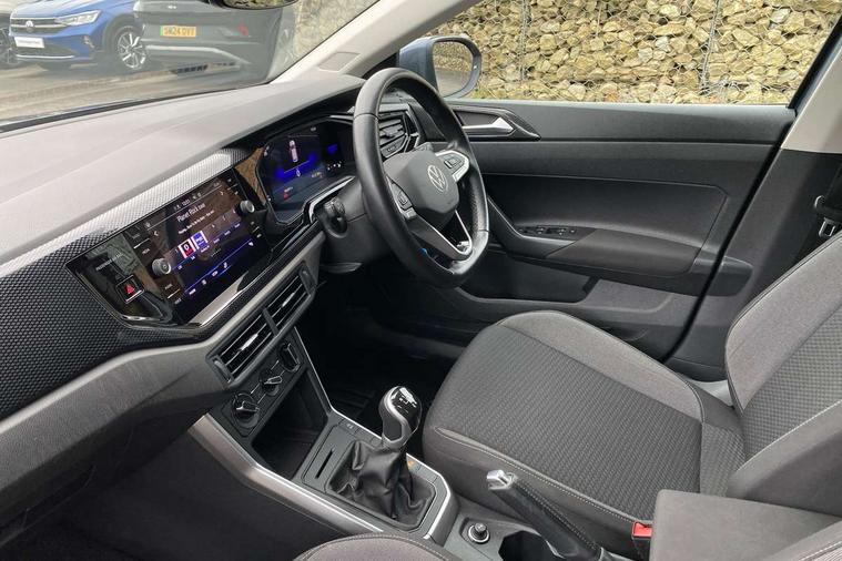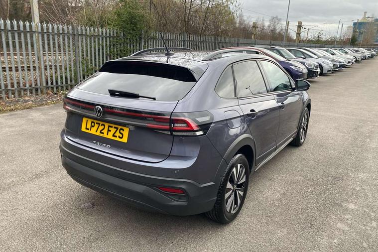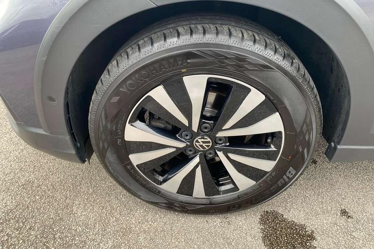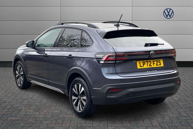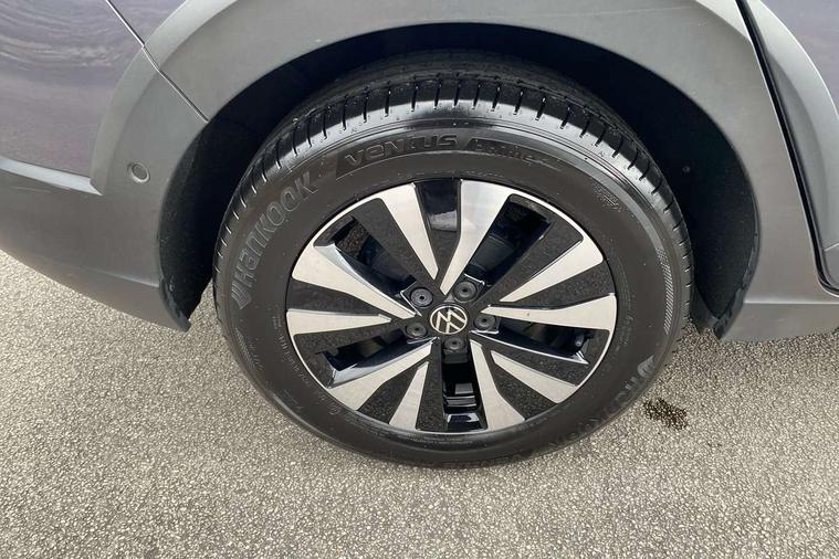 Driver alert system, e-Call (emergency call), Power Steering, Travel assist including emergency assist, Washer fluid level indicator, Wireless Charging including Bluetooth, Start-stop system with battery regeneration (recuperation - energy recovery during braking), WeConnect plus, Ambient lighting with logo projection, Aspherical driver's exterior mirror, Auto headlights, Body coloured bumpers, Body coloured exterior mirror housings and door handles, Electric windows, External USB type C socket and charging sockets, Front fog lamps with cornering function, Headlight range control, Heat insulating glass windscreen, LED headlamps, LED rear combination lamp, LED third brake light, Left convex exterior mirror, Power folding adjustable/heated exterior mirrors and front passenger exterior mirror lowering function, Rear fog light on one side, reversing light on both sides, Rear side wing doors, Rear wash/wipe with intermittent wipe setting, 'Slash/ Austin' Cloth upholstery, 12V socket in centre console, 2 front reading lights, 3 rear head restraints, 3 seat bench in 2nd row, Black carpets, Child seat anchor for child seat system i-Size, 2x top tether and child seat anchor in front on front passenger side, Door and side trim panels in titan black, Driver and front passenger seat height adjustment, Front centre armrest, Handbrake lever handle in leather, Height and reach adjustable steering wheel, Leather trimmed gear knob, Leather wrapped multifunction steering wheel, Luggage compartment floor, Luggage compartment light, Lumbar support for driver's and front passengers seat, Seat covers in titanium black, Single front passenger seat, Split folding backrest with centre armrest and unsplit rear seat bench, Storage compartment under front seats, Sun visors with illuminated vanity mirrors, Chrome Package - Taigo, Drivers assistance pack - Taigo, Light and Sight pack including High beam assist - Taigo, 2 x 3-point seatbelts/outer rear seats with ECE label, 3-point seat belts in front with pretensioner and height adjustment, 3-point seatbelt for centre rear seat, Driver and front passenger airbags with front passenger airbag de-activation, front side and curtain airbags, Driver and front passenger safety-optimised head restraints, Electronic stability control, Extended and predictive pedestrian/ cyclist protection, Front and rear disc brakes, Front curtain and side airbags with center airbag, Hill start assist, Manual rear child locks, Single tone horn, Tyre pressure loss indicator, Anti-theft alarm system with interior monitoring, backup horn, and towing protection, Anti-theft wheel bolts, Lava stone black gloss/matt decorative inserts in dash and front door panels, Low rolling resistance tyres,