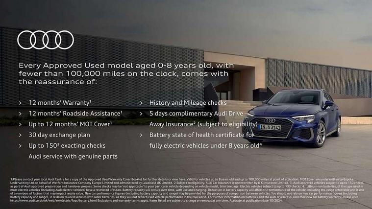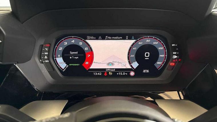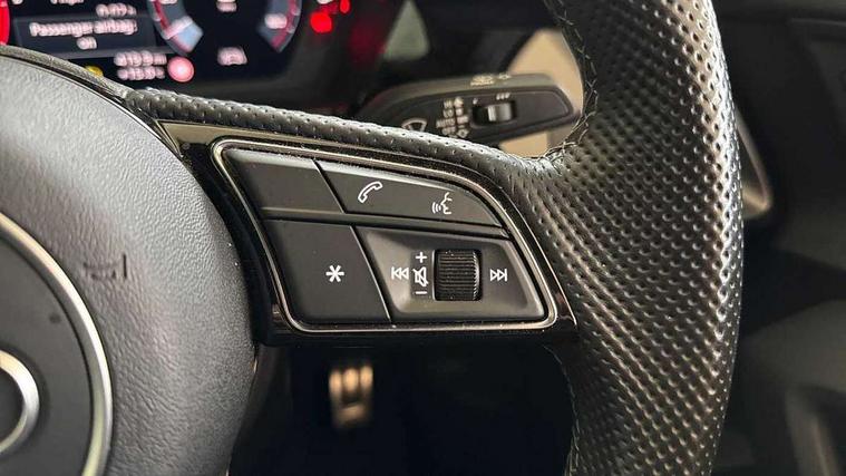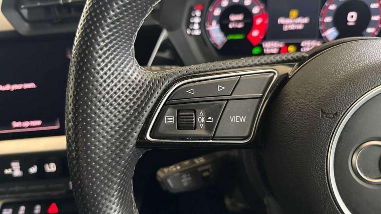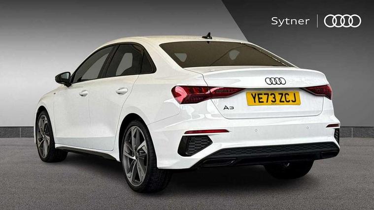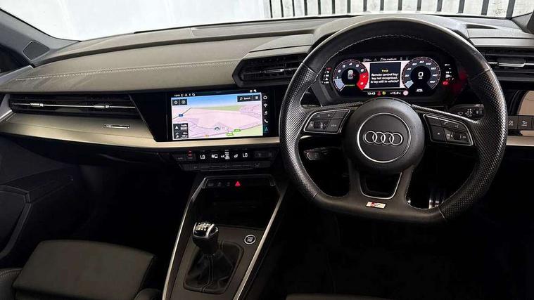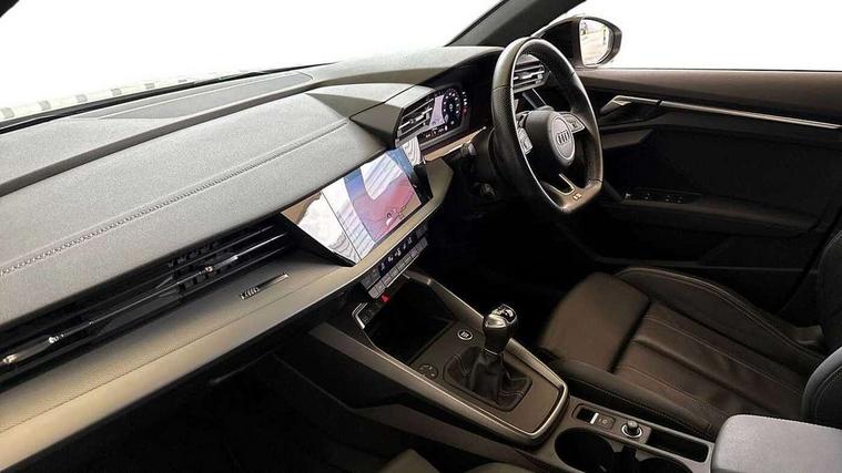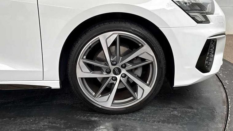 Audi drive select (Auto, Comfort, Dynamic, Efficiency and Individual), Audi smartphone interface, Audi Virtual Cockpit - 10.25" digital and colour instrument cluster, Automatic start/stop system with recuperation, Bluetooth interface, Camera based traffic sign recognition, Collision avoidance assistant, Cruise control + speed limiter, e-Call (emergency call), Electromechanical power speed sensitive steering, Lane departure warning system, MMI Navigation Plus with high resolution 10.1" colour touch screen display, Rear parking sensors, Service indicator, Trip computer, Voice control system with natural language interaction, Sports suspension, 2xUSB-C connection with data and charging functions, 6 passive loudspeakers, CD player, DAB Digital radio, 3rd brake light, Acoustic glass windscreen, Audi beam uses LEDs to project the Audi logo onto the ground as you exit your A3, Auto dimming frameless rear view mirror, Electrically adjustable/heated/folding/auto dimming door mirrors with integrated LED indications + kerb view function for passenger side, Front electric windows, Illuminated door sills with aluminium inserts at the front with S logo, LED daytime running lights, LED headlights with LED rear lights and dynamic rear indicators, Light and rain sensors, Model and engine designation badges at rear, Privacy glass - dark tinted rear window, rear door and side windows, Rear boot, Rear electric windows, Rear side wing doors, S roof spoiler, 12V socket and storage compartment in front centre console, 3 seat bench in 2nd row, 3 spoke flat bottomed multi-function leather sport steering wheel, 4 way electrically adjustable lumbar support for driver and front passenger, 60/40 split folding rear seat bench, Black cloth headlining, Dual zone electronic climate control, Front and rear centre armrest in artificial leather, Front and rear headrests, Front/rear floor mats, Height and reach adjustable steering wheel, Interior lighting - glove compartment light and right hand side, Luggage compartment floor covering, Manual boot compartment lid, Single front passenger seat, Stainless steel pedals and front footrest in black, Twin leather upholstery with front sports seats S embossed logo, Aluminium interior elements pack - A3, Black styling pack - A3 Saloon/Black edition, LED interior lighting pack - A3 Saloon, 3x3 point rear seat belts, Driver and front passenger airbag with passenger airbag deactivation, Electronic Stabilisation Control (ESC) including ABS, ASR and EDL, First aid kit with warning triangle and 2 safety vests, Front side airbags with head airbags and interaction airbag, Pre-sense front with pedestrian and cyclist detection, Seatbelt monitoring, Tyre pressure loss indicator, Anti theft alarm, Anti-theft wheel bolts, Electronically operated child locks, Immobiliser, Remote control central locking, Aluminium air vent surrounds, Dark spectrum aluminium inlays, accent surfaces in the dashboard and centre console in platinum grey silk effect paint finish, 19" 5 arm trapezoid design alloy wheels in matt grey with diamond cut finish,
