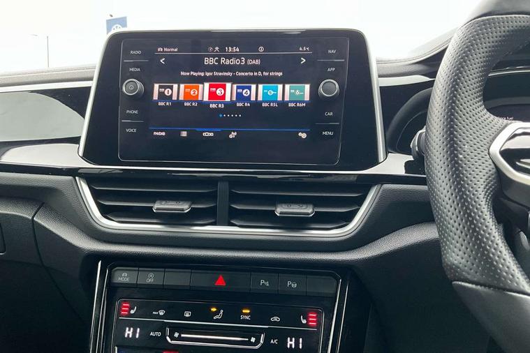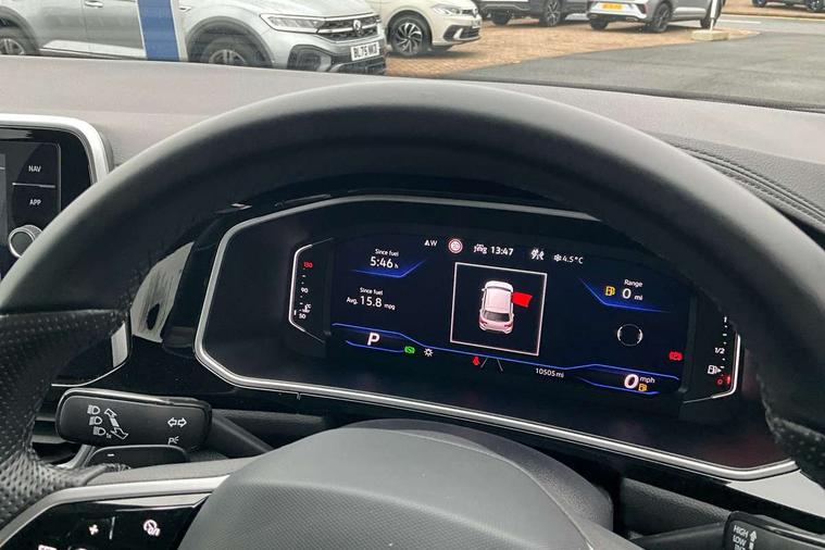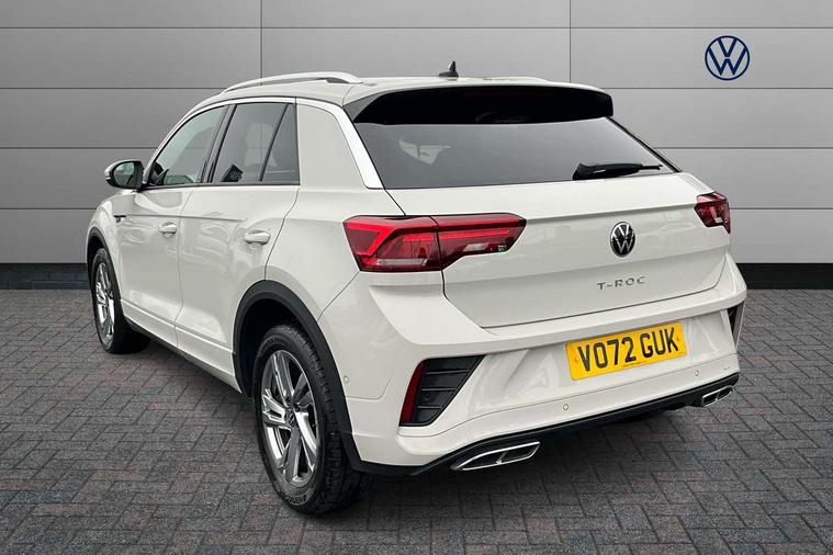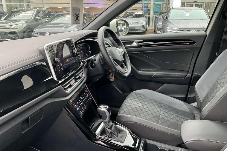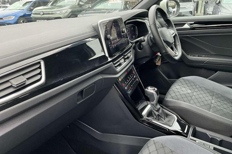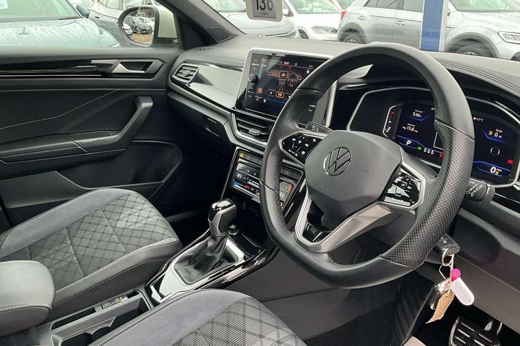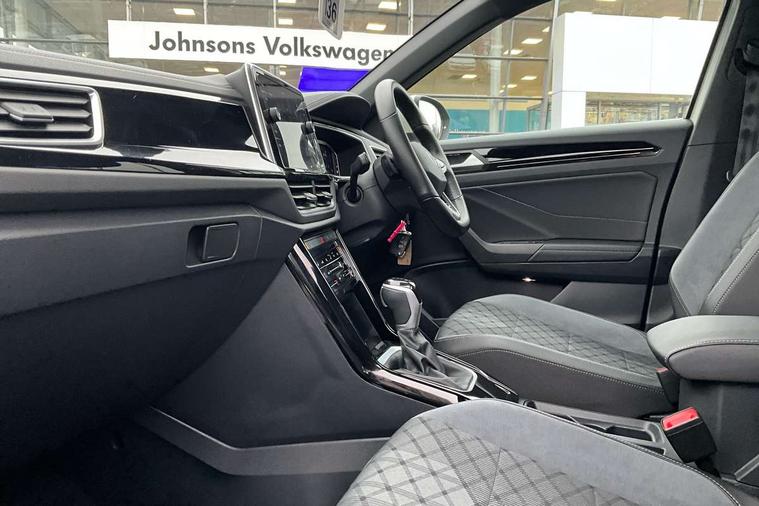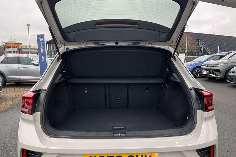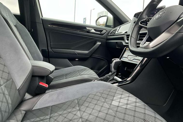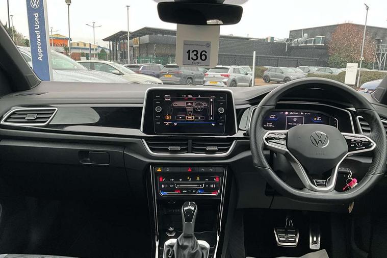 10.25" Digital cockpit pro, Bluetooth mobile phone interface, Driver alert system with fatigue detection, Driver tips and journey analysis, Emergency call service, Lane keeping system Lane Assist, Modified key software - reduce switch off time for key status change to Long no motion, Online services, Park assist including front and rear parking sensors, Service interval indicator, Tailgate/trunk lid release from outside, Think blue trainer driver tips and journey analysis, Warning sound and light for front seatbelts unfastened, Wireless app connect, Battery regeneration during braking, Start/stop function with battery regeneration, Diversity antenna for FM reception, Front and rear 6 speakers, Music playback - MP3, WMA and AAC files, Premium USB cable in choice of either Apple or Android smartphone compatibility, SD card slot, Simultaneous pairing of 2 compatible mobile devices, Title and cover art display, We Connect and We Connect Plus functionality, 3rd brake light, Auto dimming interior rear view mirror, Automatic hazard lights activation under emergency braking, Automatic headlight control with LED separate daytime running lights with coming/leaving home function, Extended roof spoiler, Exterior mirrors aspherical on driver side, convex on front passenger side, External USB type C socket and charging sockets, Front windscreen wiper with intermittent wipe and 4 position delay, Heated rear window, LED Plus headlamps, LED rear combination lamps, LED rear number plate lights, LED tail lamp rear comination lamps, Power windows with comfort operation and circuit breaker, R-Line design body coloured bumpers, Rain sensor, Rear exhaust tailpipe, Rear fog light on one side and reversing lights on both sides, Rear side wing doors, Rear wash/wipe with intermittent wipe setting, Remote electrically foldable door mirrors, puddle lights and reverse activated passenger's door mirror, 12V power socket in centre console, 3 rear head restraints, 3 seat bench in 2nd row, 4 load lashing points in luggage compartment, Air care climatronic air conditoning system with active combination filter and 2-zone temperature control, Black roof lining, Chrome plated radiator grille inserts, air vent surrounds and light switch surrounds, Door and side trim panel with leatherette insert, Drawer under drivers seat, Front + rear carpet mats, Front centre armrest, Front cupholders x 2, Front footwell illumination, Front reading light, Front scuff plates with R logo, Instrument lighting, white adjustable panel illumination, Interior ambient lighting and surround lighting, Interior light delay, Isofix child seat preparation, Leather gearshift handle, Load-through provision with cup holder when folded down ('Unsplit rear seat bench, split folding backrest, with centre armrest), Luggage compartment lighting, Single front passenger seat, Stainless steel pedals, Storage compartment in left and right luggage area, Storage compartment in rear doors, Storage compartments in driver and front passenger doors, Sunvisors with illuminated vanity mirrors, Variable boot floor, height adjustable and removable, Driver assistance pack without proactive passenger protection - T-Roc, 3 point height adj front seatbelts + pretensioners, 3 point seatbelts in outer rear with ECE label, ABS, Child locks on rear doors, Driver and front passenger airbag with front passenger airbag deactivation, Driver and front passenger safety-optimised head restraints, Drivers seatbelt reminder, Electronic parking brake, Electronic Stability Control (ESC) inc EDL (Electronic Differential Lock) and ASR (Traction Control), Front and rear passengers curtain airbag system including front side airbags, Front assist with city emergency braking and pedestrian monitoring, Front seat side impact airbags, Hill start assist, Predictive pedestrian protection, Rear disc brakes, Single tone horn, Tyre pressure loss indicator, Volkswagen roadside assistance, Alarm with interior protection, Anti-theft alarm system with interior monitoring, backup horn, and towing protection, Remote central locking with SAFELOCK, radio remote control with 2 remote control folding keys, Trims for alloy wheels,