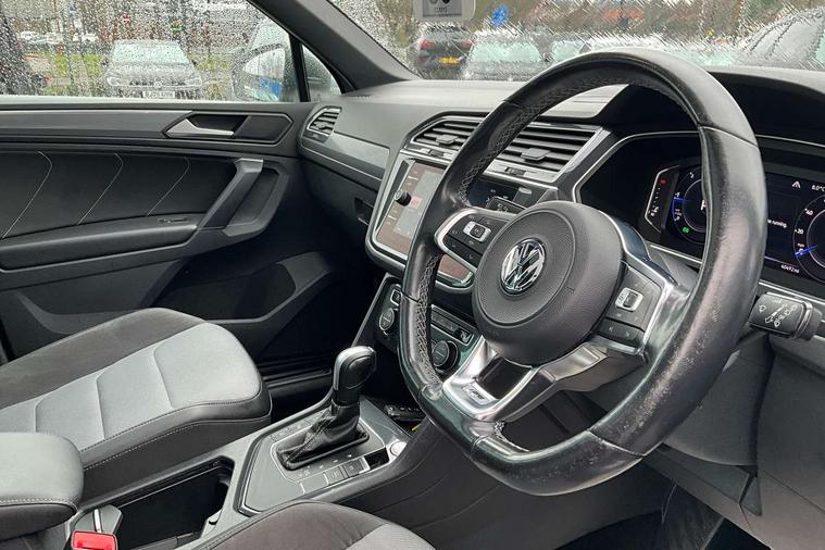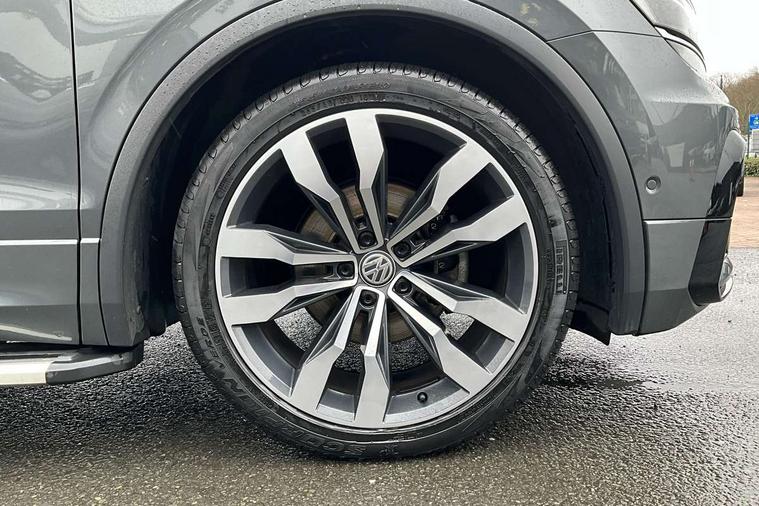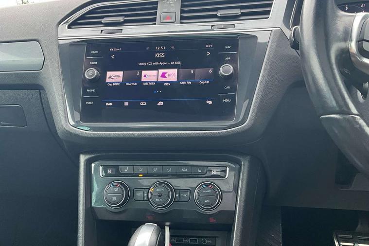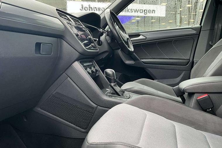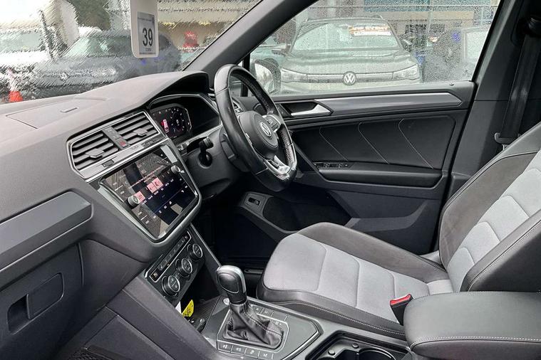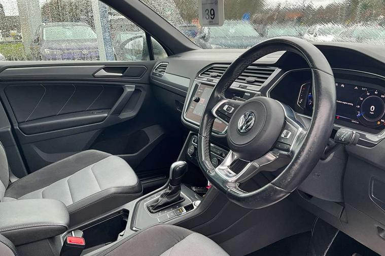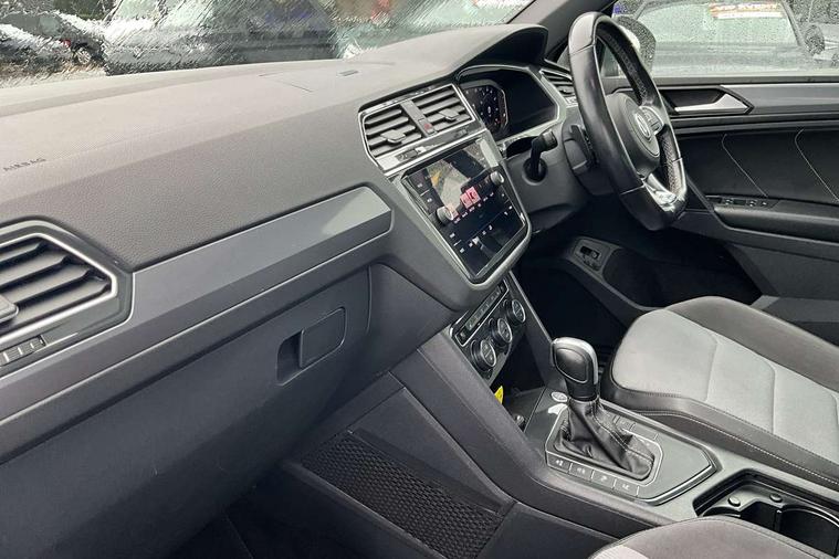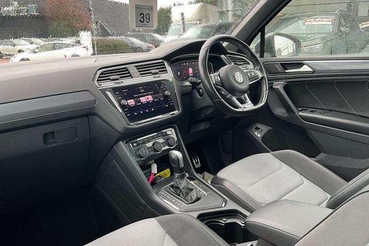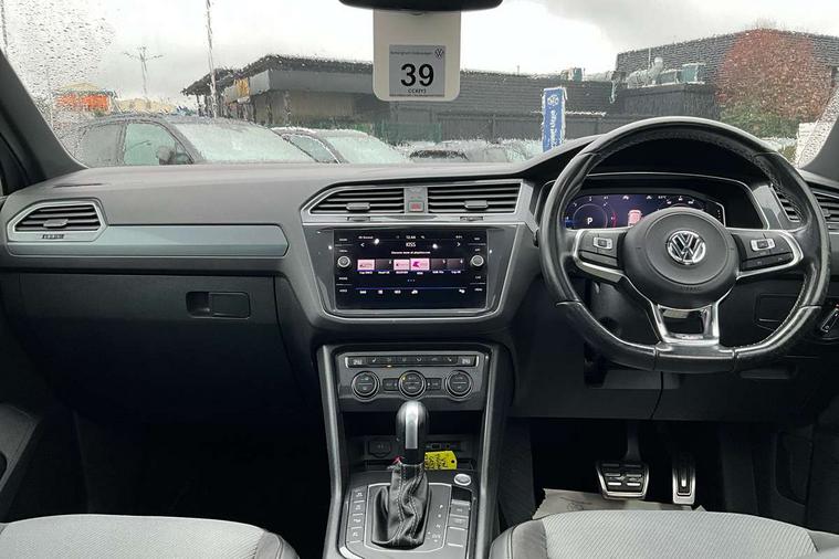 2D/3D map view, Active information display, Adaptive cruise control, App-Connect, Area view with park assist steering and front and rear parking sensors, Bluetooth phone integration system, Car information display, Distance control assist, Driver alert system with fatigue detection, Driver profile selection, Front assist, radar sensor controlled distance monitor, city emergency braking + predictive pedestrian protection, Fully electric tailgate + keyless entry and start, Instrument cluster, Lane assist, Lights on warning, Multifunction computer with visual gear change recommendation for fuel consumption, Outside temperature display, Progressive power assisted steering, Service interval indicator, Speed limiter, Start/Stop function, Warning sound and light for doors and tailgate open, Battery regeneration during braking, Diesel particulate filter, Misfuel prevention device for diesel engine, XDS electronic differential lock for improved traction and handling, 2 x USB connection + USB charging socket, 4 X 20 watt output, DAB Digital radio, SD card slot, Simultaneous pairing of 2 compatible mobile devices, SMS functionality - read, compose and send SMS messages using touch-screen display, Title and cover art display, 3D effect cherry red LED rear tail lights, Aluminium decorative inserts in dash and door panels, Auto dimming interior mirror, Automatic activation of hazard warning lights, Body colour door handles, Body colour door mirrors, Body colour rear spoiler, Body colour side skirt, Body coloured bumpers, Chrome side window surrounds, Chrome trimmed radiator grille, Coming/leaving home lighting function, Dusk sensor + auto driving lights, Electric panoramic sunroof with sunblind, Electrically heated and foldable door mirrors, door mirror puddle lights and reverse activated kerb view adjustment on passenger's door mirror, Front and rear electric windows, Heated rear window, High level 3rd brake light, LED headlights with dynamic light assist daytime running lights and cornering front fog lights, LED rear number plate lights, Piano black front air intake and rear diffuser, R Line body kit, R Line side sills, Rain sensor windscreen wipers, Rear tinted glass from B-pillar backwards approx 65% tinted, Rear windscreen washer and wiper with interval delay, Side skirts and rear bumper with chrome insert, Silver front underbody protection and rear diffuser, Silver roof rails, Trailer Stability Programme, Unique R Line badging, Windscreen wipers/ intermittent wipe + 4 position delay, 12V socket in centre console storage area, 2 cup holders in front, 3 rear headrests, 3 zone climate control, 4 load lashing points, 40:20:40 split folding rear seats, Bag hook in luggage compartment, Black headlining, Foldable front passenger seat backrest, Front + rear carpet mats, Front centre armrest with 12v socket, Front centre armrest with storage + rear 2 air vents, Front seat back storage pockets, Front seat R Line logo with rear seat backrest, Front seatback folding tables, Height/reach adjust steering wheel, Illuminated driver/passenger vanity mirrors, Illuminated scuff plates, Instrument lighting white adjustable panel illumination, Interior light with delay, Isofix Preparation 2 Rear child seats, Leather gear knob, Load through provision with 2 cupholders when folded, Lockable cooled glovebox, Luggage compartment lighting, Map pockets on front seats, Passenger seat height adjuster, Removable luggage cover, Sliding/reclining rear seats, Stainless steel pedals, Storage compartment in driver's door, Storage compartment in passenger's door, Storage compartment in rear doors, Storage compartments in luggage area left and right, Storage tray on dashboard, Sunglasses storage, Three spoke leather trimmed multifunction steering wheel with aluminium inserts and R Line Logo including paddle shift, Unique R Line door sill protectors, Variable boot floor, height adjustable and removable, Ambient lighting pack - Tiguan, R Line styling pack - Tiguan, 3 rear 3 point seatbelts, ABS+EBD+Brake assist, Active bonnet, Active pedestrian safety system, Curtain airbags, Driver/Front Passenger airbags, Driver/Passenger whiplash optimised head restraints, Drivers knee airbag, DTC - Drag torque control, Electronic parking brake with auto hold, ESC with EDL, ASR, EDTC and trailer stabilisation function, First aid kit, Front seat side impact airbags, Front side airbags, Front ventilated disc brakes and rear disc brakes, Head airbag system, Height adjustable front 3 point seatbelts + pretensioners, Hill hold control, Passenger airbag deactivate switch, Passenger knee airbag, Pre crash preventive occupant protection, Rear side airbags, Rigid safety cell with front and rear crumple zones, Two tone horn, Warning sound and light for front seat belts if unfastened, Warning triangle, Alarm with interior protection, Electronic engine immobiliser, Remote central locking with 2 remote folding keys, Chrome door trim inserts, Dark grey decorative inserts in dash and door panel, Piano black decorative inserts in centre console, 20" Suzuka alloy wheels with mobility self sealing tyres + anti theft wheel bolts, Steel space saver spare wheel,