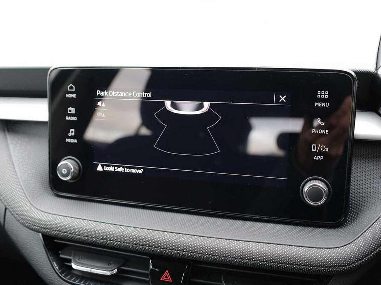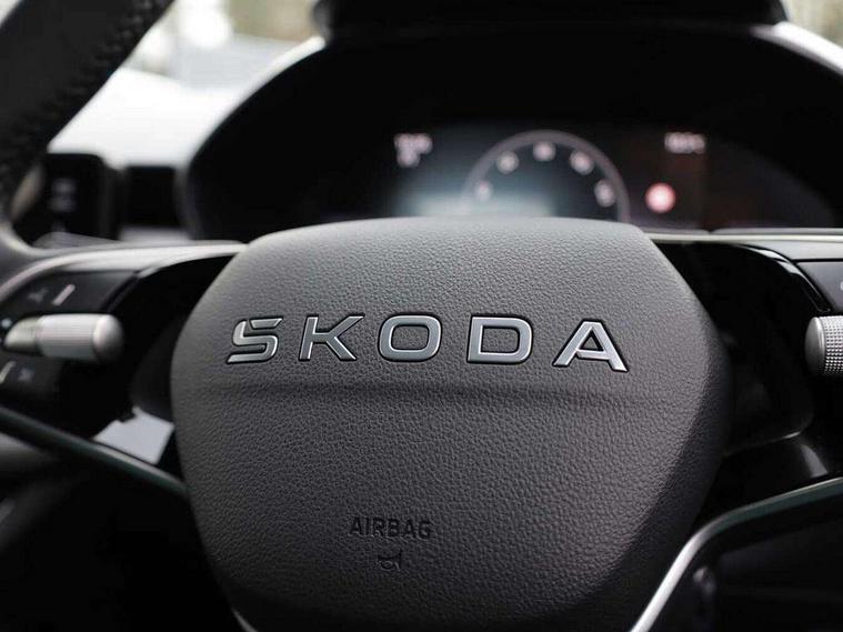 8" Digital instrument display, Advanced driver attention and drowsiness monitor, Bluetooth connection, Electromechanical power steering, Exterior temperature gauge, Service interval indicator, Traffic sign recognition, Wireless SmartLink for Apple CarPlay and Android Auto, 6 Speakers (4 in front and 2 in rear), 8.25" Skoda infotainment touchscreen display, Auxiliary socket for external MP3 player, DAB digital radio reception, Auto dimming rear view mirror, Body colour door mirrors, Body coloured bumpers, Door mirror integrated indicators, Front and rear electric windows, Front window wiper intermittent control, Headlight range control - Automatic, Ice scraper in fuel cap, LED 3rd brake light, LED daytime running lights with coming and leaving home feature, LED rear lights, Rear LED fog light, Rear side wing doors, Rear window wiper with washing nozzles, Roof mounted spoiler, SKODA tailgate lettering in chrome, Unique dark chrome design logo on alloy wheels, 2 reading lights in front and 2 reading lights in rear, 3 rear headrests, Backrest split and folding, Central console with removable cup holder and storage box, Chrome handbrake release button, Dual zone air conditioning with climatronic electronic control, Fabric upholstery, Front centre armrest, Gearshift knob/handle in leather, Grain satin black interior door handles, Hand brake lever handle in leather, Height adjustable front headrests, Height adjustable front seats, Height adjustable steering wheel, ISOFIX and TopTether anchorage points to the outer rear seats, ISOFIX and TopTether on the front passenger seat, Luggage compartment lighting, Manually adjustable lumbar support in front seats, Pollen filter, Rear seat bench unsplit, Single front passenger seat, Skoda lettering on steering wheel, Storm grey headlining, Sun visors with mirror and airbag label on passenger side, Textile floor mats, Ticket holder, Umbrella in drivers door, 3-point height adjustable front seats belts with pretensioner and force limiter, Automatic warning lights in case of crash, Driver and passengers airbag with switch off function, e-Call+, ESC including ABS, MSR, ASR, EDS, HBA and XDS, Front and rear seat belt warning, FRONT ASSIST (AEB City and AEB Inter Urban), Front side airbags, Head airbags, One tone horn, Pedestrian protection, Three rear 3-points safety seat belts with pretensioner and force limiter including stop function for outer rear seat belts, Tyre pressure monitoring system, Anti-theft alarm system including immobiliser, interior monitoring, backup horn, and towing protection, Central locking with radio remote control, interior controls, SAFE function and 2 foldable keys, Black painted air vents, Grain satin black central console cover, Metallic grey upper decorative trim, Satin black door and side trim panel in front, Textile Kota grey lower decorative inserts, Anti-theft wheel bolts protection, Super-low rolling resistance tyres,