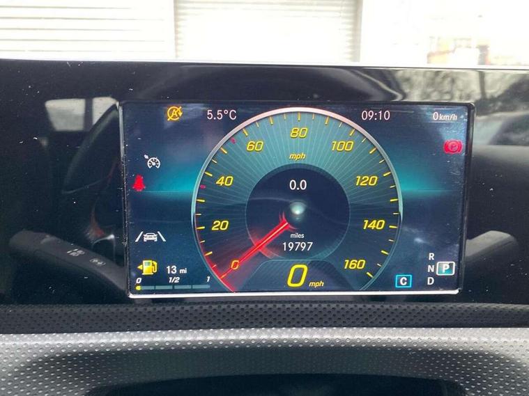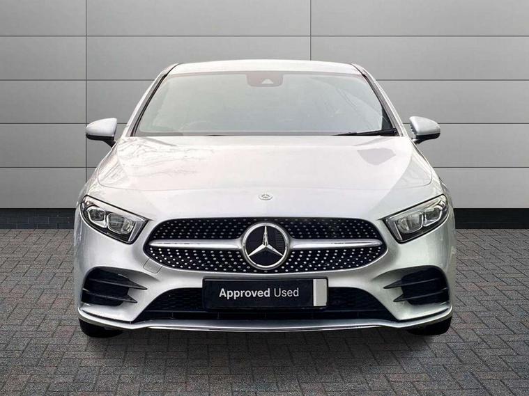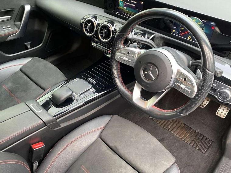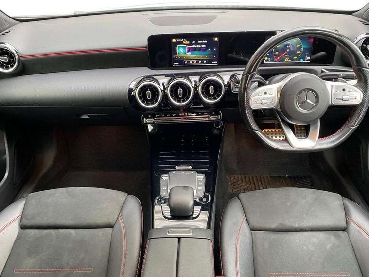 180 degree rear view camera with parking guidelines, 7" colour screen in instrument panel, 7" touchscreen media display, Attention assist, Brake pad wear indicator warning light, Car wash mode, Cruise control + speed limiter, Direct steering, Dual bluetooth interfaces, DYNAMIC SELECT with a choice of driving modes (ECO, Comfort, Sport and Individual), ECO start/stop function, Fluid level warning indicator for fuel, oil, coolant and washer fluid, Hard-disk navigation, Hey Mercedes Voice activation, Lamp failure indicator, Mercedes me connect including emergency call system, accident recovery, breakdown and maintenance management, Mercedes me remote services, Outside temperature gauge, Owners manual in English, Pre-installation for private car sharing, Preinstallation for Mercedes Benz link, Service indicator (ASSYST), Speed sensitive power steering, Trip computer, Lowered comfort suspension, Rear axle torsion beam, 2 USB ports (type C) in rear stowage compartment and one in front of center console, 6 speakers, DAB Digital radio, MBUX multimedia system with DAB digital radio and touchpad including satellite navigation, Mercedes-Benz sound system - 100W, 4 Electric Front and Rear windows, Adaptive brake lights, AMG bodystyling - Front apron with splitter in chrome, rear apron with chrome trim and chrome visible trim elements in tailpipe, Black weather strip, Body colour bumpers, Body colour door handles, Body colour side skirt, Body coloured door mirrors, Chrome beltline trim, Diamond radiator grille with chrome pins and silver louvre + chrome insert, Electric adjustable and heated door mirrors with integrated LED side indicators, Exhaust system - Twin visible tailpipes in polished stainless steel, Headlamp assist automatic headlamp activation, Heated glass rear windscreen + timer control, LED high performance headlamps with integrated LED daytime running lights, LED tail lamp, LED third brake light, Privacy glass, Radio aerial, Rain sensing windscreen wipers with two sensitivity settings, Rear fog lights, Window line trim strip in chrome, 3 Spoke flat bottom leather multi function steering wheel with perforated leather in grip area, 40:20:40 split folding rear seats, Artico man-made leather/Microfibre Dinamica upholstery with red contrast stitching, Auto Mercedes-Benz child seat recognition sensor, Black air vents with surround in silver chrome, Black roof lining, Brushed stainless steel sports pedals with rubber studs, Controller on centre console with chrome surround, Floor mats with stitched edging and AMG lettering, Front centre armrest with storage compartment, Front door sills with Mercedes Benz lettering, Front seat backs luggage nets, Front seat cushion length adjustment, Front sports seats with adjustable head restraints, Galvanished gear shift paddles on steering wheel, Heated front seats, Height/reach adjustable steering column, Interior mirror with reading lamps in black and frameless, Manual height adjustable front seats, Rear head restraints, Seat occupancy sensor for front passenger seat, Stowage compartment in centre console with retractable cover, Sunvisors with illuminated vanity mirrors, Touchpad on center console, Twin front cupholders, Two zone thermotronic luxury automatic climate control, Light and sight pack - A Class, Seat comfort pack - A Class, 3 rear 3 point seatbelts, ABS with Brake Assist, Active bonnet, Active brake assist includes forward collision warning system with autonomous braking, Adaptive brake assist with hold function and hill start assist, Black seatbelts, Childproof locks manually operated for rear doors and electrically operated for rear power windows, Crash responsive emergency lighting, Driver and passenger head and side airbags, Drivers knee airbag, Dual stage driver/passenger airbags, Electronic parking brake, ESP curve dynamic assist, ESP with ASR, Front and rear seatbelt reminder, Front brake callipers with Mercedes Benz lettering, ISOFIX and top tether child seat fixing points in two outer rear seats, Tyre pressure monitoring system, Warning triangle and first aid kit, Window airbags, Alarm system/interior protection/immobiliser, Keyless Go, Remote central locking and crash sensor with emergency opening function, Urban guard vehicle protection system with immobiliser and interior protection, Dinamica microfibre trim in black, 18" AMG 5 twin spoke light alloy wheels in titanium grey with highsheen finish, Summer tyres, Tirefit sealant kit,