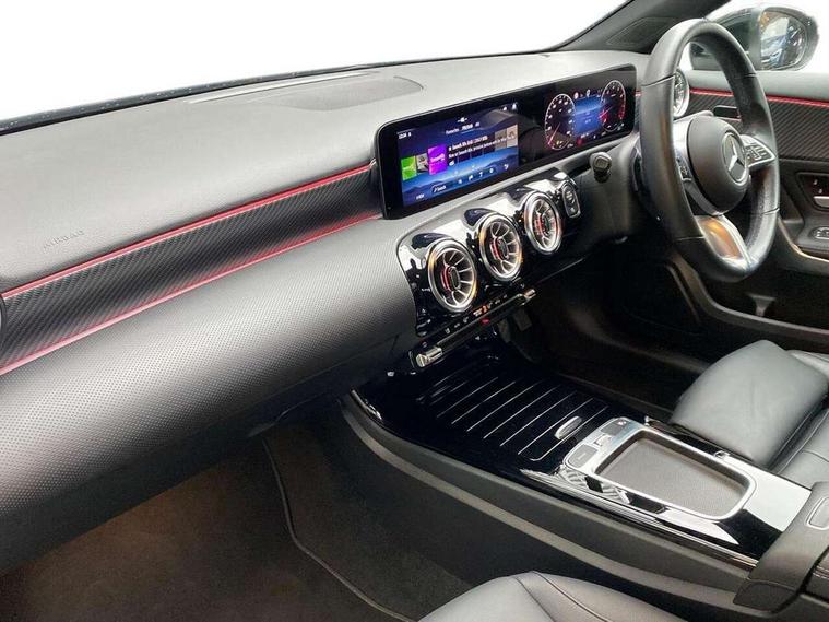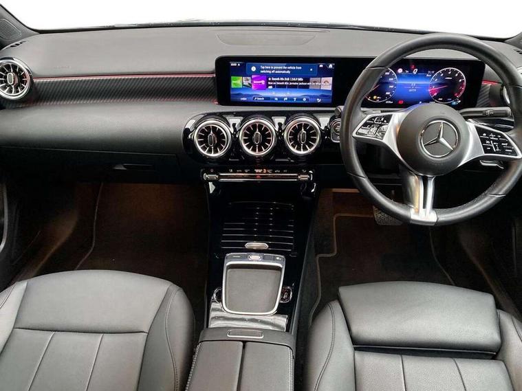10.25 inch touchscreen central media display, 10.25" Digital instrument cluster display screen, Attention assist, Brake pad wear indicator warning light, Car wash mode, Cruise control + speed limiter, Direct steering, Direction indicators with lane change function, Dual bluetooth interfaces, DYNAMIC SELECT with a choice of driving modes (ECO, Comfort, Sport and Individual), ECO start/stop function, Engine start/stop button, Fluid level warning indicator for fuel, oil, coolant and washer fluid, Hard-disk navigation, Hey Mercedes Voice activation, Lamp failure indicator, Lane keeping system, Mercedes me connect including emergency call system, accident recovery, breakdown and maintenance management, Mercedes me remote services, Outside temperature gauge, Owners manual in English, Pre-installation of private car share, Preinstallation for Mercedes Benz link, Remote boot closing, Service indicator (ASSYST), Smartphone integration with Apple CarPlay and Android auto, Speed limit assist, Speed sensitive power steering, Trip computer in multifunction display with current consumption indicator, Wireless charging, Lowered comfort suspension, DAB Digital radio, MBUX multimedia system, Mercedes Benz sound system (100 W) with 6 speakers, 4 Electric Front and Rear windows, Adaptive brake lights, Body colour bumpers, Body colour door handles with chrome inserts, Body colour side skirt, Body coloured door mirrors, Chrome beltline strips, Diamond radiator grille with pins in fine star pattern, Electric adjustable and heated door mirrors with integrated LED side indicators, Exhaust system with 2 visible tailpipe trim elements and rear apron, Headlamp assist automatic headlamp activation, Heat insulating dark tinted rear and rear side windows, Heated glass rear windscreen + timer control, LED High Performance headlamps including integral LED daytime running lamps and adaptive highbeam assist, LED tail lamp, Privacy glass, Radio aerial, Rain sensing windscreen wipers with two sensitivity settings, Rear boot, Rear fog lights, Rear side wing doors, Third brake light featuring LED technology, Window line trim strip in chrome, 3 seat bench in 2nd row, 3 Spoke leather multi function steering wheel, 4 way lumbar support, 40:20:40 split folding rear seats, Air conditioning - One zone THERMATIC automatic climate control with automatically controlled air distribution, Artico man-made leather upholstery, Automatic child seat recognition sensor, Black air vents with surround in silver chrome, Black roof lining, Front centre armrest with stowage, Front comfort seats with adjustable head restraints, Front door sills with Mercedes Benz lettering, Front seat backs luggage nets, Gearshift paddles on steering wheel, Heated front seats, Height/reach adjustable steering column, Interior lighting - 64 colour Ambient lighting, Interior mirror with reading lamps in black and frameless, Rear armrest with 2 cupholders, Rear head restraints, Seat occupancy sensor for front passenger seat, Single front passenger seat, Stowage compartment in centre console with retractable cover, Sunvisors with illuminated vanity mirrors, Twin front cupholders, Velour floor mats, Keyless go comfort pack - A Class, Light and sight pack - A Class, Mirror package - A Class, Parking pack - A Class, Seat comfort pack - A Class, USB pack plus - A Class, 3 rear 3 point seatbelts, ABS with Brake Assist, Active bonnet, Active brake assist includes forward collision warning system with autonomous braking, Adaptive brake assist with hold function and hill start assist, Black seatbelts, Bonnet with power domes, Childproof locks manually operated for rear doors and electrically operated for rear power windows, Crash responsive emergency lighting, Driver and passenger head and side airbags, Drivers knee airbag, Dual stage driver/passenger airbags, Electronic parking brake, ESP curve dynamic assist, ESP with ASR, Front and rear seatbelt reminder, ISOFIX and top tether child seat fixing points in two outer rear seats, Tyre pressure monitoring system, Warning triangle and first aid kit, Window airbags, Alarm system/interior protection/immobiliser, Guard 360 degree vehicle protection, Remote central locking and crash sensor with emergency opening function, Dark carbon fibre interior trim, 17" 5 spoke light alloy wheels, aerodynamically optimised, painted in black with high sheen finish, Summer tyres, Tirefit sealant kit,