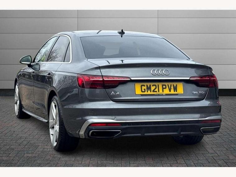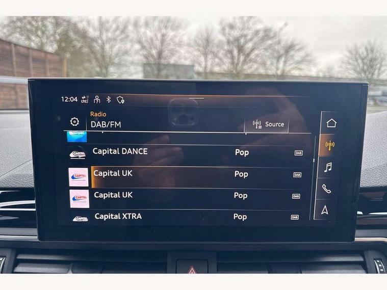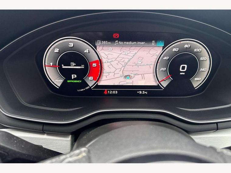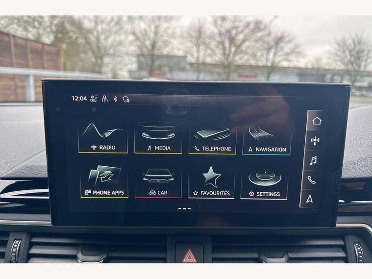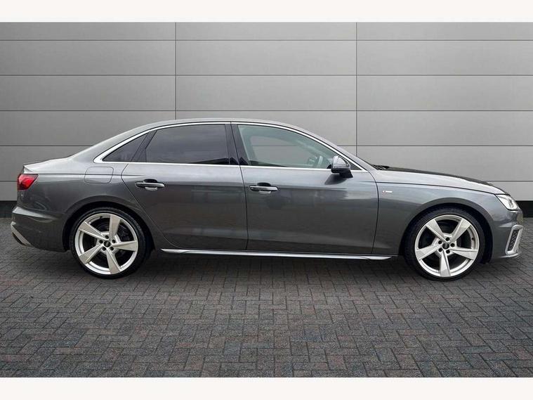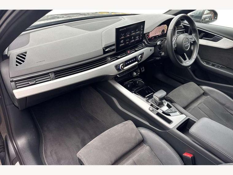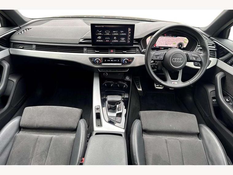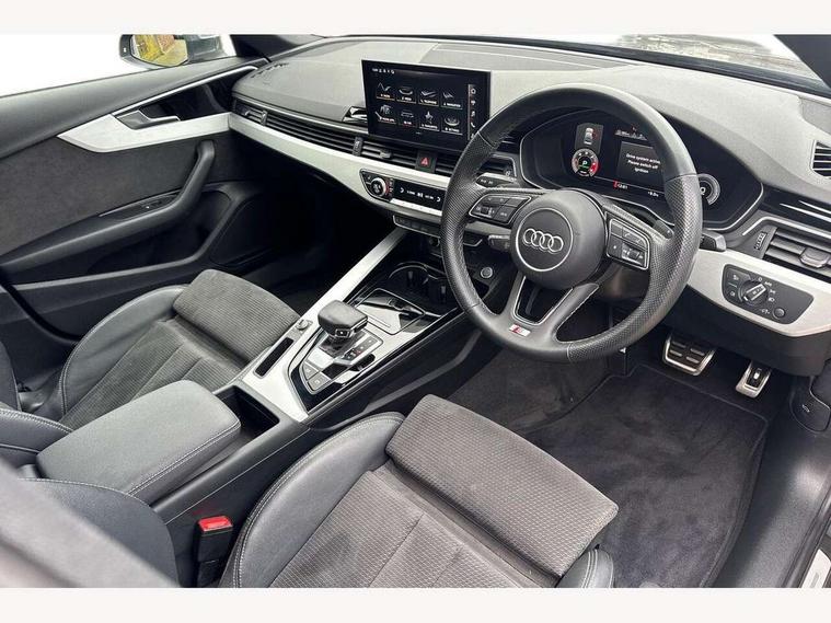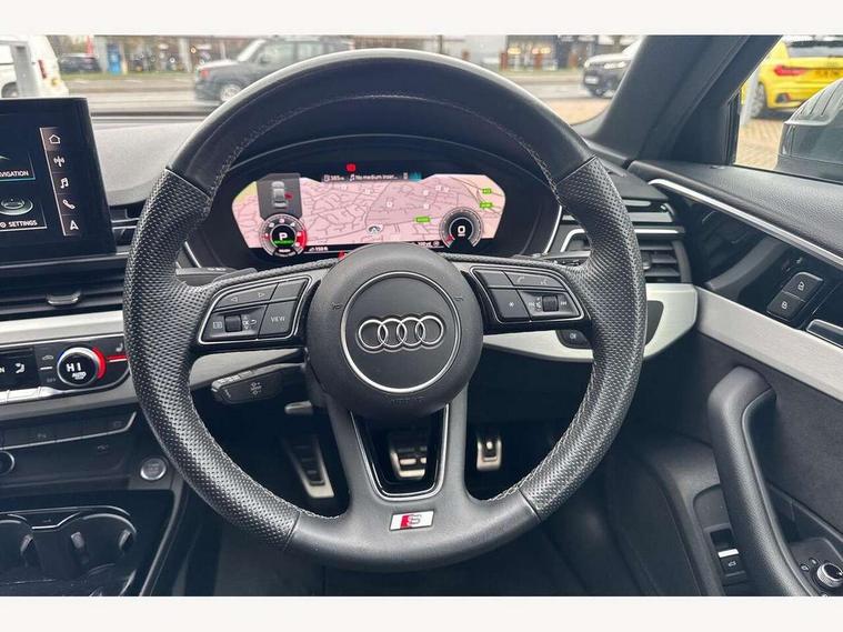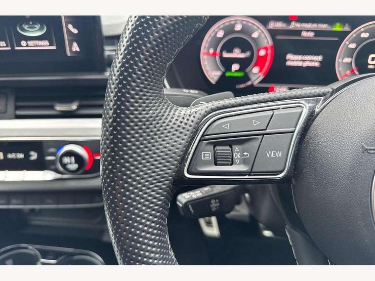 Audi connect safety and service (e-call), Audi connect with Amazon Alexa Integration, Audi drive select, Audi parking system plus with front and rear sensors, Audi smartphone interface, Audi virtual cockpit, Automatic start-stop system with coasting functionality and efficiency programme, Bluetooth interface, Electric boot lid release, Electromechanical power steering, Email, calendar and text messages displayed via MMI, MMI Navigation plus with MMI touch includes 10.1" high resolution colour MMI display, 3D map, Rear view camera, Voice control system, Sports suspension lowered by 23mm, 2 USB charging ports, 8 passive loudspeakers, DAB digital radio reception, Auto dimming rear view mirror, Body colour door handles, Body colour front spoiler lip, Body colour side sill trim, Body coloured door mirrors, Electrically folding auto dimming/adjustable/heated door mirrors with LED side indicators and kerb view function for passenger side, Grained matt black side air inlets with matt aluminium silver inlay, High beam assistant, Honeycomb structure radiator grille in grained matt black, LED headlights with LED rear lights + dynamic rear indicators + headlight adjustment and high beam, turning light + LED daytime running lights, Matt aluminium silver tailpipe trim, Privacy glass, Rain and light sensors, S Line badges on the front wings, S line front and rear bumpers with side skirts, S Line rear diffuser in matt titanium black with trim strip in matt aluminium silver, Windscreen with acoustic glazing, 4 way electric lumbar support for driver and front passenger, 40/20/40 split folding 3 rear seat bench in 3 parts with rear centre armrest, Black cloth headlining, Black perforated leather gearknob, Contrast stitching on seats, steering wheel and gear lever gaiter, Deluxe 3 zone electronic climate control, Door sill trims with aluminium inlay, Front and rear head restraints, Front centre armrest, Heated front seats, Illuminated door sill trims with S logo, ISOFIX child seat mounting and top tether, Manual seat adjustment, Stainless steel pedals and foot rest, Tool kit, High gloss package - A4, LED Interior light pack - A4/S4, 3 rear seatbelts, 6 airbags - Driver, front passenger, curtain and side windows, Electronic Stabilisation Control (ESC) including ABS, ASR and EDL, Hill hold assist, Multi collision brake assist, Pop-up bonnet for pedestrian protection, Pre sense city, Seatbelt monitoring, Warning triangle and first aid kit, Anti theft alarm, Anti theft wheel bolts, Keyless Go, Matt brushed aluminium inlays, Tyre repair kit,