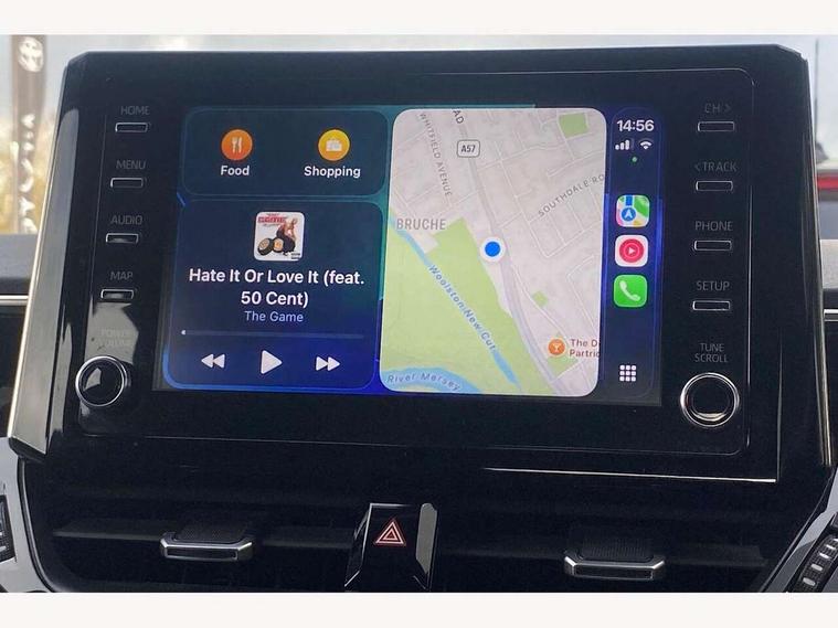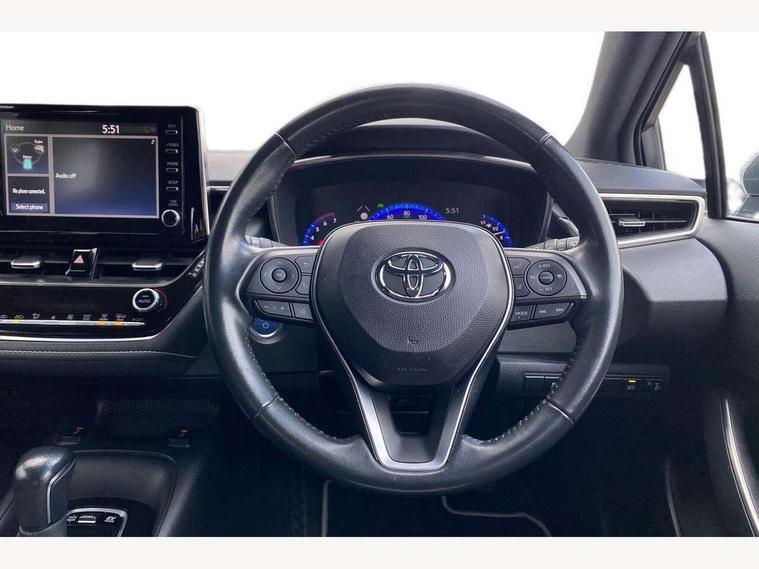 7" Multi information display screen, Bluetooth telephone connectivity, Connected car functionality upgrade, tracker, remote status and e-care, Dynamic radar cruise control (with RSA) including switch on steering wheel, E-call, Electrically assisted power steering, EV drive indicator, Lane Departure Alert (LDA) switch on steering wheel, Memory on adjustable speed limiter, Push button start, Reversing camera, Smartphone integration with Apple CarPlay and Android auto, Gasoline particulate filter, Vehicle Stability Control (VSC), 6 speakers, 8" Touchscreen with MM19 Multimedia system and voice recognition, AM/FM radio, DAB Digital radio, USB and Aux in connectors + 12V front outlet, Anti-jam protection on power windows, Auto up and down function on all power windows, Automatic headlights with high beam assist, Black metallic surround on lower front grille, Black toyota logo in front, Black window frames, Body colour rear spoiler, Body coloured bumpers, Body coloured door mirrors, Body coloured outside door handles, Follow me home headlights, LED daytime running lights, LED front fog lights, LED Headlights, LED High mounted stop light, Manual day/night rear view mirror, Power adjustable heated door mirrors, Power front windows, Power rear windows, Rain sensor, Rear side wing doors, Rear window defogger, Rear window wiper, Shark fin antenna, Time adjustment on intermittent wiper, Turning signal integrated indicators in door mirrors, Unique lower skirt, Unique side rocker with black insert, UV-filter on driver and passenger windows, 3 rear headrests, 3 seat bench in 2nd row, 3 spoke leather steering wheel + gear knob, 60/40 split folding rear seat, Adjustable speed limiter switch on steering wheel, Audio, multimedia and telephone switches on steering wheel, Boot light, Centre room light, Clean air filter, Driver and front passenger personal light, Driver and passenger assist grip, Driver and passenger sun visor with mirror and light, Dual zone automatic air conditioning with ECO mode switch, Fabric armrests, Front and rear cup and bottle holders, Front door pockets, Front head restraints, Front passenger seat, Heated driver and front passenger seats, Illuminated entry system in room lamp, ISOFIX seat fixing (2 fixings on rear outer seats), Leather gear shift with satin chrome on gear shift console, Manual height adjustable for driver and front passenger seat, Parcel shelf, Passenger seat back pocket, Pollen filter, Power adjustable lumbar support on driver seat, Power window switches with satin chrome inserts, Quilted fabric upholstery with grey stitches seats, Rear armrest with 2 cupholders, Rear passenger coat hooks (2), Satin chrome inside door handles, Shopping bag hooks in luggage compartment, Sliding armrest on centre console box, Slow opening glovebox with lights, Tilt/telescopic steering column, Voice recognition switch on steering wheel, Whiplash Injury Lessening (WIL) feature (active headrest) for seats, Toyota safety sense 2 pack - Corolla, 3x3 point rear seatbelts, Adjustable driver and front passenger seat belt extender to top anchor point, Anti lock braking system + Electronic brake force distribution, Brake assist function, Child locks on rear doors, Downhill Assist Control (DAC), Electronic parking brake, Emergency brake light signal (EBS), Front passenger airbag on/off switch, Front seatbelt reminder, HAC - Hill start assist control, Rear seat belt reminder, Seatbelt pretensioners and force limiters, Supplemental restraint system (SRS) 7 airbags - dual driver, dual side curtain, side impact and driver knee airbags, Traction control, Tyre pressure warning system, Acoustic vehicle alert system (AVAS), Alarm with motion sensor and immobilizer, Remote central locking + deadlocks, Satin chrome dash trim, Soft touch texture on upper dashboard, Unique wheel finish with red wheel cap,