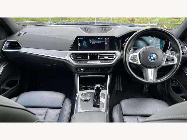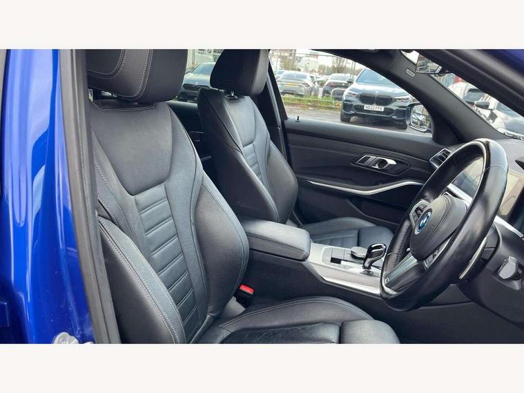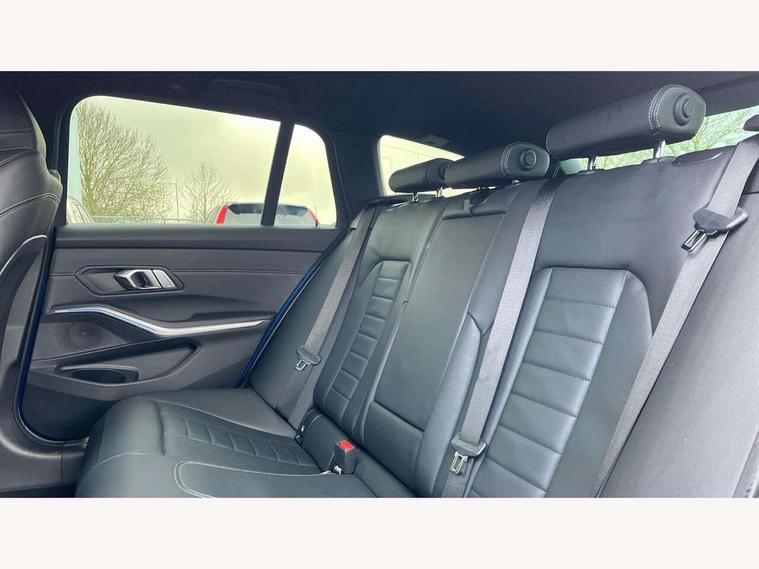 Active guard plus, Attentiveness assist, Auto start-stop, Bluetooth hands free facility with USB audio interface with audio streaming, BMW ConnectedDrive oline services with BMW apps, BMW Live Cockpit Professional Nav with 12.3" instrument display + 10.25" display, Intelligent Voice Assist, BMW OS 7, HDD, 2USB, 4G LTE connect, BMW service history, BMW Teleservices, Brake pad wear indicator in front and rear, Check Control warning system for monitoring of lights and door/luggage compartment open warning, Condition based service, Cruise control with brake function + speed limiter, Electric power steering with Servotronic steering optimised at all speed ranges, Gearshift time display in manual mode, iDrive controller on centre console, Instrument cluster with speedometer with mph readout, tachometer, fuel gauge and oil temperature gauge, Integrated owners handbook, Oil sensor for level and grade, warning by check control system, On board computer - average speed+fuel consumption, service interval, clock/date, odometer/trip meter, outside temperature display and ice warning, Optimum shift indicator, Personal Profile - automatic lock when driving away selectable, Balanced 50/50 weight distribution, Battery cut-out switch, Charging cable - Mode 2, Drive performance control - ECO PRO, comfort and sport modes, EU6 emissions management, Stroke dependent dampers, DAB tuner, Electronic service booklet, Acoustic glazing, Active airstream chrome frame kidney grille with 8 high gloss black vertical slats, Automatic headlight activation/adjustment, Automatic headlight beam throw control with load dependent regulating reaction, dynamic compensation of braking dive and acceleration squat, Black roof mouldings, Body colour door handles, Body colour fuel filler flap, Body colour mirror caps with bottom segment in matt black, Dynamic brake lights, Electric windows - front and rear, with open/close fingertip control, anti-trap facility and comfort closing, Exhaust tailpipe - split left and right, Exterior mirrors - electrically folding with anti-dazzle, Fading support, Front and rear bumper system with replaceable deformation elements, Front black door sill finishers with BMW designation, Green tinted heat protection glazing, High gloss black exterior B pillar, Interior rear view electrochromatic mirror with automatic anti dazzle function, LED daytime running lights, LED front fog lights, LED third brake light, Lightweight engineering, M designation on front side panels, left and right, Model designation on right side of tailgate, Rain sensor, Rear side wing doors, Rear wiper, Shark fin antenna, Two part LED tailights in L-shape with components in smoked glass, brake light, LED turn indicator and rear fog light, Visible VIN plate, Welcome lights in interior and door handle area, Windscreen wipers with integrated washing jets, 12V power socket in front storage compartment, 2 front cupholder in centre console with clamping elements and matt black inlay, 3 seat bench in 2nd row, 3 zone automatic air conditioning, 4 pieces lashing eyelets in luggage compartment, 40:20:40 split folding rear seat with loading system, Ambient lighting with welcome carpet light, Anthracite headlining, Armrest integrated in front and rear door trim + front centre console armrest, Backrest width adjustment, Centred top Luggage compartment lights, Four grab handles integrated in roof lining, Front and rear door exit lighting (left / right), Front and rear door pockets, Front and rear reading lights, Front and rear velour floor mats, Front head restraints, Front sport seats, Heated front seats, Height adjustable mechanically and infinitely variable steering column, Illuminated armrest storage compartment, Illuminated glove compartment with separate small compartment, Interior lighting - front centre over interior mirror with soft light, rear centre and front and rear footwell lighting, Make-up mirror lights, Rear centre armrest with 2 cupholders, Rear centre console with storage compartment and ventilation grille, Single front passenger seat, Sunvisors with vanity mirrors and ticket pocket, Three spoke multifunction M sport leather steering wheel, Toolkit located in luggage compartment, Connected pack professional - 3 Series Saloon/Touring, M sport exterior styling pack - 3 Series Saloon/Touring, 2 tone horn, 3 rear seats with non folding headrests, Airbags activation controlled with intensity and scope, BMW emergency call, Brake energy regeneration, Braking pre-tensioning, Child proof locking system in rear door, Child seat ISOFIX attachment rear outer seats, Coasting in idle in ECO PRO mode, Crash sensor activating of airbags, Unlocking doors, hazard warning lights, fuel cut off, interior lighting+activation of safety battery terminal clamp, Deactivation of fuel pump in the event of a crash, Driver and front passenger side airbags, integrated in the door side seat backrest bolsters for all seat variants, Driver/Front Passenger airbags, Dry braking, Dynamic brake control, Dynamic stability control + (DSC+) - Anti-lock Braking System (ABS) with brake assist and cornering brake control + Automatic Stability Control (ASC), Dynamic Traction Control - DTC, Electromechanical parking brake including automatic hold function and automatic release of the parking brake when pulling away, Electronic differential lock control (EDLC), Front passenger manual airbag deactivation, Head airbags for all 4 outer seats, Hill start assist, Seat belt security check for driver and front passenger, Side impact protection, Three 3 point seat belts on all seats including front belt stopper, pyrotechnic belt tensioners and belt force limiters, Tyre pressure monitoring with three level warning strategy, Ventilated front and rear disc brakes, Warning triangle and first aid kit, Alarm system (Thatcham 1) with remote control and electronic engine immobiliser, Central locking switch for all doors, fuel filler cap and luggage compartment, Remote control with integrated