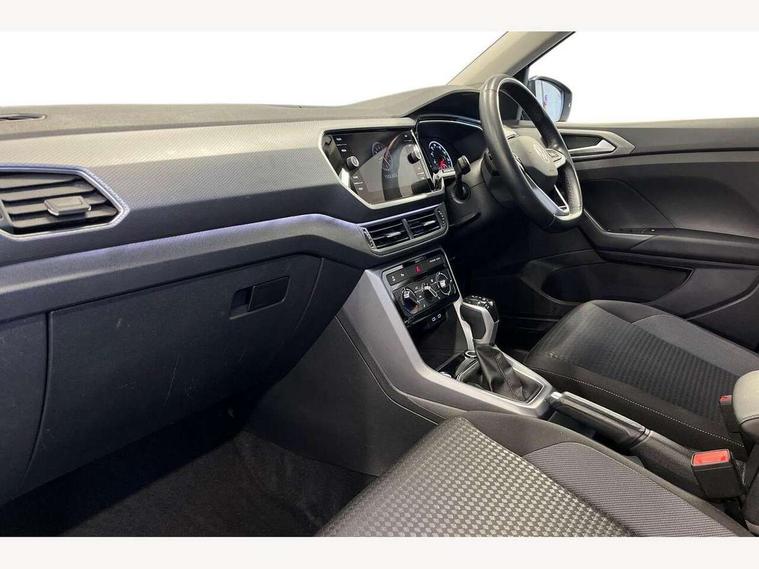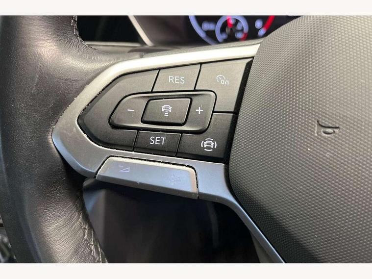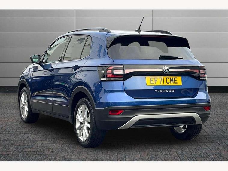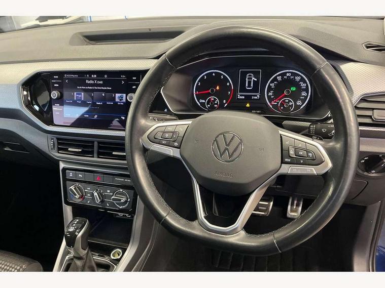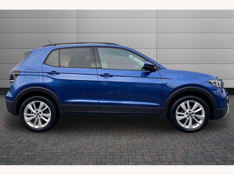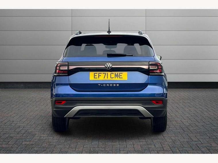 'Lights On' Reminder warning buzzer, Adaptive cruise control including front assist, forward collision warning, autonomous emergency braking, speed limiter, Blind spot monitoring, Bluetooth telephone and audio connection for compatible devices, Car information display, Driver alert system, eCall emergency call system, Lane assist, Low washer fluid warning light, Multifunction computer with visual gear change recommendation for fuel consumption, Operating permit alteration, Power assisted speed sensitive steering, Speedo, rev counter, electronic odometer, trip, service interval display, exterior temperature and fuel gauge, Stop/start system, Warning sound and light for doors and tailgate open, Warning sound and light for front seatbelts unfastened, We Connect Go Dongle, Wireless Car net app connect with Apple CarPlay, combined functionality of Apple CarPlay/Android Auto and MirrorLink, Battery regeneration during braking, Misfuel prevention device, 2x USB connection with USB charging sockets and in rear centre console, DAB Digital radio receiver, Diversity antenna for FM reception, Multi device interface (MDI) with USB connection, Music playback - MP3, WMA and AAC files, Premium USB cable for Apple or Android smartphone compatibility, Simultaneous pairing of 2 compatible mobile devices, Title and cover art display, 3D active badge on B-pillar, Active door sills, Active sill panel trims, Automatic hazard lights activation under emergency braking, Black roof rails, Body colour door handles, Body coloured bumpers, Dusk sensor + automatic driving lights, Electrically foldable, adjustable and heated door mirrors with reverse activated kerb view adjustment on passenger's side, Front and rear electric windows, Front fog lights with static cornering function, Galvanised body, Heated rear window, High level 3rd brake light, Lower door sills and door pillars in black, Radiator grille with high gloss surface and chrome strip, Rear fog light on one side, reversing light on both sides, Rear lights incorporating LED technology, Rear side wing doors, Rear tinted glass 65% approx light absorbing from B pillar backwards, Rear window aerial, Rear windscreen washer and wiper with interval delay, Reflectors in all doors, Tailgate with integrated roof spoiler, Windscreen wipers/ intermittent wipe + 4 position delay, 12V Accessory socket in centre console, 3 rear head restraints and 3 rear three point seat belts with ECE label, 3 seat bench in 2nd row, 60/40 split folding rear seat backrest, Ambient lighting and sourround lighting, Brushed stainless steel pedals, Drawer under drivers seat, Driver and front passenger sunvisor with vanity mirror, Driver's sunvisor with ticket holder, Dust and pollen filter, Front + rear carpet mats, Front and rear reading lights X 2, Front centre armrest with storage compartment, Front seat back storage pockets, Front seats with adj lumbar support, Glovebox, Heating and fresh air system with 4 stage blower, Height/reach adjust steering wheel, Instrument lighting white adjustable panel illumination, Interior light with delay, Isofix child seat preparation for 2 rear child seats, Luggage compartment cover, Luggage compartment lighting, Moveable and foldable Rear bench seat, Single front passenger seat, Storage compartment in drivers and front passengers door, Three spoke multi-function leather trimmed steering wheel and gearknob, Trapeze cloth upholstery, Variable boot floor, Winter pack - T-cross, Anti-lock Braking System (ABS) with Hydraulic Brake Assist (HBA), Automatic post collision braking system, Driver and front passenger safety-optimised head restraints, Drivers and Front Passengers airbags with front passengers airbag deactivation switch, ESC with EDL, ASR, EDTC and trailer stabilisation function, Extended and proactive pedestrian protection, Front and rear curtain airbags, Front seat side impact airbags, Height adjustable 3 point automatic front seatbelts with pretensioners, Hill start assist, Pre crash preventive occupant protection, Rear door child safety locks, Rigid safety cell with front and rear crumple zones, Single torn horn, Tyre pressure loss indicator, Volkswagen roadside assistance, Alarm with interior protection and deactivation via infotainment system, Child security locks in rear doors, Electronic engine immobiliser, Remote tailgate unlocking using key fob, Decorative strips in doors in matt silver/ center console, 17" Clayton alloy wheels + anti theft wheel bolts, Breakdown kit,