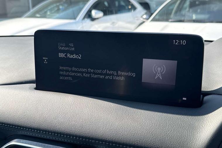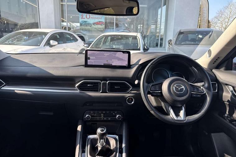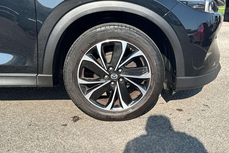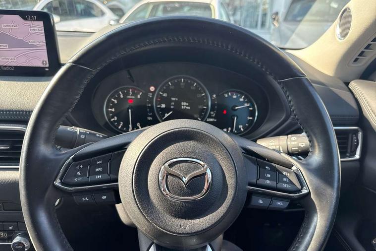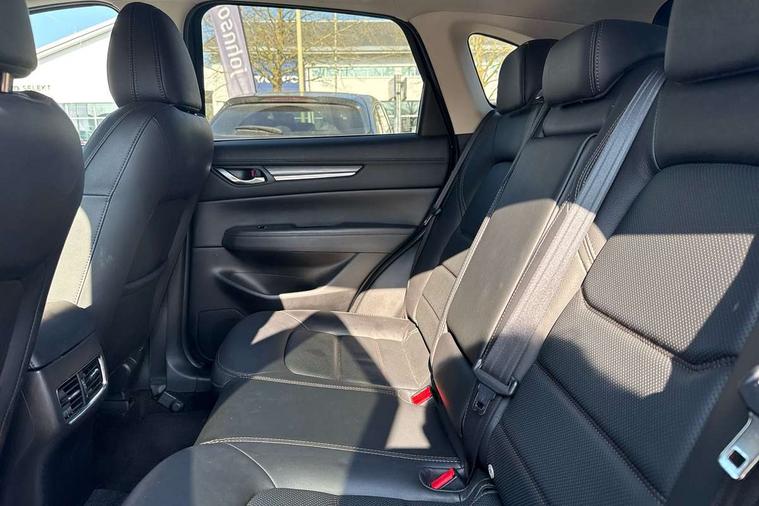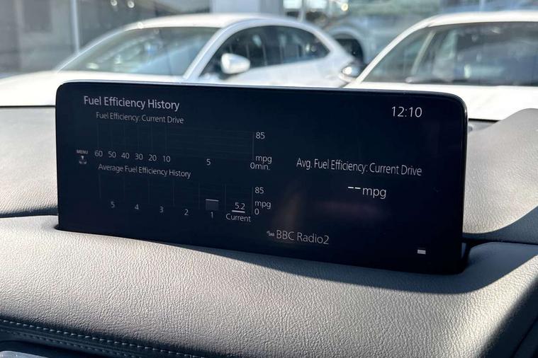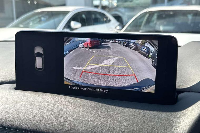 10.25" display with Mazda Connect infotainment, 7" colour TFT display, Apple car play/Android Auto, Blind spot monitoring with rear cross traffic alert, Bluetooth connectivity with voice control, Collision prevention assist, Connected services, Cruising Traffic Support, Electric power steering, Emergency stop signalling system, Engine start/stop button, Forward collision warning, Front and rear parking sensors, Integrated navigation system, Intelligent speed assist, Lane departure warning system, Lane keep assist, Qi wireless phone charging, Radar cruise control, Reversing camera, Service indicator, Traffic sign recognition (TSR), Trip computer, Windscreen projected colour active driving display (HUD) with memory, Cylinder Deactivation, i-stop, 2 USB sockets in rear, 2x USB sockets in front, AM/FM radio, Bluetooth audio streaming, Bose premium sound system with 10 speakers, DAB Digital radio, Multimedia Commander including separate volume dial, Steering wheel mounted audio controls, Adaptive front lighting system, Auto dimming rear view mirror, Automatic headlights, Black inlay dashboard panel, Body colour door mirrors, Body colour roof spoiler, Body coloured front and rear black lower bumper mouldings, Bright finish signature wing, Coming/leaving home lighting function, Door mirror integrated indicators, Dual chrome tailpipes, Dusk sensitive headlamps, Electric front/rear windows with one touch auto up/down, Front grille in gloss black finish, Gloss black B and C pillars garnish, High beam assist, Intermittent rear wash/wipe, LED auto levelling, LED daytime running lights, LED front fog lights, LED Headlights, LED third brake light, Power folding and heated door mirrors, Power tilt/slide sunroof, Privacy glass (rear side windows only), Rain sensing front wipers, Rear side wing doors, Satin black side mouldings, Scuff plates, Shark fin antenna, Signature LED rear combination lights, Vinyl with wood grain metal inlay door trim panel, Windscreen wiper de-icer, 12v electrical power outlet, 3 seat bench in 2nd row, 3 stage heated front seats, 40:20:40 Karakuri fold-flat seat system, 6 way electric adjustable passenger seat, 8 way electric driver seat with lumbar support + memory, Cargo room flat floor board with waterproof undertray, Driver seat power slide, recline and height adjustment, Driver, Front passenger and two rear grab handles with coat hooks, Driver/passenger front seatback pockets, Driver/passenger sunvisors + illuminated vanity mirrors (drivers with ticket holder), Dual zone climate control, Folding centre armrest with 2 cup holders, Front and rear door pockets, Front centre storage with two cupholders, Front passenger seat power slide, recline and height adjustment, Gear shift indicator, Heated steering wheel, Humidity sensor, Illuminated glovebox, Interior dome light with integral spotlight, ISOFIX child seat anchorage points attached on outer rear seats, Karakuri tonneau cover, Leather upholstery, Leather wrapped steering wheel and gear knob, Light roof lining, Luggage compartment LED lighting, Luggage compartment power outlet, Rear air vents, Rear headrests, Rear seat recline, Roof mounted sunglasses holder, Single front passenger seat, Three height adjustable head restraints, Tilt/height adjustable steering wheel, White interior LED illumination lighting, 3 point front seatbelts with pre-tensioners, 3 rear 3 point seatbelts, ABS, Advanced Smart City Brake Support - SCBS, Child locks on rear doors, Driver and front passenger side airbags, DSTC-Dynamic Stability and Traction Control, Dual front airbags, Electronic brake force distribution, Electronic parking brake with auto hold, ESP, Front and rear curtain airbags, Front passenger airbag deactivation, G-Vectoring control, Hill hold assist, Seatbelt reminder front and rear, Single stage passenger airbags, Smart brake support with forward obstruction warning, Tyre pressure monitoring system, Automatic door locking when moving off, Deadlock, Immobiliser, Power door locks, Remote central locking, Smart keyless entry, Thatcham Cat.1 alarm, 19" diamond cut black alloy wheels, Tyre repair kit,