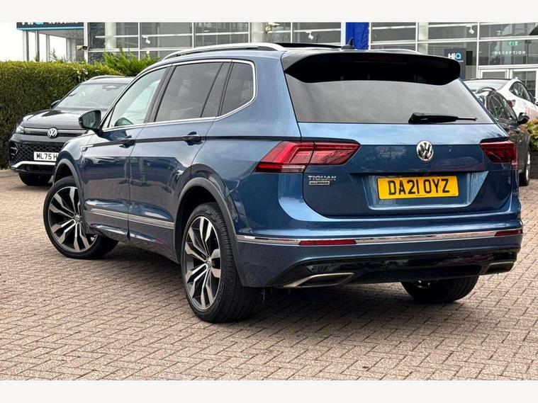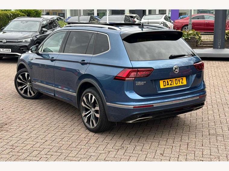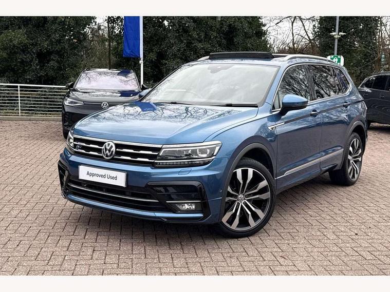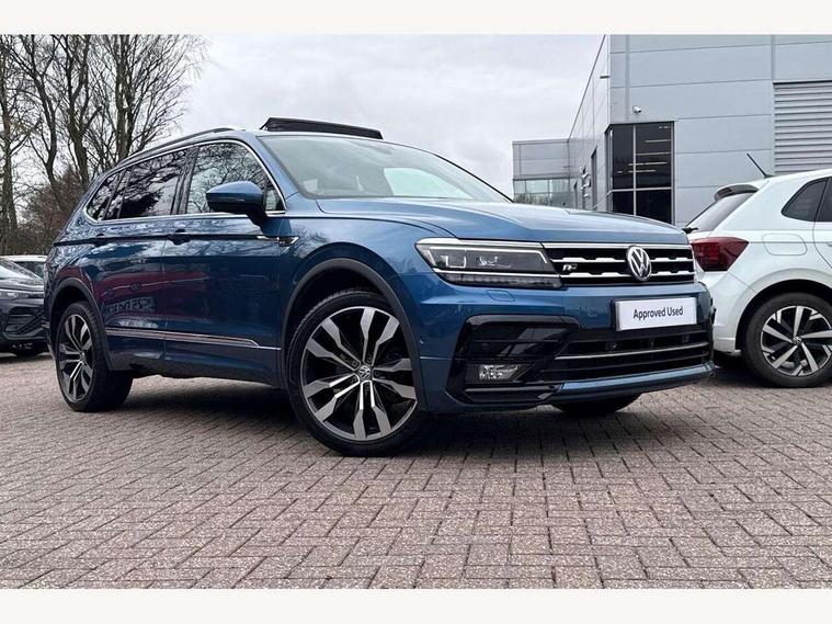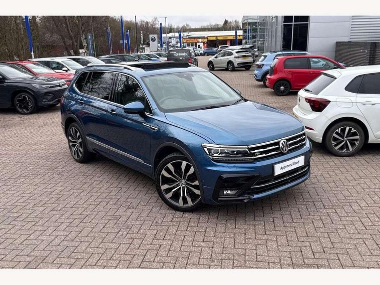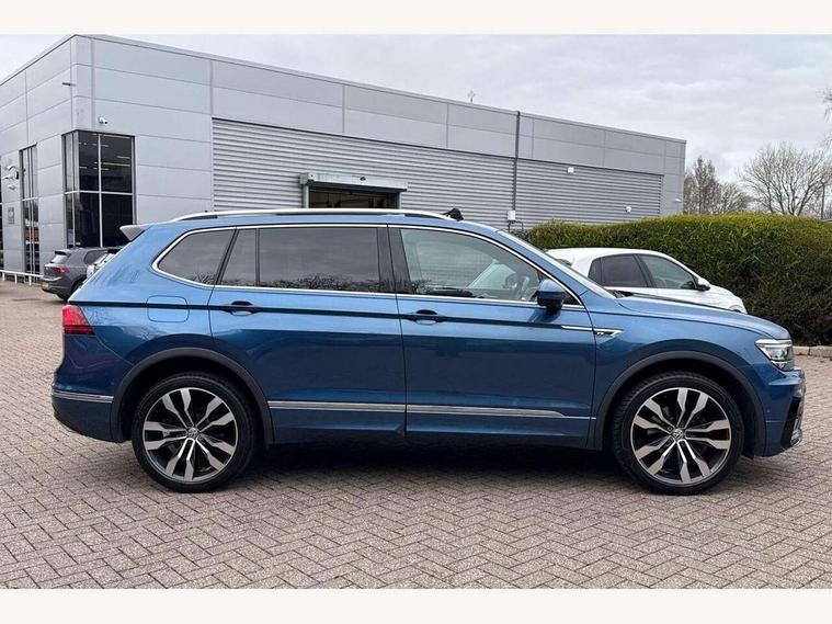 App-Connect, 2D/3D map view, Active information display, Adaptive cruise control, Area view with park assist steering and front and rear parking sensors, Bluetooth phone integration system, Car information display, Driver alert system with fatigue detection, Driver profile selection, Front assist, radar sensor controlled distance monitor, city emergency braking + predictive pedestrian protection, Instrument cluster, Keyless entry/keyless start and full electric tailgate operation, Lane assist, Lights on warning, Low washer fluid warning light, Outside temperature display, Progressive power assisted steering, Service interval indicator, Speed limiter, Start/Stop function, Warning sound and light for doors and tailgate open, Battery regeneration during braking, Aux-in socket, DAB Digital radio, Dynamic navigation based on TMC+, Music playback - MP3, WMA and AAC files, Premium USB cable in choice of either Apple or Android smartphone compatibility, SD card slot, Simultaneous pairing of 2 compatible mobile devices, SMS functionality - read, compose and send SMS messages using touch-screen display, Three route options - Fast, Short, Eco, Title and cover art display, USB connection, USB charging socket and volkswagen media control, 3D effect cherry red LED rear tail lights, Aluminium decorative inserts in dash and door panels, Auto dimming interior mirror, Automatic activation of hazard warning lights, Body colour door handles, Body colour door mirrors, Body colour roof spoiler, Chrome side window surrounds, Chrome trimmed radiator grille, Coming/leaving home lighting function, Dusk sensor + auto driving lights, Electric panoramic sunroof with sunblind, Electrically heated and foldable door mirrors, door mirror puddle lights and reverse activated kerb view adjustment on passenger's door mirror, Front and rear electric windows, Heated rear window, High level 3rd brake light, LED headlights with dynamic light assist daytime running lights and cornering front fog lights, LED rear number plate lights, Left and right chrome effect trapezoid dummy exhaust tailpipe surrounds, Piano black rear diffuser, Rain sensor windscreen wipers, Rear tinted glass from B-pillar backwards approx 65% tinted, Rear windscreen washer and wiper with interval delay, Silver anodised roof rails, Solid paint, Unique R Line badging, Windscreen wipers/ intermittent wipe + 4 position delay, 12V socket in centre console storage area, 12V socket in luggage compartment, 12V socket on rear of front centre armrest, 2 cup holders in front, 2 head restraints in 3rd row, 2 individual 3rd row seats, 3 head restraints in 2nd row, 3 single seats foldable in 2nd row, 3 zone climate control, 4 load lashing points, 40:20:40 split folding rear seat, Bag hook in luggage compartment, Black headlining, Foldable front passenger seat backrest, Front + rear carpet mats, Front centre armrest with storage compartment, longitudinal and height adjustable and two rear air vents, Front seat back storage pockets, Front seatback folding tables, Height/reach adjust steering wheel, Illuminated driver/passenger vanity mirrors, Illuminated scuff plates, Instrument lighting white adjustable panel illumination, Interior light with delay, Isofix Preparation 2 Rear child seats, Leather gear knob, Leather trimmed three spoke multifunction steering wheel with aluminium inserts and paddle shift, Load through provision with 2 cupholders when folded, Lockable cooled glovebox, Luggage compartment lighting, Luggage compartment side storage, Passenger seat height adjuster, Rear cupholders, Removable luggage cover, Sliding/reclining rear seats, Split folding rear bench seat, Stainless steel pedals, Storage compartment in drivers and front passengers door, Storage compartment in rear doors, Storage tray on dashboard, Sunglasses storage, Variable boot floor, height adjustable and removable, Ambient lighting pack - Tiguan Allspace, R Line styling pack - Tiguan Allspace, 3 point seatbelts on all seats, ABS+EBD+Brake assist, Active bonnet, Active pedestrian safety system, Curtain airbags, Driver/Front Passenger airbags, Driver/Passenger whiplash optimised head restraints, Drivers knee airbag, Electronic parking brake with auto hold, ESC with EDL, ASR, EDTC and trailer stabilisation function, First aid kit, Front seat side impact airbags, Front side airbags, Front ventilated disc brakes and rear disc brakes, Head airbag system, Height adjustable front 3 point seatbelts + pretensioners, Hill hold control, Passenger airbag deactivate switch, Passenger knee airbag, Pre crash system, Rear side airbags, Rigid safety cell with front and rear crumple zones, Seatbelt warning lamp and buzzer, Two tone horn, Volkswagen roadside assistance, Warning sound and light for front seat belts if unfastened, Warning triangle, Alarm with interior protection, Electronic engine immobiliser, Remote central locking with 2 remote folding keys, Chrome door trim inserts, Piano black interior trim, 20" Suzuka alloy wheels with mobility self sealing tyres + anti theft wheel bolts,