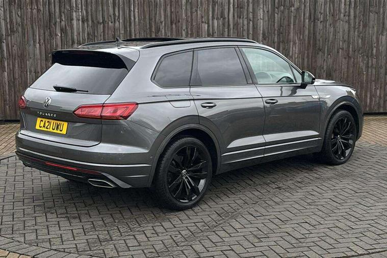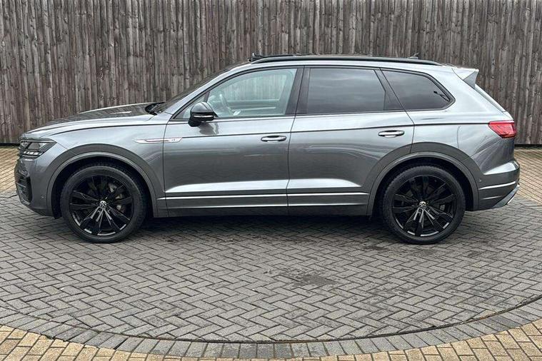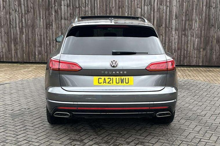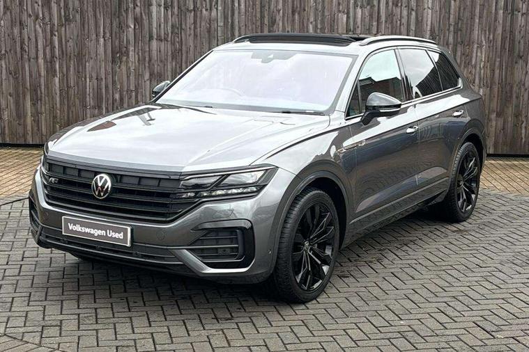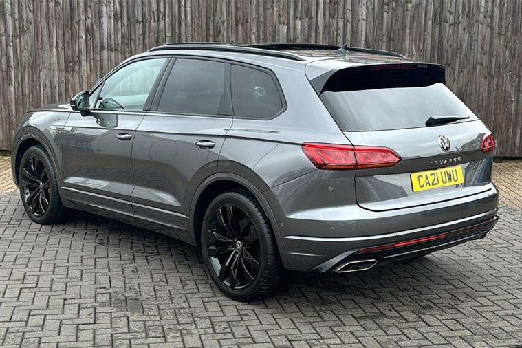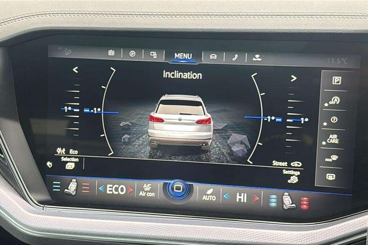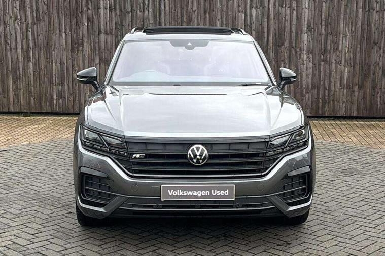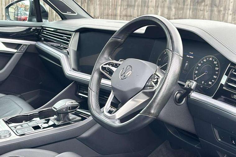 2D/3D map view, ACC - Adaptive cruise control with front assist, forward collision warning, distance monitoring, city emergency brake and speed limiter, Apple car play/Android Auto, Audible and visual fatigue detection system, Bluetooth hands free telephone connection, Car information display, Drive select with Damper control, Driver alert system, Dusk sensor, Dynamic road sign display camera controlled system with visual warning for traffic and road signs, eCall emergency system, Fully electric tailgate + keyless entry and start, Instrument cluster, MirrorLink, Multifunction camera with lane assist, Multifunction computer premium with 7" colour display, One touch indicators with repeat function, Service interval indicator, Speed sensitive power steering, Start/stop system with regenerative braking, Tailgate power latch, Think blue trainer driver tips and journey analysis, Traffic sign recognition, Voice control system, Wireless Smartphone charger, Torsen limited slip differential, DAB Digital radio, Dynamic navigation based on TMC+, Gesture control for infotainment system, Multi device interface (MDI) with illuminated USB-C connection, Music playback - MP3, WMA and AAC files, SD card slot, Simultaneous pairing of 2 compatible mobile devices, SMS functionality - read, compose and send SMS messages using touch-screen display, Title and cover art display, Volkswagen media control, Adaptive low beam for urban and motorway use, Auto dimming rear view mirror, Automatic coming/leaving home lighting function, Automatic headlights, Black anodised roof rails, Black door mirrors, Black rear diffuser, Black side window surrounds, Black upper and lower grille louvres extending into headlights and radiator grille, Body colour door handles, Body coloured wheel arches, C signature gloss black front air intake, Chromed tailpipe on the left and right integrated in the bumper with trapezoid design, Dynamic headlight range control, Electric front tilt/slide panoramic sunroof and fixed rear sunroof, Electrically power adjustable, heated, folding, auto dimming, front passenger exterior door mirror lowering function, Front and rear electric windows, Galvanised body, Gloss black finish B pillar, Gloss black rear diffuser, Headlight washers, Heat insulating glass in side and rear windows, Heated windscreen washer jets, IQ.Light-LED matrix headlight, daytime running light with dynamic cornering light and indicator, LED rear fog light, LED rear number plate lights, Plastic scuff plates in door apertures, Poor weather light, Puddle lights, Rain sensor, Rear wiper, 12V socket in front and rear centre console and boot, 2 Coat hooks on B pillar, 3 rear head restraints, 3 spoke sport heated leather multi-function sports steering wheel with gear shift paddles - generation 2, 4 way adjustable front head restraints, 4 way electric lumbar support for driver and front passenger, 4 zone climate control, 40:20:40 split folding slide/recline rear seat, B pillar vents, Black lower edge of door extending sills, Branded points of interest, Double sun visor for drivier and passenger with LED illuminated vanity mirrors, Electric luggage compartment cover, Folding rear centre armrest with 2 cupholders, Front + rear carpet mats, Front centre armrest with storage box, Gear shift indicator, Height/reach adjust steering wheel, Illuminated air conditioned glovebox, Isofix preparation for 2 rear child seats, Jack and tool kit, Leather trimmed gear knob with gloss black inlay/aluminum trim, Leatherette door trim, LED luggage compartment lighting, Load through provision, Luggage compartment with load lashing rings, Plastic loading edge protection, Rear seat remote release levers, Soul black headlining, Stainless steel pedals, Innovision cockpit pack - Touareg, R line styling pack - Touareg, 3 point front seatbelts with pre-tensioners, ABS, Active bonnet, Automatic post collision braking system, Curtain airbags, Driver/Front Passenger airbags, EBD + Brake Assist, EDL, Electronic parking brake with auto hold, ESC with ASR, Front seat side impact airbags, Hill descent control, Hill start assist, Passenger airbag deactivate switch, Seatbelt warning lamp and buzzer, Three 3 point rear seatbelts, Two tone horn, Volkswagen roadside assistance, Warning triangle and first aid kit, Alarm with interior monitoring in cab, backup horn and towing protection, Child security locks for front and rear doors, Electronic engine immobiliser, Remote central locking, Black decorative trims on the side windows, High gloss black centre console,