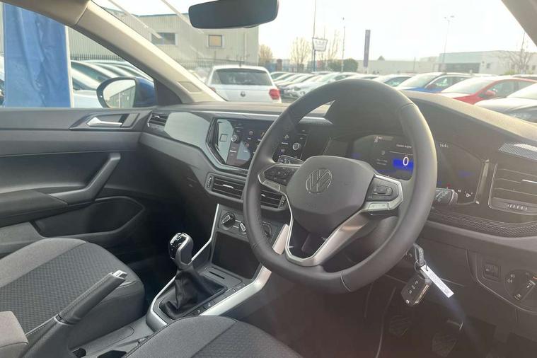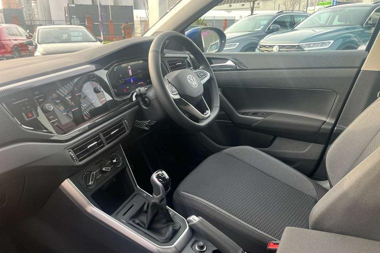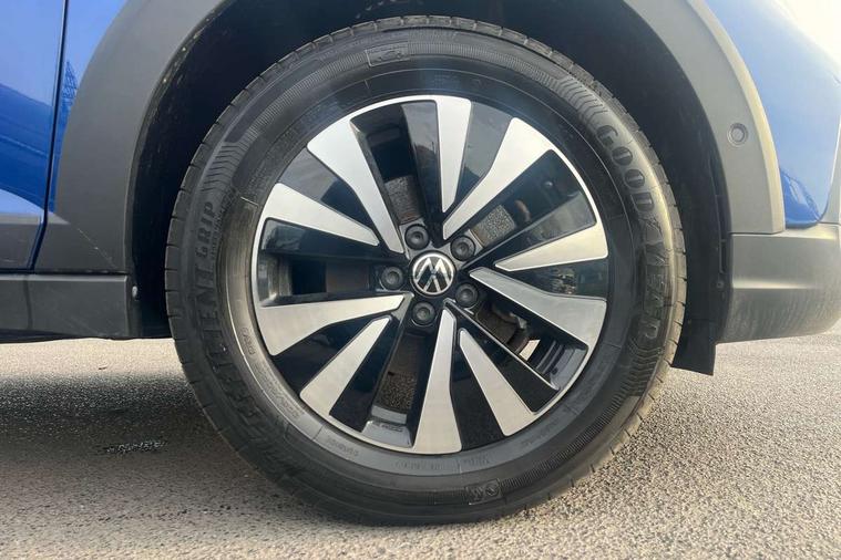 8" Digital cockpit basic display, Advanced driver attention and drowsiness monitor, Dynamic road sign display, e-Call (emergency call), Power Steering, Predictive adaptive cruise control, Travel assist including emergency assist, Washer fluid level indicator, Wireless Charging including Bluetooth, Start-stop system with battery regeneration (recuperation - energy recovery during braking), Digital radio reception (DAB+), WeConnect plus, Ambient lighting with logo projection, Aspherical driver's exterior mirror, Auto headlights, Body coloured bumpers, Body coloured exterior mirror housings and door handles, Electric windows, External USB type C socket and charging sockets, Heat insulating glass windscreen, LED rear combination lamp, LED third brake light, Left convex exterior mirror, Power folding adjustable/heated exterior mirrors and front passenger exterior mirror lowering function, Rear fog light on one side, reversing light on both sides, Rear side wing doors, Rear wash/wipe with intermittent wipe setting, 'Slash/ Austin' Cloth upholstery, 12V socket in centre console, 2 front reading lights, 3 rear head restraints, 3 seat bench in 2nd row, Black carpets, Child seat anchor for child seat system i-Size, 2x top tether and child seat anchor in front on front passenger side, Door and side trim panels in titan black, Driver and front passenger seat height adjustment, Front centre armrest, Handbrake lever handle in leather, Height and reach adjustable steering wheel, Leather trimmed gear knob, Leather wrapped multifunction steering wheel, Luggage compartment floor, Luggage compartment light, Lumbar support for driver's and front passengers seat, Seat covers in titanium black, Single front passenger seat, Split folding backrest with centre armrest and unsplit rear seat bench, Storage compartment under front seats, Sun visors with illuminated vanity mirrors, Chrome Package - Taigo, Drivers assistance pack - Taigo, Light and Sight pack including High beam assist - Taigo, 2 x 3-point seatbelts/outer rear seats with ECE label, 3-point seat belts in front with pretensioner and height adjustment, 3-point seatbelt for centre rear seat, Adaptive driver and front passenger airbags with passenger airbag deactivation function, Driver and front passenger airbags with front passenger airbag de-activation, front side and curtain airbags, Driver and front passenger safety-optimised head restraints, Electronic stability control, Extended and predictive pedestrian/ cyclist protection, Front and rear disc brakes, Front curtain and side airbags with center airbag, Hill start assist, Manual rear child locks, Single tone horn, Tyre pressure loss indicator, Anti-theft alarm system with interior monitoring, backup horn, and towing protection, Lava stone black gloss/matt decorative inserts in dash and front door panels, Low rolling resistance tyres,