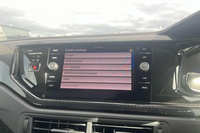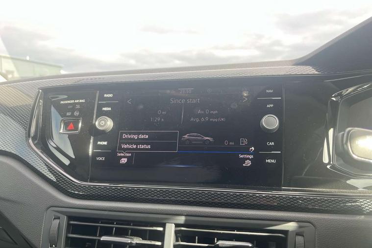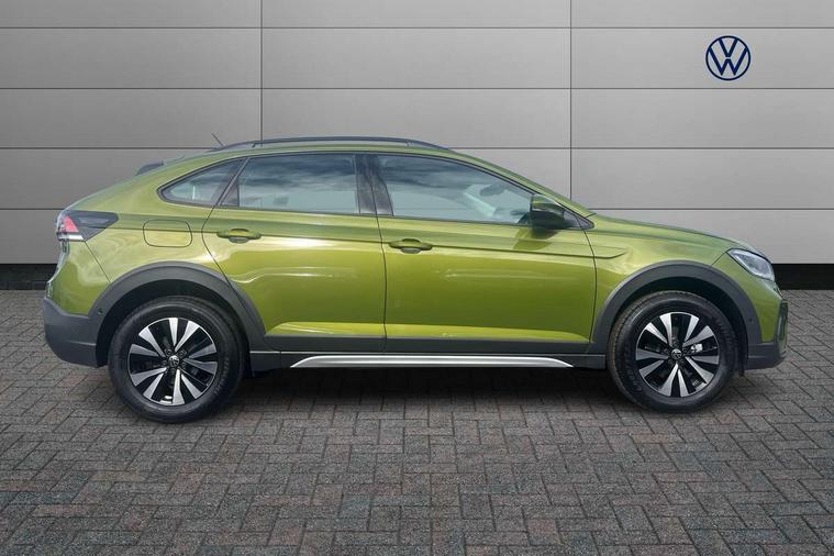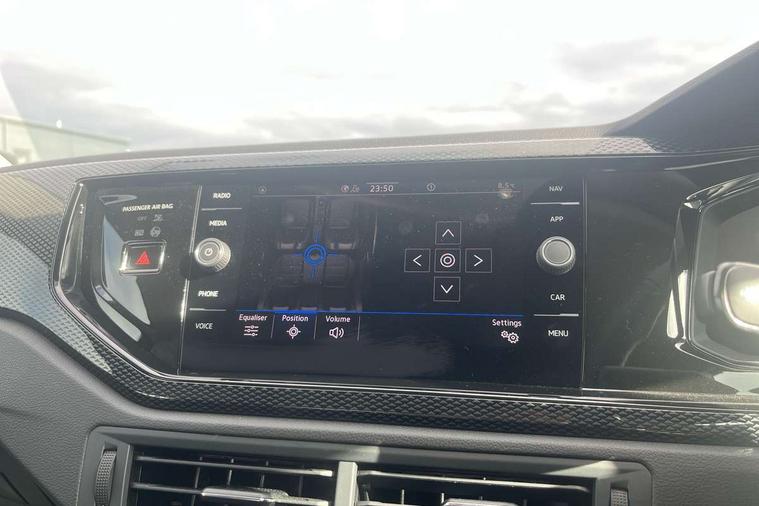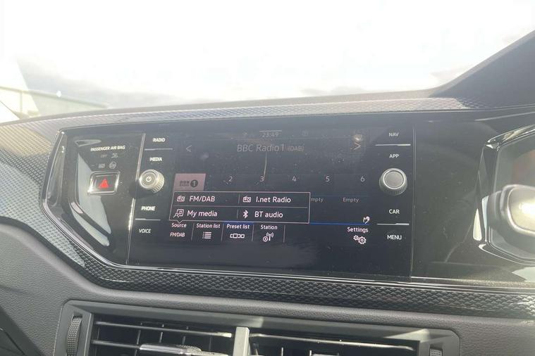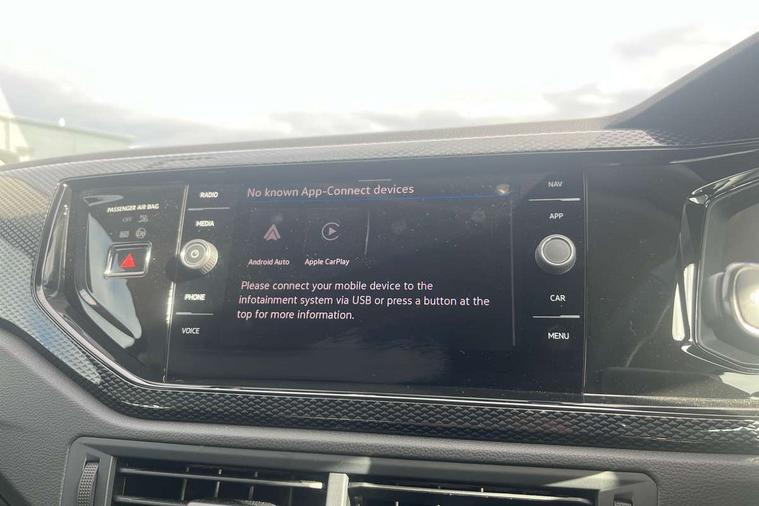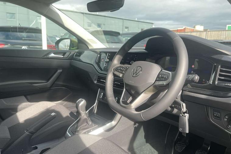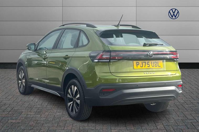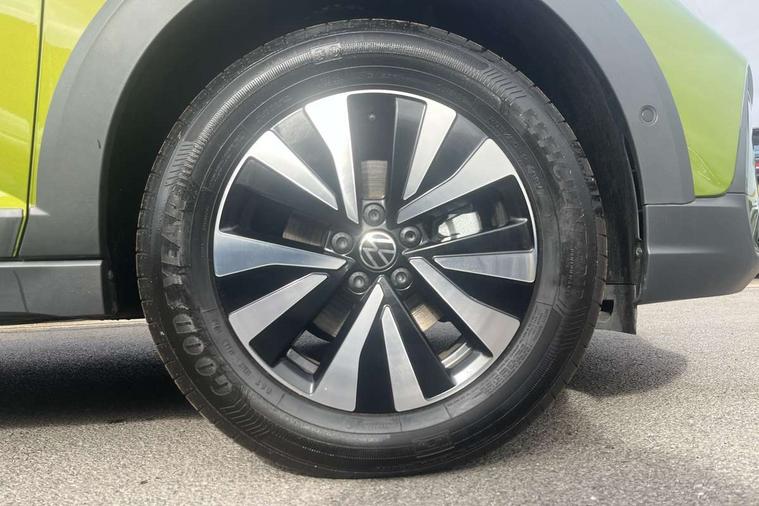 8" Digital cockpit basic display, Advanced driver attention and drowsiness monitor, Dynamic road sign display, e-Call (emergency call), Power Steering, Predictive adaptive cruise control, Travel assist including emergency assist, Washer fluid level indicator, Wireless Charging including Bluetooth, Start-stop system with battery regeneration (recuperation - energy recovery during braking), Digital radio reception (DAB+), WeConnect plus, Ambient lighting with logo projection, Aspherical driver's exterior mirror, Auto headlights, Body coloured bumpers, Body coloured exterior mirror housings and door handles, Electric windows, External USB type C socket and charging sockets, Heat insulating glass windscreen, LED rear combination lamp, LED third brake light, Left convex exterior mirror, Power folding adjustable/heated exterior mirrors and front passenger exterior mirror lowering function, Rear fog light on one side, reversing light on both sides, Rear side wing doors, Rear wash/wipe with intermittent wipe setting, 'Slash/ Austin' Cloth upholstery, 12V socket in centre console, 2 front reading lights, 3 rear head restraints, 3 seat bench in 2nd row, Black carpets, Child seat anchor for child seat system i-Size, 2x top tether and child seat anchor in front on front passenger side, Door and side trim panels in titan black, Driver and front passenger seat height adjustment, Front centre armrest, Handbrake lever handle in leather, Height and reach adjustable steering wheel, Leather trimmed gear knob, Leather wrapped multifunction steering wheel, Luggage compartment floor, Luggage compartment light, Lumbar support for driver's and front passengers seat, Seat covers in titanium black, Single front passenger seat, Split folding backrest with centre armrest and unsplit rear seat bench, Storage compartment under front seats, Sun visors with illuminated vanity mirrors, Chrome Package - Taigo, Drivers assistance pack - Taigo, Light and Sight pack including High beam assist - Taigo, 2 x 3-point seatbelts/outer rear seats with ECE label, 3-point seat belts in front with pretensioner and height adjustment, 3-point seatbelt for centre rear seat, Adaptive driver and front passenger airbags with passenger airbag deactivation function, Driver and front passenger airbags with front passenger airbag de-activation, front side and curtain airbags, Driver and front passenger safety-optimised head restraints, Electronic stability control, Extended and predictive pedestrian/ cyclist protection, Front and rear disc brakes, Front curtain and side airbags with center airbag, Hill start assist, Manual rear child locks, Single tone horn, Tyre pressure loss indicator, Anti-theft alarm system with interior monitoring, backup horn, and towing protection, Lava stone black gloss/matt decorative inserts in dash and front door panels, Low rolling resistance tyres,