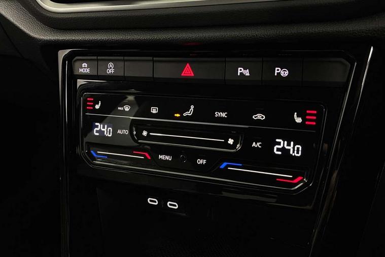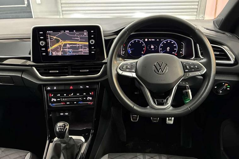 10.25" Digital cockpit pro, Advanced driver attention and drowsiness monitor, Bluetooth mobile phone interface, Emergency call service, Lane keeping system Lane Assist, Modified key software - reduce switch off time for key status change to Long no motion, Online services, Park assist including front and rear parking sensors, Service interval indicator, Tailgate/trunk lid release from outside, Think blue trainer driver tips and journey analysis, Warning sound and light for front seatbelts unfastened, Wireless app connect, Battery regeneration during braking, Start/stop function with battery regeneration, Diversity antenna for FM reception, Music playback - MP3, WMA and AAC files, Premium USB cable in choice of either Apple or Android smartphone compatibility, SD card slot, Simultaneous pairing of 2 compatible mobile devices, Title and cover art display, We Connect and We Connect Plus functionality, 3rd brake light, Auto dimming interior rear view mirror, Automatic hazard lights activation under emergency braking, Automatic headlight control with LED separate daytime running lights with coming/leaving home function, Electrically adjustable and heated door mirrors, Extended roof spoiler, Exterior mirrors aspherical on driver side, convex on front passenger side, External USB type C socket and charging sockets, Front windscreen wiper with intermittent wipe and 4 position delay, Heated rear window, LED rear combination lamps, LED rear number plate lights, Power windows with comfort operation and circuit breaker, R-Line design body coloured bumpers, Rain sensor, Rear exhaust tailpipe, Rear fog light on one side and reversing lights on both sides, Rear side wing doors, Rear wash/wipe with intermittent wipe setting, Remote electrically foldable door mirrors, puddle lights and reverse activated passenger's door mirror, 12V power socket in centre console, 3 rear head restraints, 3 seat bench in 2nd row, 4 load lashing points in luggage compartment, Air care climatronic air conditoning system with active combination filter and 2-zone temperature control, Black roof lining, Chrome plated radiator grille inserts, air vent surrounds and light switch surrounds, Door and side trim panel with leatherette insert, Front + rear carpet mats, Front centre armrest, Front cupholders x 2, Front footwell illumination, Front reading light, Front scuff plates with R Line logo, Front seat back storage pockets, Glove compartment door with light, Instrument lighting, white adjustable panel illumination, Interior ambient lighting and surround lighting, Interior light delay, Isofix child seat preparation, Leather gearshift handle, Load-through provision with cup holder when folded down ('Unsplit rear seat bench, split folding backrest, with centre armrest), Luggage compartment lighting, Single front passenger seat, Stainless steel pedals, Storage compartment in left and right luggage area, Storage compartment in rear doors, Storage compartments in driver and front passenger doors, Sunvisors with illuminated vanity mirrors, Variable boot floor, height adjustable and removable, Driver assistance pack without proactive passenger protection - T-Roc, 3 point height adj front seatbelts + pretensioners, 3 point seatbelts in outer rear with ECE label, ABS, Child locks on rear doors, City emergency braking and pedestrian monitoring, Driver and front passenger airbag with front passenger airbag deactivation, Driver and front passenger safety-optimised head restraints, Drivers seatbelt reminder, Electronic parking brake, Electronic Stability Control (ESC) inc EDL (Electronic Differential Lock) and ASR (Traction Control), Front and rear passengers curtain airbag system including front side airbags, Hill start assist, Predictive pedestrian protection, Rear disc brakes, Two tone horn, Tyre pressure loss indicator, Volkswagen roadside assistance, Anti-theft alarm system with interior monitoring, backup horn, and towing protection, Remote central locking with SAFELOCK, radio remote control with 2 remote control folding keys, Trims for alloy wheels,