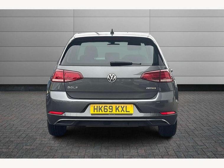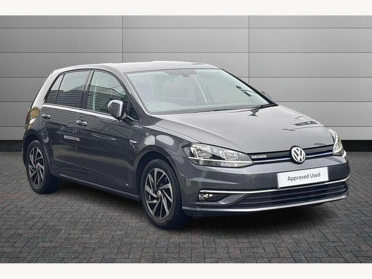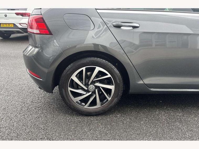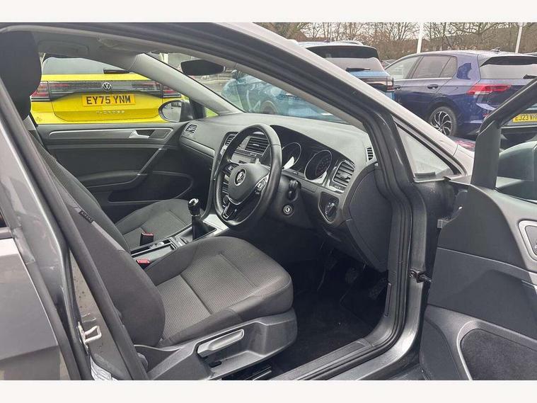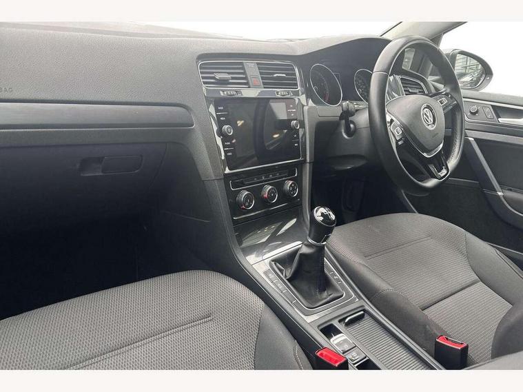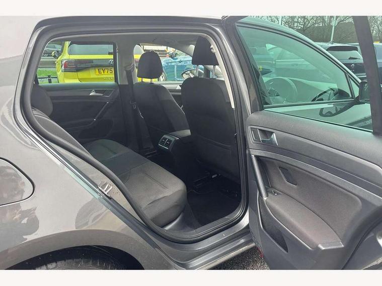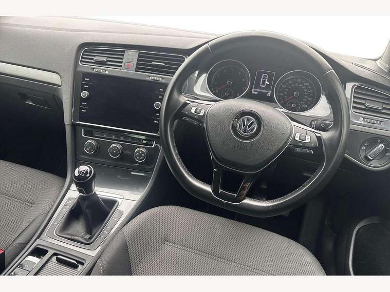 'Lights On' Reminder warning buzzer, ACC - Adaptive cruise control with front assist, forward collision warning, distance monitoring, city emergency brake and speed limiter, Bluetooth telephone and audio connection for compatible devices, Brake pad wear indicator warning light, Driver alert system, Driving Mode Selection with four preset modes - Eco, normal, sport or individual modes, Instrument cluster in white, Multifunction computer with visual gear change recommendation for fuel consumption, Power assisted speed sensitive electro-mechanical steering, Push tank flap, Speed limit display, Speedo, rev counter, electronic odometer, trip, service interval display, exterior temperature and fuel gauge, Stop/start system, Think blue trainer driver tips and journey analysis, Warning buzzer and light for front seatbelts unfastened, We Connect Go Dongle, Battery regeneration during braking, Standard suspension, XDS electronic differential lock, Composition media system, DAB Digital radio receiver, Driver Personalisation profile selection, MP3/WMA compatability, Multi device interface (MDI) with USB connection, Personalisation 1.1 profile for media, Premium USB cable in choice of either Apple or Android smartphone compatibility, SMS Functionality, Title and cover art display, 4 X 20W output, USB connection and socket, USB and SD card connectivity, Aerodynamic black radiator grille with chrome trimmed insert, Auto dimming rear view mirror, Black rear diffuser, Body colour bumpers, Body colour door handles, Body colour door mirrors with integrated indicators, Dusk sensor + automatic driving lights, Electric front windows, Electric rear windows, Electrically adjustable and heated door mirrors, Fully galvanised body, Heated rear windscreen, Hidden exhaust pipe, High level 3rd brake light incorporating LED Technology, LED front fog lights with static cornering light function, Range adjustable headlights via infotainment system with LED daytime running lights, Rear fog lamp, Rear number plate lights incorporating LED technology, Rear tinted glass 65% light absorbing from B pillar backwards, Rear window aerial, Rear window wash/wipe with intermittent wipe, Reflectors in all doors, Remote electrically foldable door mirrors, door mirror puddle lights and reverse activated kerb-view adjustment on passengers door mirror, Tailgate with integrated rear roof spoiler, Windscreen wipers/ intermittent wipe + 4 position delay, 12V socket in luggage compartment, 3 rear headrests, 4 load lashing points in luggage compartment, 60/40 split folding rear seat backrest, Auto fold down lever in rear seat backrest, Bag hook in luggage compartment x 2, Cooled glovebox, Cover for storage compartment in centre, Cupholder cover, Dust/pollen filter, Front and rear reading lights X 2, Front centre armrest with storage compartment and two rear air vents, Front seat back storage pockets, Grab handles front x 2, rear x 2 with integrated coat hooks, Height and reach adjustable steering wheel, Illuminated vanity mirrors, Instrument lighting white adjustable panel illumination, Interior light delay, Isofix preparation for 2 rear child seats, Load through provision with rear centre armrest and cupholders x2, Luggage compartment lighting, Overhead storage box, Passenger underseat drawer, Pearl grey headlining, Storage box in luggage compartment, Storage compartment in roof console with cover, Storage compartments in centre console, Storage compartments in front doors, Storage compartments in rear doors, Stowable luggage compartment cover, Sun visors, Variable boot floor, height adjustable and removable, Convenience Pack - Golf, Light and Sight pack - Golf, Mirror pack - Golf, 3 rear three point seatbelts, Airbags - Driver's and front passenger's, curtain airbag, Driver's knee, front side impact and passenger's airbag deactivation switch, Anti-lock Braking System (ABS) with Hydraulic Brake Assist (HBA), Automatic post collision braking system, Child locks on rear doors, Driver/Passenger optimised head restraints, Electronic parking brake with auto hold, Electronic stability control (ESC) including Electronic differential lock (EDL) and ASR (Traction control) with deactivation via infotainment system, Front ventilated disc brakes and rear disc brakes, Pre crash preventive occupant protection, Three point height adjustable front seatbelts with tensioners, Tyre pressure loss indicator, Alarm with interior protection and deactivation via infotainment system, Electronic engine immobiliser, Brushed dark silver decorative inserts in dash and door panels, Chrome plated air vent surround, Chrome-plated light switch surround, Polar night black decorative inserts in centre console, Steel space saver spare wheel,