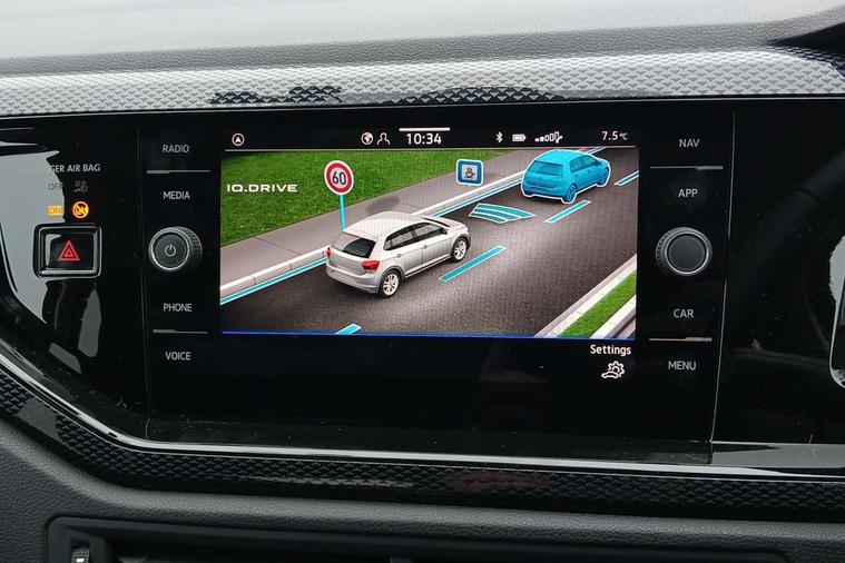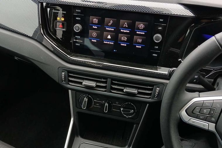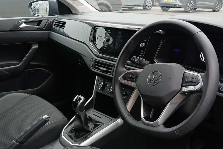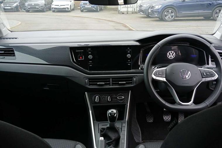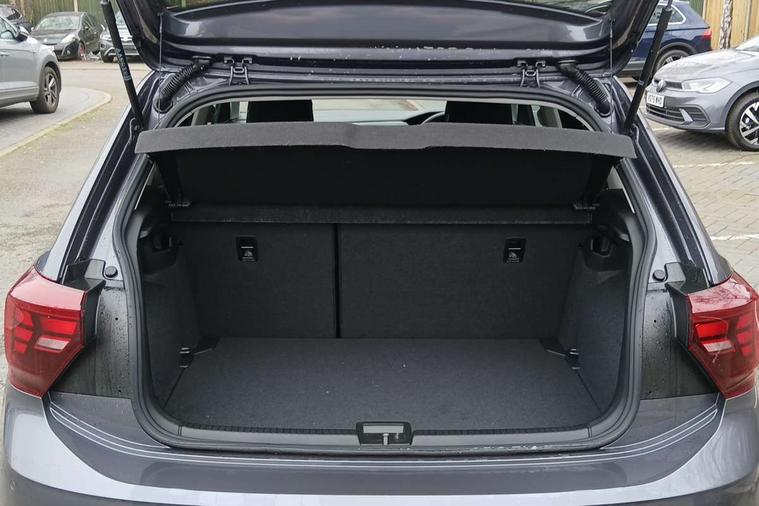 Adaptive cruise control without follow-to-stop and speed limiter, Advanced driver attention and drowsiness monitor, Bluetooth mobile phone interface, Dynamic road sign display, Emergency call service, Multifunction front facing camera for distance control, Power assisted speed sensitive steering, Preparation for navigation system with media and internet package, Preparation for We connect and We connect plus, Rear view camera, Speedo and rev counter, electronic odometer, trip, service interval display and exterior temperature gauge, Standard rear axle, Travel Assist - Lane keeping system and traffic jam assist, Travel assist including emergency assist, Trip computer, Warning signal and warning light for front and rear seatbelts not fastened, Washer fluid level indicator, Wireless app connect, Front wheel drive, Rear shock absorpion, Start-stop system with battery regeneration (recuperation - energy recovery during braking), DAB Digital radio, Diversity antenna for FM reception, Automatic dimming interior rear view mirror, Automatic headlight control with LED separate daytime running lights with coming/leaving home function, Body colour bumpers with chrome inserts, Body colour door handles, Body colour door mirrors, Electric front windows, Engine badge deletion, Headlight range adjustment, Heat insulating and laminated safety glass windshield, LED Headlights, LED rear combination lamps, Power folding adjustable/heated exterior mirrors and front passenger exterior mirror lowering function, Rain sensor, Rear electric windows, Rear fog light, Rear side wing doors, Rear tinted glass from B-pillar backwards approx 65% tinted, Rear windscreen washer and wiper with interval delay, Third brake light, 12V power socket in centre console, 2 front and 2 rear reading lights with switch off delay and dimmer, 2 USB-C ports in the front, 2 USB-C charging sockets on the center console in the rear, 3 rear head restraints, 60/40 split folding rear seat and rear seat bench not split, Ceramique roof lining, Chrome plated radiator grille inserts, air vent surrounds and light switch surrounds, Door and side trim panel, Driver and front passenger seat height adjustment, Driver/passenger sunvisors with illuminated vanity mirrors, Front centre armrest, Front seat backrest storage pockets, Front standard seats, Handbrake lever handle in leather, Hartley/Thomas cloth upholstery, Headliner in recycled material, Isofix child seat preparation easy-fit (for two outer rear seats, and front passenger seat) compatible with I-size, Leather trimmed gear knob, Luggage compartment cover, Luggage compartment lighting, Removable luggage compartment floor, Single front passenger seat, Standard climatic zones, Standard pedal cluster, Three spoke leather wrapped multifunction steering wheel, Light and vision pack - Polo, 3 point height adj front seatbelts + pretensioners, 3 point seat belt for centre rear seat, 3 point seatbelts, outer rear with ECE lable, ABS, Driver and front passenger airbag with front passenger airbag deactivation, Drivers and front passengers safety optimised head restraints, ESC (Electronic stability control) + EDL (Electronic Differntial lock) and ASR (Traction control), Extended and predictive pedestrian/ cyclist protection, Front assist with autonomous emergency braking (for Adaptive Cruise Control ACC up to 130 mph), Front curtain and side airbags with center airbag, Front disc brakes, Hill hold control, Manual child lock in rear doors, Rear drum brakes, Single tone horn, Tyre pressure loss indicator, Alarm with interior protection, Anti-theft alarm system with interior monitoring, backup horn, and towing protection, Anti-theft wheel bolts, Electronic engine immobiliser, Lava stone black gloss/matt decorative inserts in dash and front door panels, 16" Torsby alloy wheels, Low rolling resistance tyres,