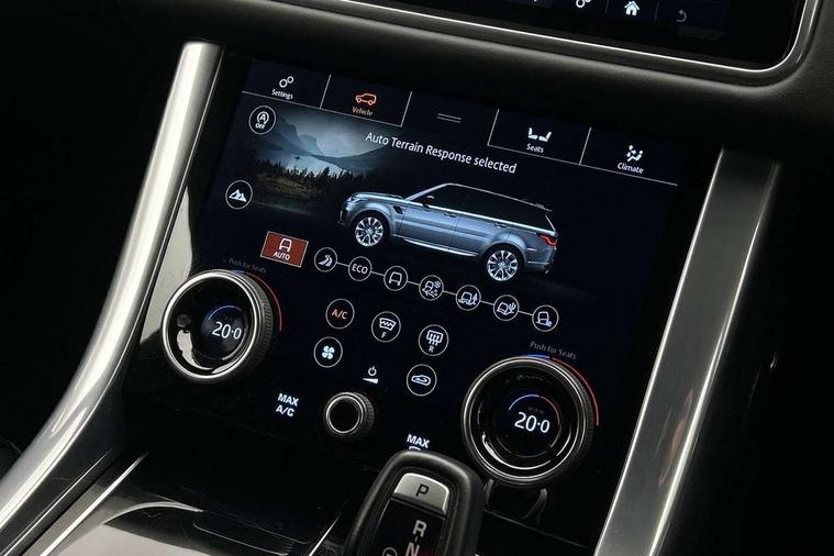 All Terrain Info Centre, Android Auto, Apple car play, Bluetooth connectivity, Electric power assisted steering (EPAS), Incontrol apps in vehicle touchscreen, Interactive Driver display instrument cluster, Mist sensor, Navigation pro system with 10" touch screen, app interface and media storage, Pro services and wifi hotspot, Push button start, Remote premium - Upgraded Incontrol remote app including remote climate control (engine dependent), remote lock + Unlock and remote beep + flash, TFT Virtual Instrument Panel, Touch pro duo system, Trip computer, Adaptive dynamics, All terrain progress control, Electronic active differential with brake torque vectoring, Electronic air suspension with dynamic response (active roll control), Gradient release control (GRC), Terrain Response 2 with dynamic program, Twin speed transfer box, Bluetooth audio streaming, DAB Radio (Digital Audio Broadcasting), Incontrol protect - SOS emergency call with automatic collision detection, optimised assistance call and Incontrol remote app essential, USB/aux input socket, Acoustic front and toughened rear side glass, Acoustic laminated front windows, Adaptive brake lights, Auto dimming interior rear view mirror, Automatic headlights, Body coloured side sills and bumpers corners, Centre high mounted stop light, Electric windows with one touch open/close and anti trap, Electrical towing preparation, Engine cover, Follow me home lighting, Front and rear recovery eyes, Front fog lights, Headlight power wash, Heated rear window, Heated windscreen includes heated washer jets, Illuminated metal treadplates with brand name script, LED rear lamps, Privacy glass (Tinted glass rear of B pillar), Rain sensing windscreen wipers, Rear fog lights, Rear side wing doors, Rear wash/wipe, Remote window closing, Side repeater indicators in mirror, Sport Badge in black, Standard bonnet, Trailer stability assist, Twin bright tailpipes, 2 way active front head restraints, 2 way rear head restraints, 3 seat bench in 2nd row, Auto air recirculation, Bright metal foot pedals, Centre console with armrest, Climate control memory, Customer configurable single point entry, Driver's footrest, Extended leather upgrade includes door top rolls and leather instrument panel mid section, Front and rear cupholders, Front door storage space, Front map lights, Front seat back map pockets, Front stowage pocket, Front/rear passenger grab handles, Heated steering wheel, Isofix child seat preparation, Leather steering wheel with Atlas inserts, Loadspace light, Loadspace mounting provisions, Lockable glovebox, Multifunction steering wheel, Perforated Windsor leather upholstery, Pollen filter, Power socket, Reach/rake electric adjustable steering column + entry/exit tilt away, Rear centre armrest, Rear ISOFIX, Roller blind loadspace cover, Satin chrome gearshift paddles, Single front passenger seat, Sports pedals, Three 12V accessory power outlets, Black Exterior pack - Range Rover Sport Dynamic, Smartphone pack - Range Rover Sport, 3 point seatbelts on all seats, Anti-lock braking system (ABS), Brake pre-fill technology, Cornering brake control (CBC), Curtain airbags, Customer configurable autolock, DSC - Dynamic Stability Control, Dual stage driver/passenger airbags, EBD - Electronic brakeforce distribution, Electric parking brake, Electronic traction control, Emergency braking includes city, urban AEB and pedestrian, Front seatbelt pretensioners, Gradient acceleration control, Grey anodised brake calipers, Height adjustable front seatbelts, Hill descent control, Hill launch assist, Low traction launch, Passenger seat occupant detector with front airbags, Power operated child locks, Roll stability control, Seatbelt warning, TPMS (Tyre pressure monitoring system), Immobiliser, Intrusion sensor, Keyless entry, Locking wheel nuts, Perimetric and volumetric anti theft alarm, Remote locking, Grand black veneer,