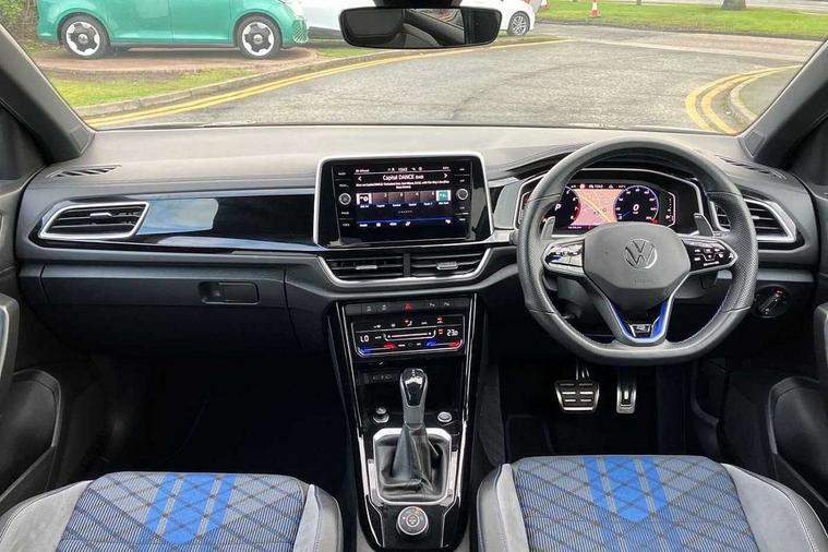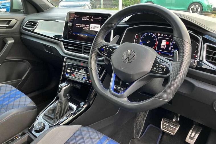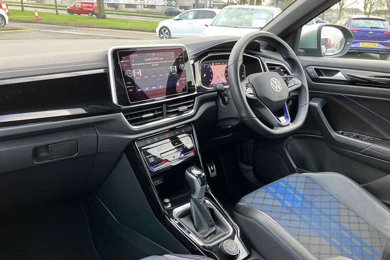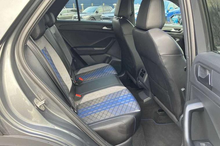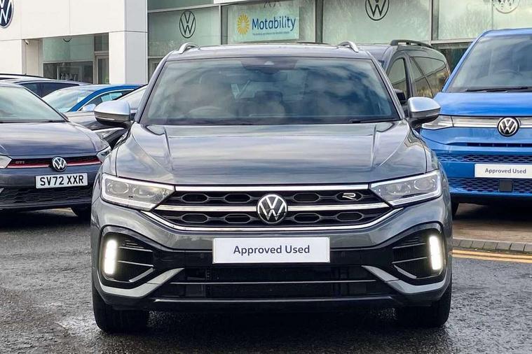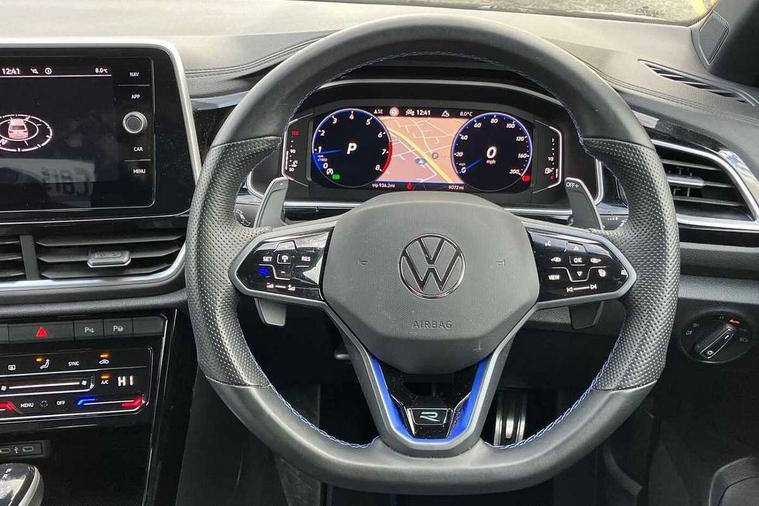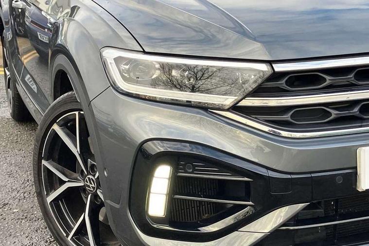 10.25" Digital cockpit pro, Bluetooth mobile phone interface, Driver alert system with fatigue detection, Driver tips and journey analysis, Emergency call service, Lane keeping system Lane Assist, Modified key software - reduce switch off time for key status change to Long no motion, Online services, Park assist including front and rear parking sensors, Service interval indicator, Tailgate/trunk lid release from outside, Think blue trainer driver tips and journey analysis, Warning sound and light for front seatbelts unfastened, Wireless app connect, Battery regeneration during braking, Four wheel drive, Start/stop function with battery regeneration, Diversity antenna for FM reception, Front and rear 6 speakers, Music playback - MP3, WMA and AAC files, Premium USB cable in choice of either Apple or Android smartphone compatibility, SD card slot, Simultaneous pairing of 2 compatible mobile devices, Title and cover art display, We Connect and We Connect Plus functionality, 3rd brake light, Auto dimming interior rear view mirror, Automatic hazard lights activation under emergency braking, Automatic headlight control with LED separate daytime running lights with coming/leaving home function, Extended roof spoiler, Exterior mirrors aspherical on driver side, convex on front passenger side, External USB type C socket and charging sockets, Front windscreen wiper with intermittent wipe and 4 position delay, Heated rear window, LED Plus headlamps, LED rear combination lamps, LED rear number plate lights, LED tail lamp rear comination lamps, Power windows with comfort operation and circuit breaker, Privacy glass for rear side windows and rear window, R-Line design body coloured bumpers, Rain sensor, Rear fog light on one side and reversing lights on both sides, Rear side wing doors, Rear wash/wipe with intermittent wipe setting, Remote electrically foldable door mirrors, puddle lights and reverse activated passenger's door mirror, 12V power socket in centre console, 3 rear head restraints, 3 seat bench in 2nd row, 4 load lashing points in luggage compartment, Air care climatronic air conditoning system with active combination filter and 2-zone temperature control, Ambient lighting - 10 colour (blue), Black roof lining, Chrome plated radiator grille inserts, air vent surrounds and light switch surrounds, Door and side trim panel with leatherette insert, Drawer under drivers seat, Driver/front passenger seat height adjustment, Front + rear carpet mats, Front centre armrest, Front cupholders x 2, Front footwell illumination, Front scuff plates with R logo in door apertures, Front sport seats, Heated leather wrapped multi function sports steering wheel with tiptronic, Instrument lighting, white adjustable panel illumination, Interior light delay, Isofix child seat preparation, Leather gearshift handle, LED interior light with switch off delay/dimmer and 2 front/rear LED reading lights, Load-through provision with cup holder when folded down ('Unsplit rear seat bench, split folding backrest, with centre armrest), Luggage compartment lighting, Lumbar support for driver's and front passengers seat, Non-folding front passenger seat backrest, R-logo stitching in floor mats, Single front passenger seat, Stainless steel pedals, Storage compartment in left and right luggage area, Storage compartment in rear doors, Storage compartments in driver and front passenger doors, Sunvisors with illuminated vanity mirrors, Variable boot floor, height adjustable and removable, Driver assistance pack without proactive passenger protection - T-Roc, R styling pack - T-Roc, 3 point height adj front seatbelts + pretensioners, 3 point seatbelts in outer rear with ECE label, ABS, Child locks on rear doors, Driver and front passenger airbag with front passenger airbag deactivation, Driver and front passenger safety-optimised head restraints, Drivers seatbelt reminder, Electronic parking brake, Electronic Stability Control (ESC) inc EDL (Electronic Differential Lock) and ASR (Traction Control), Front and rear passengers curtain airbag system including front side airbags, Front assist with city emergency braking and pedestrian monitoring, Front seat side impact airbags, Hill descent control, Hill start assist, Predictive pedestrian protection, Rear disc brakes, Single tone horn, Tyre pressure loss indicator, Volkswagen roadside assistance, Alarm with interior protection, Anti-theft alarm system with interior monitoring, backup horn, and towing protection, Keyless entry and start, Remote central locking with SAFELOCK, radio remote control with 2 remote control folding keys, Trims for alloy wheels,
