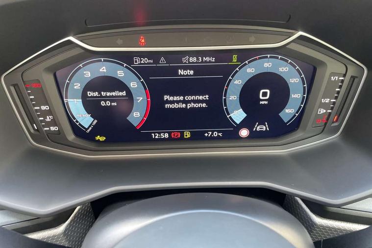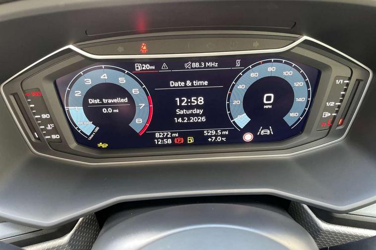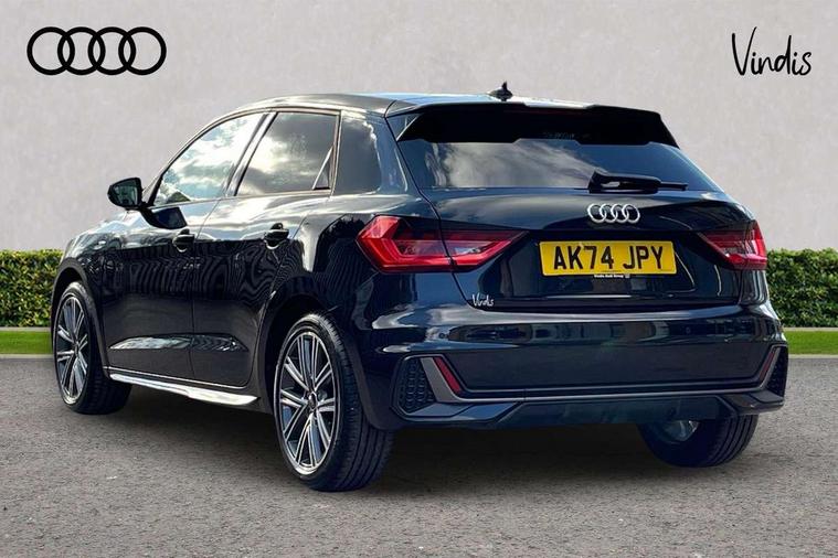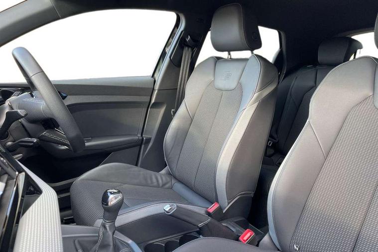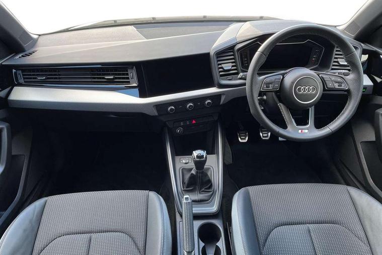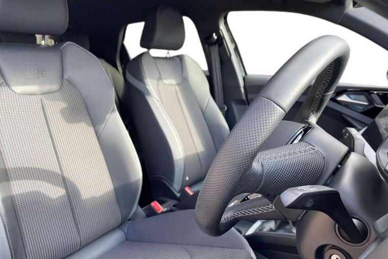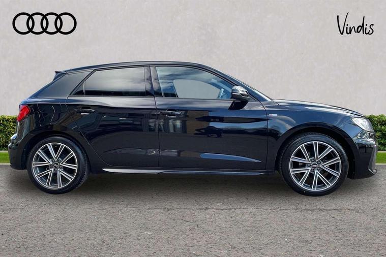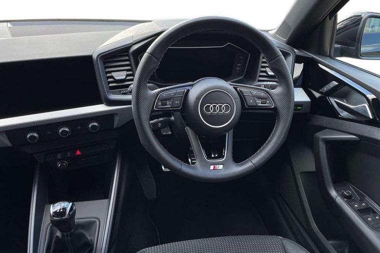 10.25" Digital instrument cluster display classis style instrument dials + speed, odometer, time, outside temperature, telephone menu + fuel level warning, Advanced driver attention and drowsiness monitor, Audi connect emergency call and service, Audi remote connect and control, Audi smartphone interface, Bluetooth interface, Camera based traffic sign recognition, Cruise control, Driver's information system, Electromechanical power steering, Lane departure warning system, Rear parking sensor, Service interval indicator, Speed limiter, Start stop system with recuperation, Voice control system, Washer fluid level indicator, Sports suspension, 2 x USB type C connection points, 6 loudspeakers, DAB Digital radio, MMI radio plus with 10.1" colour MMI display screen and MMI touch, Auto dimming rear view mirror, Body coloured door mirrors, Door sill trims with aluminium inlays and S line logo in front, Electric front and rear windows, Electrically adjustable, heated, folding door mirrors with integrated LED side indicator, Front side air inlets in grained matt black and C frame in anthracite black, Headlight cleaning system, Heat insulating glass windscreen and side windows, Heated rear windscreen, High level LED brake light, LED daytime running lights, LED headlights with range control LED rear lights + dynamic rear indicators, Privacy glass, Radiator grille and rear diffuser in matt anthracite black, Radiator protective grille frame in matt aluminium silver, Rain and light sensors, Rear fog lights, Rear side wing doors, Rear wiper, S line badges on front wings, Side front spoiler lips in grained matt black, 12V socket in centre console with two cup holders, 3 rear seats with headrests, 3 seat bench in 2nd row, 3 spoke leather multi-function plus steering wheel features S badging and grips in perforated leather with contrast stitching, 40:60 Split folding rear seat or fully collapsed, Black cloth headlining, Front and rear velour black floor mats with contrast stitching in fine silver, Front head restraints, Front passenger seat, Height and reach adjustable steering wheel, Interior lighting includes roof module, front and rear reading lights and right luggage compartment lighting, ISOFIX child seat mounting for front passenger and outer rear seats including top tether attachment point of outer rear seats, Leather gear knob with aluminium trim, Leather handbrake grip, Manual air conditioning, Manual height adjustable for driver and front passenger seat, Manually adjustable lumbar support in front seats, Stainless steel pedals, Ambient lighting package - A1, Luggage compartment pack - A1, S line exterior styling pack - A1 Sportback, 3x3 point rear seatbelts, Audi pre-sense front with pedestrain and cyclist recognition, Brake assist function, Driver and front passenger airbag with front side and head airbags, Electronic Stability Control including ABS, EBD, ASR and EDL, Front passenger airbag deactivation switch, Hill hold assist, Manual rear child locks, Seatbelt height adjustment for front seats, Seatbelt monitoring, Tyre pressure loss indicator, Warning triangle and first aid kit, Anti theft alarm, Anti theft wheel bolts, Immobiliser, Remote control key with safelock, Aluminium trim for control switches, air vents and digital instrument cluster, Black dashboard, Silver grey inlays polygon structure in diamond paint finish, Structured grey accent surfaces insert of air vents, interior door handle recesses and centre console in quartz paint finish,