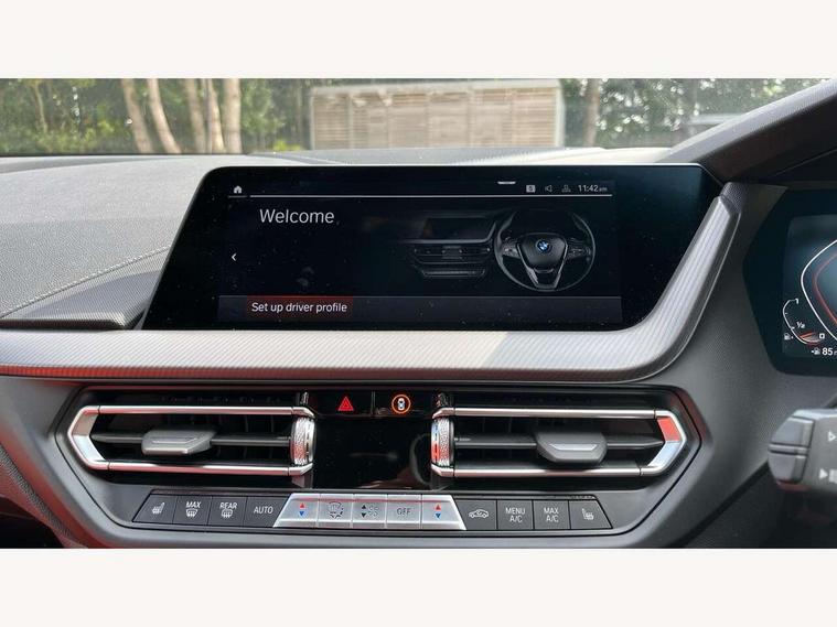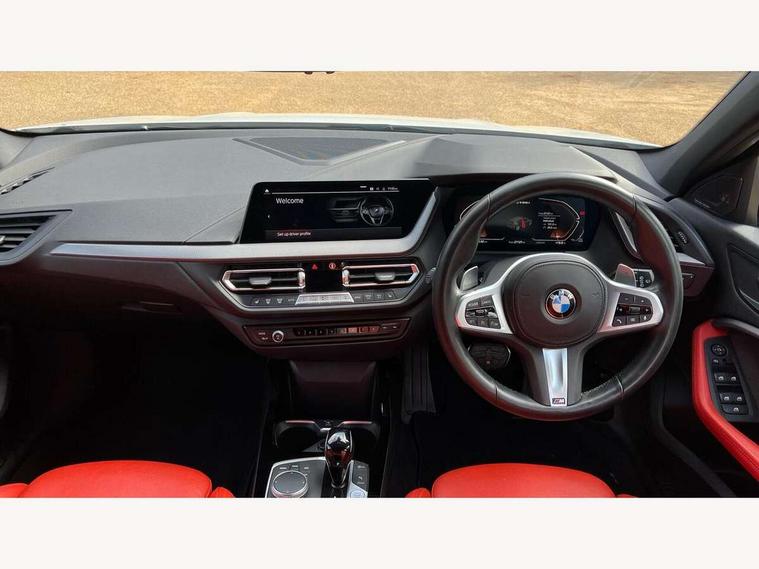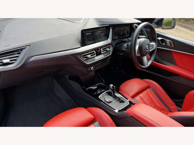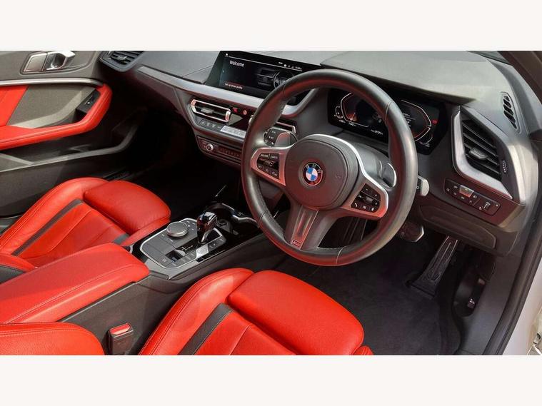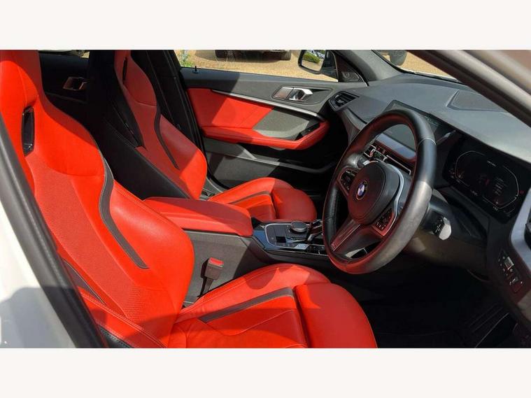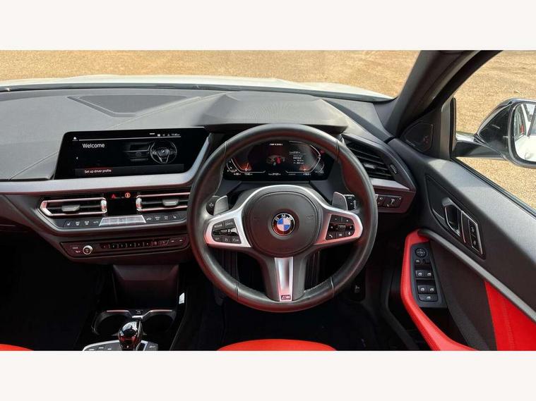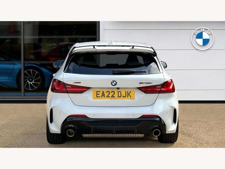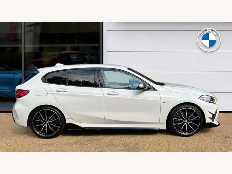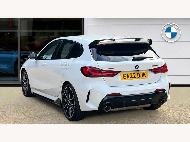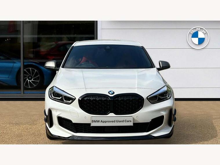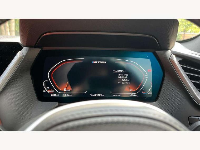 Active guard plus, Attentiveness assist, Bluetooth / WiFi interface for wireless connection of mobile terminal devices and audio streaming, BMW ConnectedDrive online services, BMW Teleservices, Check Control warning system for monitoring of lights and door/luggage compartment open warning, Cruise control with brake assist, Eco pro mode, Electric power steering, Electro hydraulically controlled multi-plate clutch transfers drive to rear axle and with power take-off device located on the front differential., Energy efficient operating strategy, Front axle single joint with specific axle kinematics to minimise drive influences on steering + provide increased rigidity agile driving behaviour, Gearshift time display in manual mode, Integrated owners handbook, Lane departure warning system, M Sports steering with M135i xDrive specific settings, Oil sensor for level and grade, On board computer, Optimum shift indicator, Personal Profile, Pull away assistant, Rigidly mounted rear subframe - Multi link construction with separate spring / damper configuration and excellent driving characteristics, Speed limit Info including no-overtaking indicator, Speed limiter, Sporty fast gear shifting in sport mode, Aluminium lightweight construction, Anti roll bar front and rear, Balancer shaft, Double VANOS, Drive Performance Control, Eight speed sport automatic transmission with gearshift paddle switches, Electronic differential lock, Electronic selector lever, Engine cover with M performance designation, High precision injection, Larger fuel tank capacity (50 litres), Launch control, M135i specific heavily de-throttled engine intake air guide, M135i specific high-performance cooling package, M135i specific larger turbocharger with integrated divert-air valve, Petrol Particulate Filter, Twin tube gas filled shock absorbers with degressive characteristic curve, VALVETRONIC engine management, Variable, stepless and infinitely adjustable distribution of drive torque between the front and rear axles, xDrive intelligent all wheel drive with M135i specific reinforced components, DAB Digital radio, Auto dimming rear view mirror, Automatic headlight beam throw control, Automatic windscreen wipers and automatic headlight, Body colour door handles, Body colour roof trims, Cerium grey exterior mirror caps, Direction indicator side lights in exterior mirrors, Exhaust tailpipe, Cerium Grey with bevelled finish - twin, round 100mm, left and right split, Fading support, Folding side mirrors with auto dimming/folding wing mirrors with auto dimming, Follow me home headlights, Front and rear bumper system with replaceable deformation elements, Front and rear electric windows with open and close fingertip control, anti trap facility and comfort closing, Front door sill finishers with M135i designation, Green tinted heat protection glazing, Heated, electrically adjustable exterior mirror aspheric on driver side, convex on passenger side, High gloss shadowline window frame, Recess cover mirror frames and B/C pillar embelisher trim, High level third brake light, Integrated front windscreen with washer jets, Kidney grille frame in Cerium Grey with Mesh design, LED daytime running lights, LED eyebrow turn indicators, LED front fog lights, Lightweight engineering, M logo designation side in cerium grey, M Performance exhaust system with valve control and minimised exhaust back pressure, M Performance specific setup, M Sport spoiler, Matt black air guide grilles, Matt black wheel arch trim, Model designation on electric bootlid includes xDrive designation for M135i xDrive, Nearside reverse light in rear light cluster, Preparation for high beam assistant, Rear fog lights, Rear side wing doors, Rear window wiper, Reinforced crank drive, new pistons and adapted con rods, Shark fin antenna, Trailer stabilisation logic, Visible VIN plate, Welcome lighting, 12V power socket in front centre console with blanking plug, 3 rear seat head restraints, 3 seat bench in 2nd row, 3 spoke sports leather steering wheel with black leather and stitching, pearl chrome decorative finish, specific M Badge, Ambient interior lighting, Anthracite headlining, Child seat ISOFIX attachment for two outer rear seats and front passenger seat with anchorage points, Conditioned based service, Driver and front passenger seat heating, Floor mats in anthracite velour with contrasting colour seam to match contrast stitching on instrument panel, Folding rear clothes hook, Four grab handles integrated in roof lining, Front and rear door pockets with bottle holders, Front and rear side armrest integrated into door trim, Front armrest, Front integrated head restraints, Front M sports seats, Glove compartment, Luggage compartment for bag hooks on left and right, foldable luggage compartment liner and two lashing eyelets, Manual adjust steering wheel, Multi-function controls for steering wheel, Single front passenger seat, Storage compartment in centre console, Sun visors with vanity mirrors and insert tab, Two front centre console cupholders, Two zone automatic air conditioning, Additional interior lighting pack - 1 Series M135i, Additional storage compartment pack with code 493 -1 series, BMW live cockpit professional pack- 1 Series, Connected pack professional - 1 Series, Interior lights pack - 1 Series, M Sport exterior styling aerodynamics pack - 1 Series 135i, 2 tone horn, 3 point seatbelts on all seats, front pyrotechnic belt tensioners, stopper and belt force limiters, rear coded belt buckles, Airbags - Front driver/passenger, front and rear curtain head protection, front side, manual deactivation of front passenger airbag, Anti lock braking system (ABS) with brake assist, BMW emergency call, Brake drying, Braking readiness, Child proof locking system in rear door, City braking function, Comfort modes, Cornering brake control, Crash sensor activating central locking release, hazard warning lights, fuel cut off, interior lighting + activation of safety battery terminal