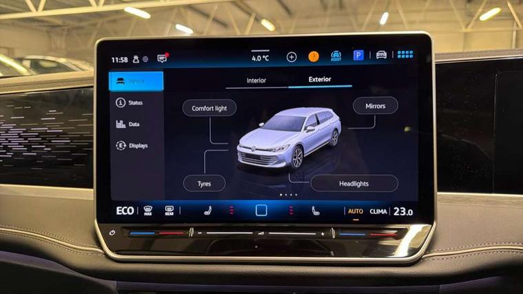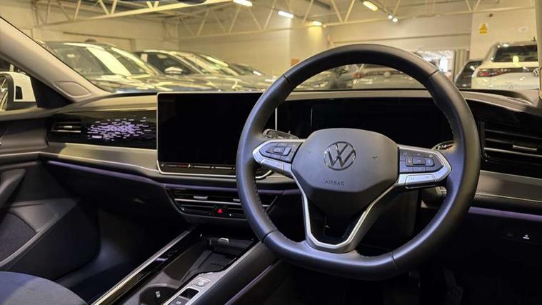 2 x Front USB-C ports, 2 x USB-C charging sockets on the centre console in the rear, charging capacity up to 45W, Adaptive cruise control, Advanced driver attention and drowsiness monitor, Chat GPT function for IDA voice assistant, Digital cockpit pro 10.25" high resolution, Discover media navigation system includes streaming and internet, Dynamic road sign display, E-Sim card for online connectivity, eCall emergency call service, Electronic engine sound, Full electric tailgate operation, Inductive smartphone charging without external antenna connection, Memory feature for park assist, Oncoming vehicle braking when turning including swerve support, Park assist pro with park distance control (Remote park assist), Predictive speed limiter, Preparation for We connect and We connect plus, Wireless app connect, Battery 340 A (58 Ah), Front wheel drive, Petrol Particulate Filter, 8 Speakers, Auto dimming interior rear view mirror, Automatic headlights, Body colour bumpers, Body colour door handles, Electric panoramic sunroof, tilting and sliding panoramic sunroof with rear panoramic sunroof, Heated windscreen washer jets, Laminated safety glass windshield, heat and sound insulating, LED third brake light, Rain sensor, Rear side wing doors, Rear wiper, Welcome light with surround lighting, 3 seat bench in 2nd row, 3 zone air care climatronic with rear air conditioning control panel, 30 colours options interior ambient lighting, Front + rear carpet mats, Front head restraints, Front sports comfort seats, Isofix child seat preparation, easy-fit (for two outer rear seats, and front passenger seat), compatible with I-size, Leather-wrapped, heated and multi-function steering wheel with shift paddles, Luggage compartment cover, power operated, Rear centre armrest, Single front passenger seat, Standard pedal cluster, Sun visors with illuminated vanity mirrors for driver and front passenger, Sunblind for rear side windows, Three rear head restraints, Unsplit rear seat bench, split folding backrest, Acoustics pack - Passat Estate, LED High matrix headlamps pack - Passat, 3x3 point rear seat belts, ABS (Anti locking brake system) includes BAS (Brake assist) and EBD (Electronic brake pressure distribution), Autonomous emergency braking front assist with pedestrian and cyclist monitoring, Disc brakes in front, Driver/Front Passenger airbags, Drivers knee airbag, Electronic parking brake with auto hold, ESC (Electronic stability control) + EDL (Electronic Differential lock) and ASR (Traction control), EDTC (Engine drag torque control), Extended safety system with proactive passenger protection system, Front passenger airbag deactivation switch, Hill hold function, Tyre pressure loss indicator, Warning triangle and first aid kit, Alarm with interior protection, Electronic engine immobiliser, Keyless locking and starting system keyless access with safelock, Aluminium decorative inserts, Tool kit for tyre mobility set, Trims for alloy wheels, Tyre mobility kit including compressor and sealing foam,