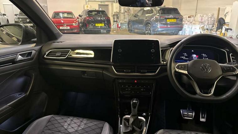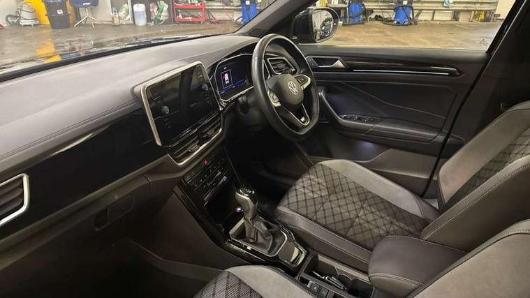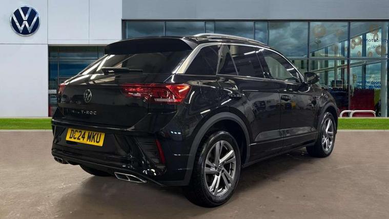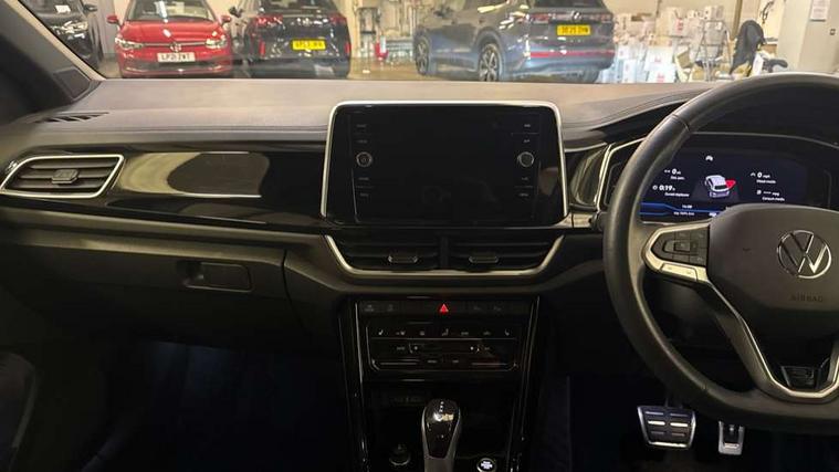 10.25" Digital cockpit pro, Advanced driver attention and drowsiness monitor, Bluetooth mobile phone interface, Emergency call service, Lane keeping system Lane Assist, Modified key software - reduce switch off time for key status change to Long no motion, Online services, Park assist including front and rear parking sensors, Service interval indicator, Tailgate/trunk lid release from outside, Think blue trainer driver tips and journey analysis, Warning sound and light for front seatbelts unfastened, Wireless app connect, Battery regeneration during braking, Start/stop function with battery regeneration, Diversity antenna for FM reception, Music playback - MP3, WMA and AAC files, Premium USB cable in choice of either Apple or Android smartphone compatibility, SD card slot, Simultaneous pairing of 2 compatible mobile devices, Title and cover art display, We Connect and We Connect Plus functionality, 3rd brake light, Auto dimming interior rear view mirror, Automatic hazard lights activation under emergency braking, Automatic headlight control with LED separate daytime running lights with coming/leaving home function, Electrically adjustable and heated door mirrors, Extended roof spoiler, Exterior mirrors aspherical on driver side, convex on front passenger side, External USB type C socket and charging sockets, Front windscreen wiper with intermittent wipe and 4 position delay, Heated rear window, LED rear combination lamps, LED rear number plate lights, Power windows with comfort operation and circuit breaker, R-Line design body coloured bumpers, Rain sensor, Rear exhaust tailpipe, Rear fog light on one side and reversing lights on both sides, Rear side wing doors, Rear wash/wipe with intermittent wipe setting, Remote electrically foldable door mirrors, puddle lights and reverse activated passenger's door mirror, 12V power socket in centre console, 3 rear head restraints, 3 seat bench in 2nd row, 4 load lashing points in luggage compartment, Air care climatronic air conditoning system with active combination filter and 2-zone temperature control, Black roof lining, Chrome plated radiator grille inserts, air vent surrounds and light switch surrounds, Door and side trim panel with leatherette insert, Front + rear carpet mats, Front centre armrest, Front cupholders x 2, Front footwell illumination, Front reading light, Front scuff plates with R Line logo, Front seat back storage pockets, Glove compartment door with light, Instrument lighting, white adjustable panel illumination, Interior ambient lighting and surround lighting, Interior light delay, Isofix child seat preparation, Leather gearshift handle, Load-through provision with cup holder when folded down ('Unsplit rear seat bench, split folding backrest, with centre armrest), Luggage compartment lighting, Single front passenger seat, Stainless steel pedals, Storage compartment in left and right luggage area, Storage compartment in rear doors, Storage compartments in driver and front passenger doors, Sunvisors with illuminated vanity mirrors, Variable boot floor, height adjustable and removable, Driver assistance pack without proactive passenger protection - T-Roc, 3 point height adj front seatbelts + pretensioners, 3 point seatbelts in outer rear with ECE label, ABS, Child locks on rear doors, City emergency braking and pedestrian monitoring, Driver and front passenger airbag with front passenger airbag deactivation, Driver and front passenger safety-optimised head restraints, Drivers seatbelt reminder, Electronic parking brake, Electronic Stability Control (ESC) inc EDL (Electronic Differential Lock) and ASR (Traction Control), Front and rear passengers curtain airbag system including front side airbags, Hill start assist, Predictive pedestrian protection, Rear disc brakes, Two tone horn, Tyre pressure loss indicator, Volkswagen roadside assistance, Anti-theft alarm system with interior monitoring, backup horn, and towing protection, Remote central locking with SAFELOCK, radio remote control with 2 remote control folding keys, Trims for alloy wheels,