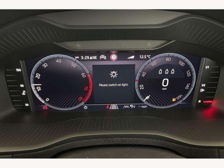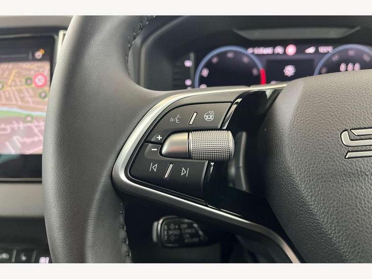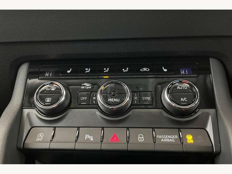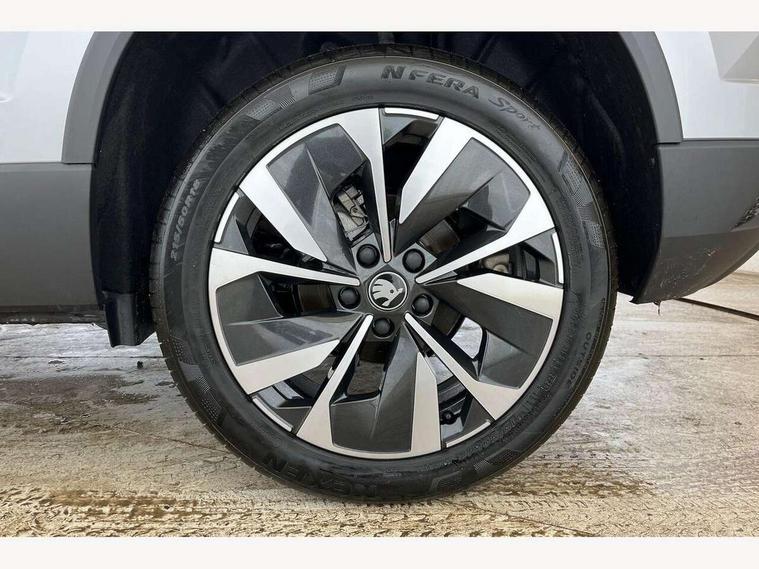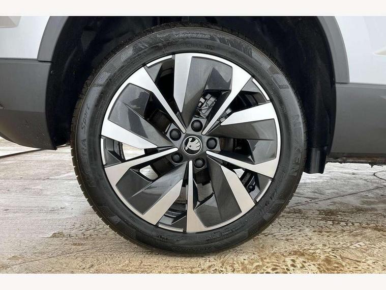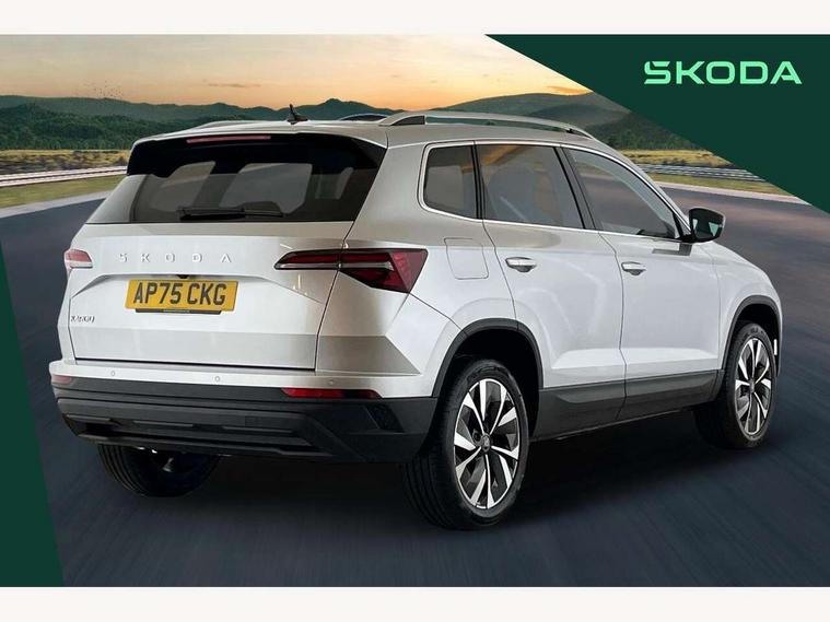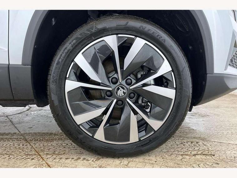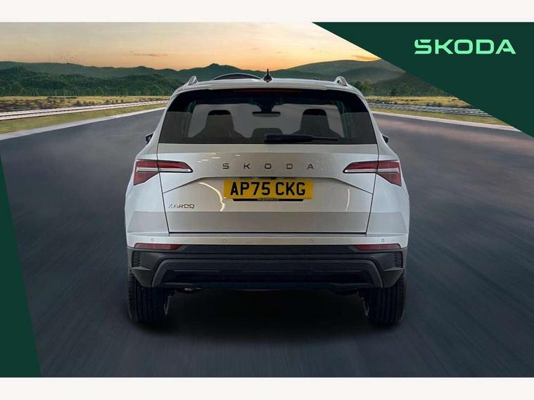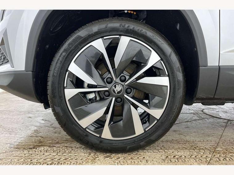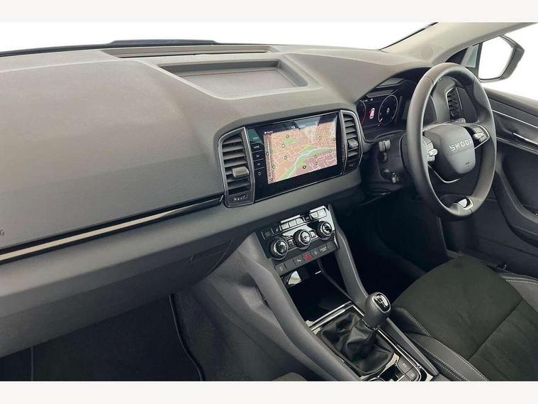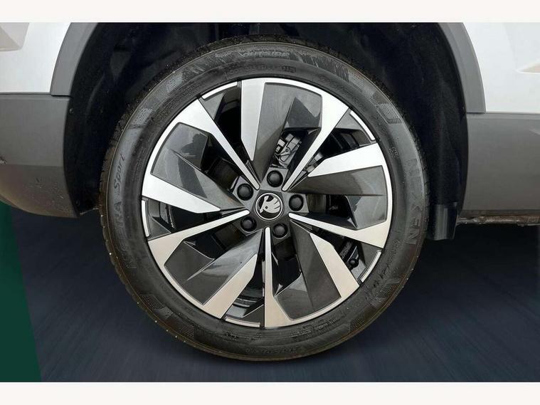 Advanced driver attention and drowsiness monitor, Drive Mode Selection including ECO function, Electro-mechanical PAS, Emergency services call system, Outside temperature gauge, Sensor for driver assistance systems, Service interval indicator, SmartLink wireless for Apple and wired for Android, Start/stop system with regenerative braking, Traffic sign recognition, USB C Port x 2 in front centre console, Virtual Cockpit - 10.25" digital display, Virtual pedal with electrically operated boot door, Wireless smartphone charging, DAB radio with Bluetooth, USB connection, Acoustic glass, Aero front windscreen wipers with intermittent function, Auto dimming rear view mirror with light and rain sensors, Black electric window control buttons, Body colour door mirrors and handles, Electric front and rear windows with child proof lock, Extended rear roof spoiler, Heated rear windscreen, LED daytime running lights, LED rear lights with high functionality welcome effect and dynamic indicators, Light assistant (coming/leaving home/tunnel light), Plastic scuff plates in door apertures, Privacy glass, Rear side wing doors, Rear window wiper with washer system and intermittent control, Safety reflectors on front doors, Third brake light, Unique dark chrome design logo on alloy wheels, 1.5 litre bottle holders in driver and front passenger door panels, 12V socket in boot, 12v socket in front centre armrest with storage compartment and rear air vents, 2 spoke leather heated multifunction steering wheel, 2 x Tablet holder, 3 rear height adjustable headrests, 3 seat bench in 2nd row, 4 foldable roof handles with rear coat hooks, Black floor carpet, Cargo elements in boot, Chrome inner door handles, Decorative door sills with KAROQ badging, Foldable hooks in the boot, Front head restraints, Height adjustable front three point seats belts with tensioners, Height/reach adjust steering wheel, Ice scraper, Illuminated glovebox, Illuminated luggage compartment, Interior noise suppression, Isofix child seat preparation for front passenger seat, Isofix child seat preparation outer rear, Manual lumbar support for front seats, Pearl grey interior ceiling, Pen holder, Pollen filter, Rear boot cover, Rear package tray, Rear reading lights, Rubbish bin door, Safety vest holder, Single front passenger seat, Skoda lettering on steering wheel, Storage box in upper central dashboard closed, Sunvisors with illuminated vanity mirrors, Textile floor mats, Ticket holder, Columbus pack - Karoq, Design Pack - Karoq, Non Smokers pack, Parking pack - Karoq, Automatic door unlocking in case of crash, Automatic fuel cut off in case of crash, Driver airbag, Electronic parking brake with auto hold function, Emergency rear braking signal, ESC (incl. ABS+MSR+ASR+EDS+HBA+DSR+RBS+MKB), Front side airbags, Head airbags, Hill hold control, Knee airbags, Passenger airbag with switch-off function, Pedestrian monitor, Power operated child safety locks, Seatbelt reminder signalisation and pretensioner for all seats, Three point seatbelts rear, Two tone horn, Tyre pressure monitor, Alarm with interior monitoring, back up horn and tilt sensor with safe function, Electronic engine immobiliser, Keyless entry and start/stop, Remote central locking with 2 remote folding keys, Black centre console, Chrome framed air vents, Satin black dashboard, Anti-theft wheel bolts protection, Breakdown and tool kit,
