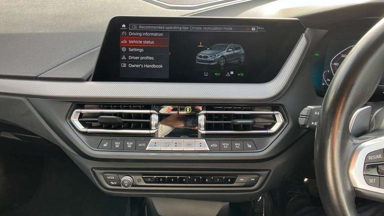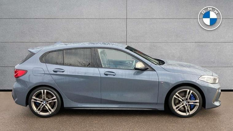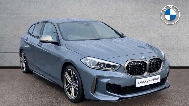 Active guard plus, Attentiveness assist, Bluetooth / WiFi interface for wireless connection of mobile terminal devices and audio streaming, BMW ConnectedDrive online services, BMW Teleservices, Check Control warning system for monitoring of lights and door/luggage compartment open warning, Cruise control with brake assist, Eco pro mode, Electric power steering, Electro hydraulically controlled multi-plate clutch transfers drive to rear axle and with power take-off device located on the front differential., Energy efficient operating strategy, Front axle single joint with specific axle kinematics to minimise drive influences on steering + provide increased rigidity agile driving behaviour, Gearshift time display in manual mode, Integrated owners handbook, Lane departure warning system, M Sports steering with M135i xDrive specific settings, Oil sensor for level and grade, On board computer, Optimum shift indicator, Personal Profile, Pull away assistant, Rigidly mounted rear subframe - Multi link construction with separate spring / damper configuration and excellent driving characteristics, Speed limit Info including no-overtaking indicator, Speed limiter, Sporty fast gear shifting in sport mode, Aluminium lightweight construction, Anti roll bar front and rear, Balancer shaft, Double VANOS, Drive Performance Control, Eight speed sport automatic transmission with gearshift paddle switches, Electronic differential lock, Electronic selector lever, Engine cover with M performance designation, High precision injection, Larger fuel tank capacity (50 litres), Launch control, M135i specific heavily de-throttled engine intake air guide, M135i specific high-performance cooling package, M135i specific larger turbocharger with integrated divert-air valve, Petrol Particulate Filter, Twin tube gas filled shock absorbers with degressive characteristic curve, VALVETRONIC engine management, Variable, stepless and infinitely adjustable distribution of drive torque between the front and rear axles, xDrive intelligent all wheel drive with M135i specific reinforced components, DAB Digital radio, Auto dimming rear view mirror, Automatic headlight beam throw control, Automatic windscreen wipers and automatic headlight, Body colour door handles, Body colour roof trims, Cerium grey exterior mirror caps, Direction indicator side lights in exterior mirrors, Exhaust tailpipe, Cerium Grey with bevelled finish - twin, round 100mm, left and right split, Fading support, Folding side mirrors with auto dimming/folding wing mirrors with auto dimming, Follow me home headlights, Front and rear bumper system with replaceable deformation elements, Front and rear electric windows with open and close fingertip control, anti trap facility and comfort closing, Front door sill finishers with M135i designation, Green tinted heat protection glazing, Heated, electrically adjustable exterior mirror aspheric on driver side, convex on passenger side, High gloss shadowline window frame, Recess cover mirror frames and B/C pillar embelisher trim, High level third brake light, Integrated front windscreen with washer jets, Kidney grille frame in Cerium Grey with Mesh design, LED daytime running lights, LED eyebrow turn indicators, LED front fog lights, Lightweight engineering, M logo designation side in cerium grey, M Performance exhaust system with valve control and minimised exhaust back pressure, M Performance specific setup, M Sport spoiler, Matt black air guide grilles, Matt black wheel arch trim, Model designation on electric bootlid includes xDrive designation for M135i xDrive, Nearside reverse light in rear light cluster, Preparation for high beam assistant, Rear fog lights, Rear side wing doors, Rear window wiper, Reinforced crank drive, new pistons and adapted con rods, Shark fin antenna, Trailer stabilisation logic, Visible VIN plate, Welcome lighting, 12V power socket in front centre console with blanking plug, 3 rear seat head restraints, 3 seat bench in 2nd row, 3 spoke sports leather steering wheel with black leather and stitching, pearl chrome decorative finish, specific M Badge, Ambient interior lighting, Anthracite headlining, Child seat ISOFIX attachment for two outer rear seats and front passenger seat with anchorage points, Conditioned based service, Driver and front passenger seat heating, Floor mats in anthracite velour with contrasting colour seam to match contrast stitching on instrument panel, Folding rear clothes hook, Four grab handles integrated in roof lining, Front and rear door pockets with bottle holders, Front and rear side armrest integrated into door trim, Front armrest, Front integrated head restraints, Front M sports seats, Glove compartment, Luggage compartment for bag hooks on left and right, foldable luggage compartment liner and two lashing eyelets, Manual adjust steering wheel, Multi-function controls for steering wheel, Single front passenger seat, Storage compartment in centre console, Sun visors with vanity mirrors and insert tab, Two front centre console cupholders, Two zone automatic air conditioning, Additional interior lighting pack - 1 Series M135i, Additional storage compartment pack with code 493 -1 series, BMW live cockpit professional pack- 1 Series, Connected pack professional - 1 Series, Interior lights pack - 1 Series, M Sport exterior styling aerodynamics pack - 1 Series 135i, 2 tone horn, 3 point seatbelts on all seats, front pyrotechnic belt tensioners, stopper and belt force limiters, rear coded belt buckles, Airbags - Front driver/passenger, front and rear curtain head protection, front side, manual deactivation of front passenger airbag, Anti lock braking system (ABS) with brake assist, BMW emergency call, Brake drying, Braking readiness, Child proof locking system in rear door, City braking function, Comfort modes, Cornering brake control, Crash sensor activating central locking release, hazard warning lights, fuel cut off, interior lighting + activation of safety battery terminal
