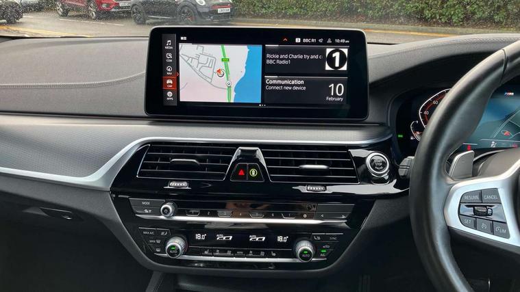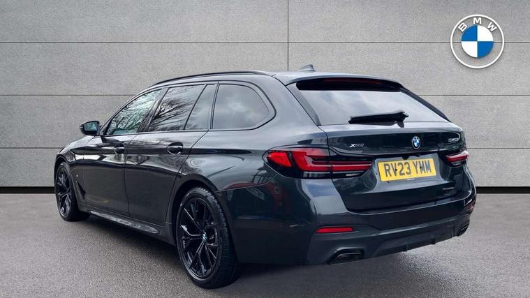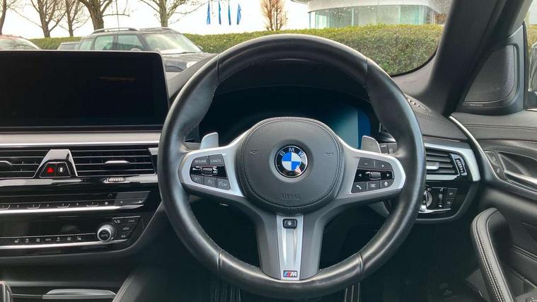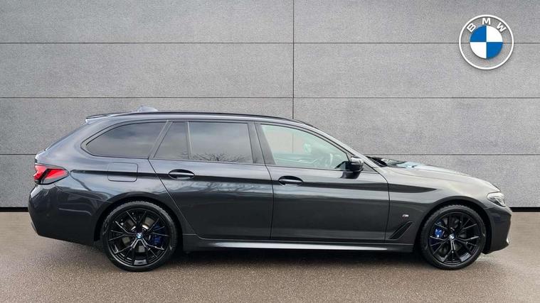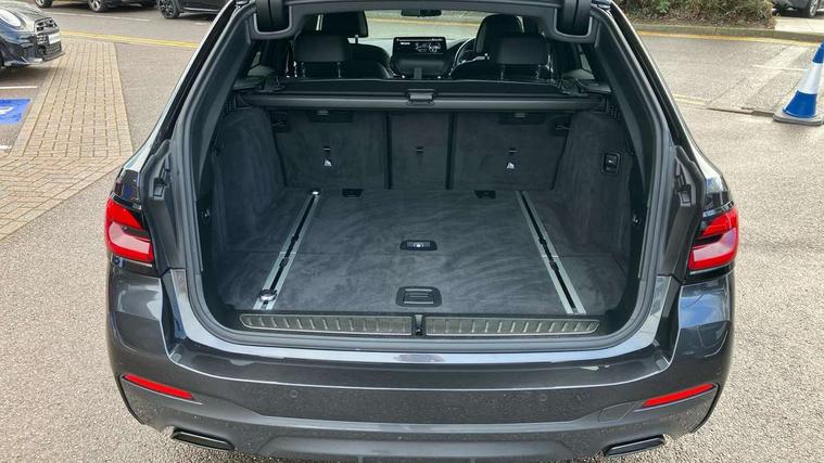 32GB hard disc drive (HDD) memory, Active Guard, Bluetooth connection, BMW ConnectedDrive online services, BMW Live Cockpit Professional sat nav system with 12.3" instrument display and high resolution control display, BMW Teleservices, Brake pad wear indicator, Cruise control with brake assist, Driving experience switch, eCall emergency call system, Electric boot lid - electrically opening/closing rear tailgate, Electric Power Steering (EPS) with Servotronic, iDrive controller with shortcut buttons, Intelligent emergency call, Multifunctional instrument panel, Oil sensor for level and grade, On board computer inc. average speed, fuel consumption, liquid crystal Info display, journey computer, outside temperature display, personal profile, On-board diagnosis - OBD, Powered by Operating System 7.0, Service interval indicator, Speed limiting function, Stop/start button, 48V Mild hybrid technology, Drive performance control with ECO PRO comfort + sport mode, Engine cover with twin turbo designation, M sport suspension, Petrol Particulate Filter, Steptronic transmission with gearshift paddles on steering wheel, DAB Digital radio, Favourite buttons, Acoustic glazing, All round anti-corrosion system, Automatic windscreen wipers and automatic headlight, Automatically dimming rear view mirror, BMW Individual high gloss shadow line includes exterior mirror frame, window frame surround, B pillar finish, air breather in high gloss black, Body colour door handles, Body coloured bumpers, Door handle illumination, Dynamic brake lights with LED technology, Electric front and rear windows with fingertip open/close + anti-trap facility and comfort closing function, Electrically adjustable and heated exterior mirrors includes integrated direction indicators and automatic parking function, Folding exterior side mirror with auto- dimming, Follow me home headlight function, Heated windscreen washer jets, High gloss black active air stream kidney grille, High gloss shadow line roof rails, Independent opening for tailgate window, LED daytime running lights, LED Headlights, LED third brake light, M designation on front side panels, left and right in chrome, M Sport exterior styling, Preparation for high beam assistant, Rear side wing doors, Rear wiper, Trapezoidal visible exhaust tailpipes, xDrive designation on tailgate, 12V power socket in front and rear, 3 seat bench in 2nd row, 40/20/40 split folding rear seats with additional mechanism in luggage compartment, Anthracite headlining, Armrest - front and rear integrated door trim, centre console includes storage compartment, rear centre includes 2 cupholders, Child seat ISOFIX attachment with rear outer seats includes top tether, Cup holders (2 front and 2 rear), Front and rear footwell lights, Front reading lights, Height and length adjustable steering column and activation via lateral lever on the steering column, Lockable glove compartment with light, M door sill finishers, M specific pedals, M specific velour floor mats, Multifunction controls for leather steering wheel, Rear headrests, Retractable luggage compartment dividing net, Single front passenger seat, Three spoke sport M leather steering wheel, Ambient lighting pack - 5 Series, Connected package professional - 5 Series, M Aerodynamic pack - 5 Series, Airbags - driver/front passenger, rear and side, first and second row seats head airbags, front passenger seat airbag deactivation, Anti-lock braking system (ABS), Automatic Stability Control (ASC), Brake assist function, Brake energy regeneration, Cornering brake control (CBC), Crash sensor activating central locking release, hazard warning lights, fuel cut off and interior lighting, Deformation zones - front and rear with door reinforcements and bumpers up to 2.5 mph, DSC - Dynamic Stability Control, Dynamic brake control, Dynamic Traction Control - DTC, Electromechanical parking brake with automatic drive away release and auto hold function, Electronic brake force distribution, Engine drag torque control, Front and rear brake discs with interior ventilation, Front head restraints with anti-whiplash, Hill start assist, M Sport brakes in high gloss blue painted brake callipers with M designation, Mechanical child proof lock on rear doors, Passive protection for pedestrians, Rear door child safety locks, Side impact protection, Three point seat belts for all four seats, Two tone horn, Tyre pressure indicator, Warning triangle and first aid kit, Alarm system (Thatcham 1) with remote control and electronic engine immobiliser, Locking wheel bolts,