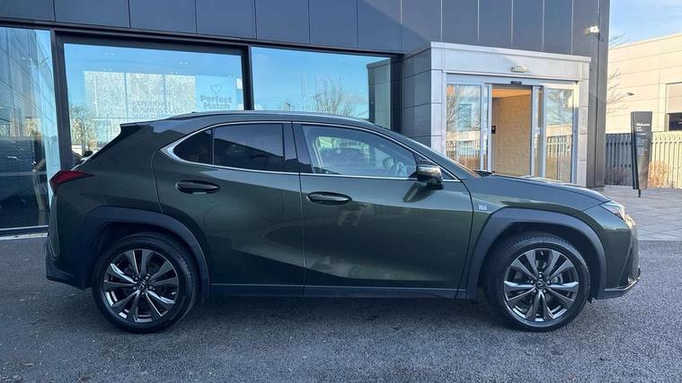 4 driving modes EV/Eco/Normal/Sport, 7" TFT instrument cluster, Analogue clock with GPS function, Blind spot monitoring (BSM) with Rear cross traffic alert and auto brake (RCTAB), Bluetooth mobile connectivity, E-call, Electric power steering (EPS) with speed sensitive features, Front and rear parking sensor with intelligent clearance sonar, Lane change flasher function, Lexus link connect with cloud based navigation and 8" touchscreen display, Lexus safety systems + includes dynamic radar cruise control, pre collision system day and night, lane tracing assist, road sign assist, Push button start, Remote touch interface, Reversing camera with back guide lines, Tailgate, Trip computer, Wireless apple car play/android Auto, Vehicle Dynamics Integrated Management (VDIM), Vehicle Stability Control (VSC), 2 front USB C and 2 rear USB C charging points, 6 speakers, AM/FM and DAB radio, AUX socket with VTR compatibility, Acoustic windscreen, Aero stabilising arch mouldings, Aero stabilising rear lights, Aero ventilated wheels, Auto dimming interior rear view mirror, Bi-LED (low and high beam) headlights with Auto High Beam (AHB), Black wheel arches, Body adhesive, laser screw welding and laser brazed roof structure, Body coloured bumpers, Chrome roof rails, Colour coded roof drip mouldings, Day time running light, Electric adjustable/heated/auto folding door mirrors, F SPORT exterior styling front and rear bumper and radiator grill, Front and rear one touch power windows, with anti-jam protection, Headlight cleaners, LED front fog lights and cornering lights, LED rear fog light, LED tail lights, LED third brake light, Privacy glass, rear doors and tailgate, Rain sensor windscreen wipers, Rear side wing doors, Rear wiper, Shark fin roof aerial, Single hidden exhaust pipe, Towing preparation, Variable front intermittent wipers, 12V accessory port centre console and luggage compartment, 2 cup holders in the front and rear centre console, 2 x folding shopping bag hooks in boot, 2 x sun visors with vanity mirror and lamp, 3 seat bench in 2nd row, 4 x tie down hooks in the boot, 5 headrests, 6 way driver and passenger manually adjustable front seats, 60/40 split folding rear seat, Black roof lining, Card holder installed in driver and passengers sun visors, Centre armrest with storage, Driver and passenger door pocket, Dual zone electronic climate control + Nano-E humidity sensor, Glovebox, Heated front seats, Heated steering wheel, Illuminated entry system, Leather gear lever, Leather steering wheel, LED interior illumination, Map pockets in the rear of passenger's front seat, Rear air vents with 2 USB chargers, Rear armrest with 2 cupholders, Single front passenger seat, Storage tray under audio panel, Tahara leather upholstery, Textile carpet mats, Tilt/reach adjustable steering column, Under deck storage, Under desk side storage, 2 x Isofix child rear seat restraints, 3x3 point rear seatbelts, Anti-lock braking system (ABS), BAS (Brake Assist System), Driver and front passenger 2 stage airbag, Driver and front passenger knee airbag, Driver/front passenger side airbags, EBD - Electronic brakeforce distribution, ECB (Electronically Controlled Brake System), Electric child locks, Electric parking brake, Front adjustable seatbelt anchor points, Front and rear curtain shield airbags, Front outer seatbelt+pre-tensioners, force limiter+tension reduction: 3-point with active safety link to PCS, Hill start assist control (HAC), Passenger airbag cut-off device, Rear outer seatbelt+pre-tensioners, force limiter+tension reduction: 3-point with active safety link to PCS, Centre belt w/o pre tensioner+force limiter, Secondary Collision Brake (SCB), TRC (Traction Control), Tyre pressure warning, 2 x remote key fobs, Anti theft system : Alarm instruction sensor, glass breakage sensor and engine immobiliser, Locking wheel nuts, Remote central door locking, Speed sensitive auto door locking, Two motion door lock with double lock, VIN Window etching, Japanese washi paper instrument panel, 18" F Sport alloy wheels with run flat tyres,