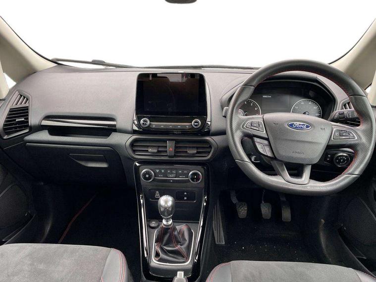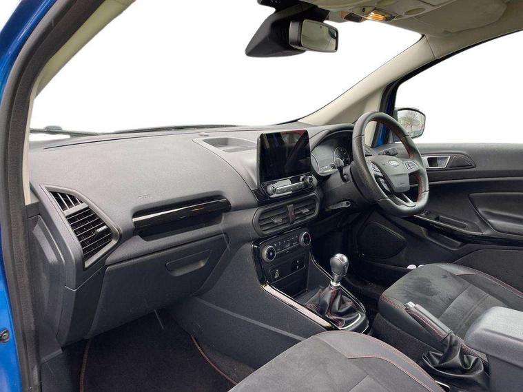 Cruise control, e-Call (emergency call), Easy fuel capless refuelling system, Ford SYNC 3 nav system with DAB radio, 8" screen, emergency assistance, Apple car play/Android auto, 2x USB, 6 speakers, Ford pass connect, Intelligent speed limiter, PAS, Rear parking sensors, Rear view camera, Traffic sign recognition, Trip computer, Sports suspension, Steering wheel mounted audio controls, Auto dimming rear view mirror, Automatic front wipers, Automatic headlights, Black roof rails, Body colour door handles, Body coloured bumpers, Chrome lower window surround, Electrically adjustable and heated door mirrors, Front fog lights, Front grille bars and surround in black, Headlight levelling control, Large rear roof spoiler, LED day running lights, LED third brake light, Power front and rear windows, Puddle lights, Quick-clear heated windscreen, Rear side wing doors, Rear wiper, ST Line body styling kit - Black headlamp bezel, front and rear sport bumpers, body colour lower door claddings, 12V socket in front and rear, 3 seat bench in 2nd row, 60/40 split rear seats, Ambient lighting, Centre console with sliding front armrest, Cooled glovebox, Courtesy lights with map reading light, Driver seat height/lumbar adjust, Driver's side glovebox, Driver/passenger sunvisors and lidded vanity mirrors, EATC - Electronic Auto Temperature control, Folding grab handles, Front head restraints, Front seat back map pockets, Illuminated glovebox, Illuminated luggage compartment, Isofix system on outer rear seats, Luggage compartment carpet, Neosuede/Partial sensico leather upholstery, Overhead console with sunglasses holder, Rake adjustable rear seats, Reach + rake adjustable steering column, Rear headrests, Sensico trimmed steering wheel, handbrake and gearshift gaiter with red stitching, Single front passenger seat, ST-Line Front floor mats with red stitching, Stainless steel sports pedals, Storage drawers under front seats, Tie down hooks, Variable boot floor, 3x3 point rear seatbelts, ABS, Autonomous emergency braking, Child locks on rear doors, Curtain airbags, Driver airbag, Drivers knee airbag, Electronic Stability Programme with hill launch assist, Front passenger airbag deactivation, Front side airbags, Passenger airbag, Pre collision assist system with AEB, Seatbelt reminder for driver and front passenger, Traction control, Tyre pressure monitoring system, Immobiliser, MyKey system, Remote central locking, Thatcham 1 volume sensing alarm, Low rolling resistance tyres, Tyre inflation kit,