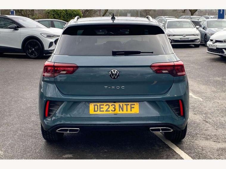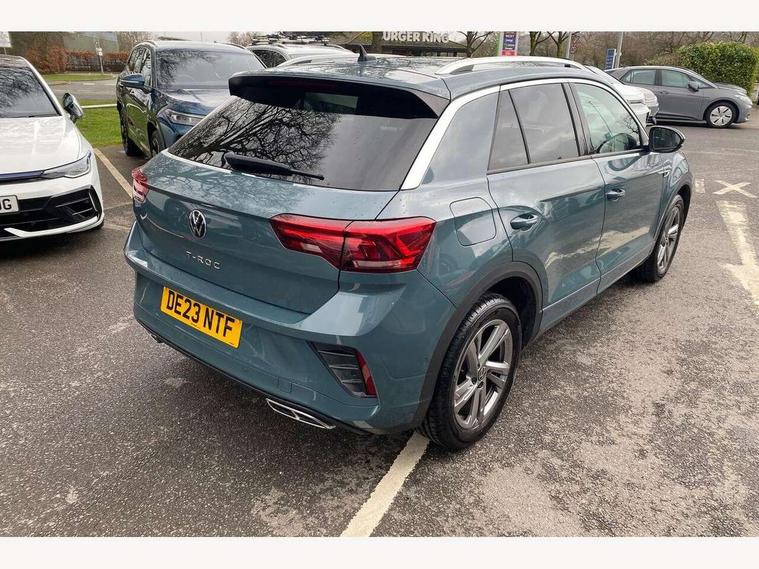10.25" Digital cockpit pro, Bluetooth mobile phone interface, Driver alert system with fatigue detection, Driver tips and journey analysis, Emergency call service, Lane keeping system Lane Assist, Modified key software - reduce switch off time for key status change to Long no motion, Online services, Park assist including front and rear parking sensors, Service interval indicator, Tailgate/trunk lid release from outside, Think blue trainer driver tips and journey analysis, Warning sound and light for front seatbelts unfastened, Wireless app connect, Battery regeneration during braking, Start/stop function with battery regeneration, Diversity antenna for FM reception, Front and rear 6 speakers, Music playback - MP3, WMA and AAC files, Premium USB cable in choice of either Apple or Android smartphone compatibility, SD card slot, Simultaneous pairing of 2 compatible mobile devices, Title and cover art display, We Connect and We Connect Plus functionality, 3rd brake light, Auto dimming interior rear view mirror, Automatic hazard lights activation under emergency braking, Automatic headlight control with LED separate daytime running lights with coming/leaving home function, Extended roof spoiler, Exterior mirrors aspherical on driver side, convex on front passenger side, External USB type C socket and charging sockets, Front windscreen wiper with intermittent wipe and 4 position delay, Heated rear window, LED Plus headlamps, LED rear combination lamps, LED rear number plate lights, LED tail lamp rear comination lamps, Power windows with comfort operation and circuit breaker, R-Line design body coloured bumpers, Rain sensor, Rear exhaust tailpipe, Rear fog light on one side and reversing lights on both sides, Rear side wing doors, Rear wash/wipe with intermittent wipe setting, Remote electrically foldable door mirrors, puddle lights and reverse activated passenger's door mirror, 12V power socket in centre console, 3 rear head restraints, 3 seat bench in 2nd row, 4 load lashing points in luggage compartment, Air care climatronic air conditoning system with active combination filter and 2-zone temperature control, Black roof lining, Chrome plated radiator grille inserts, air vent surrounds and light switch surrounds, Door and side trim panel with leatherette insert, Drawer under drivers seat, Front + rear carpet mats, Front centre armrest, Front cupholders x 2, Front footwell illumination, Front reading light, Front scuff plates with R logo, Instrument lighting, white adjustable panel illumination, Interior ambient lighting and surround lighting, Interior light delay, Isofix child seat preparation, Leather gearshift handle, Load-through provision with cup holder when folded down ('Unsplit rear seat bench, split folding backrest, with centre armrest), Luggage compartment lighting, Single front passenger seat, Stainless steel pedals, Storage compartment in left and right luggage area, Storage compartment in rear doors, Storage compartments in driver and front passenger doors, Sunvisors with illuminated vanity mirrors, Variable boot floor, height adjustable and removable, Driver assistance pack without proactive passenger protection - T-Roc, 3 point height adj front seatbelts + pretensioners, 3 point seatbelts in outer rear with ECE label, ABS, Child locks on rear doors, Driver and front passenger airbag with front passenger airbag deactivation, Driver and front passenger safety-optimised head restraints, Drivers seatbelt reminder, Electronic parking brake, Electronic Stability Control (ESC) inc EDL (Electronic Differential Lock) and ASR (Traction Control), Front and rear passengers curtain airbag system including front side airbags, Front assist with city emergency braking and pedestrian monitoring, Front seat side impact airbags, Hill start assist, Predictive pedestrian protection, Rear disc brakes, Single tone horn, Tyre pressure loss indicator, Volkswagen roadside assistance, Alarm with interior protection, Anti-theft alarm system with interior monitoring, backup horn, and towing protection, Remote central locking with SAFELOCK, radio remote control with 2 remote control folding keys, Trims for alloy wheels,