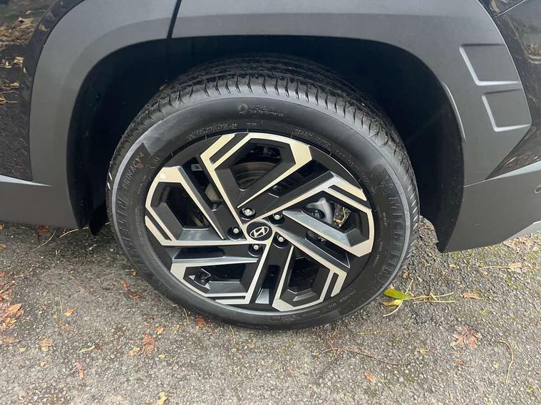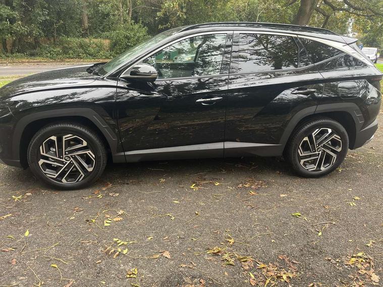 12.3" LCD display with driver's supervision instrument cluster, 12.3" widescreen navigation with bluelink and mapcare, Blind spot view monitor, Bluetooth system, Cruise control - smart adaptive speed control with stop and go function, Digital clock, Drive mode selector, Driver attention warning, E-call, Emergency stop signalling system, Forward Collision Avoidance Assist (FCA) - Car, Pedestrian and Cycle, Forward Collision Avoidance Assist Junction Turning (FCAJX), Front and rear parking sensors, Front, rear and side parking distance warning, Highway Driving Assist (HDA), Hyundai road side assistance, Intelligent speed limit assist, Lane follow assist, Lane keep assist, Over the air updates(OTA), Parking collision avoidance assist (PCA), PAS, Rear camera and guidance parking system, Rev counter, Smart power tailgate, Surround view monitor, Tailgate open warning light, Trip computer, Trip odometer, Voice recognition, Water temperature gauge, Windscreen washer fluid sensor and warning indicator, Wireless Apple CarPlay/Android Auto, Wireless phone charging pad, 2 front and 2 rear USB-C ports, DAB Digital radio, Krell premium audio system with 8 speakers and subwoofer, Steering wheel mounted audio/phone controls, Adjustable intermittent front windscreen wipers with aero wiper blade, Auto dimming rear view mirror, Automatic defog system, Automatic headlights with dusk sensor, Automatic windscreen wipers with rain sensor, Black wheel arches, Body colour bumpers, Body colour door mirrors with integrated indicators, Body colour exterior door handles, Electric tilt/slide panoramic sunroof, Electrically adjustable, heated and power folding door mirrors, Follow me home headlights, Front and rear electric windows with anti-trap mechanism and one touch control, Front fog lights, LED 3rd brake light, LED daytime running lights, LED rear lights, Matrix LED headlights, Positioning Lights - LED, Privacy glass - Rear windows and tailgate, Rear side wing doors, Rear wash/wipe with intermittent wipe setting, Roof rails, Tinted glass with windscreen shade band, Trailer stability assist, 12V power outlets in front console and luggage compartment, 3 seat bench in 2nd row, 40/20/40 split folding rear seat, 64 colours interior ambient lighting, Adjustable head restraints (Up and down), Cupholders in rear armrest, Door courtesy lights, Driver and passenger sunvisors with illuminated LED vanity mirrors, Driver's seat electric adjustments, Driver's seat memory, Front and rear door pockets, Front armrest with storage box, Front centre console and door bottle holders, Front passenger's seat electric adjustments, Heated front seats, Heated rear seats, Heated steering wheel, Height/reach adjustable steering column, Illuminated/air conditioned glove compartment, ISOFIX child seat anchorage points attached on outer rear seats, Leather upholstery, Leather wrapped steering wheel and gear knob, Luggage compartment lighting, Luggage cover, Luggage hooks, Luggage net, Map and reading lights, Rear seat remote folding function, Rear side window sunblind, Reclining rear seats, Retractable load cover, Single front passenger seat, Sunglasses holder, Three zone climate control, Touch sensitive climate controls with temperature dials, TUCSON branded metal door scuff plate, Underfloor boot compartment, Ventilated front seats, Trailer wiring package - Tucson, 3x3 point rear seatbelts, Active bonnet, Airbag - Front, front side, curtain and centre front airbags, Anti-lock brake system (ABS), Brake assist function, Childproof rear door locks, Curtain airbag roll over sensor, Downhill brake control, Electric parking brake, Electronic stability control, Front and rear seatbelt reminder, Front passenger airbag deactivation switch, Front seatbelt pretensioners, Hill start assist control (HAC), Multi-Collision braking, Outer rear seatbelt height adjustment, Seatbelt height adjustment for front seats, Traction control, Tyre pressure monitoring system with individual tyre pressure display - TPMS, Vehicle stability management, Deadlocks, Immobiliser, Locking wheel nuts, Remote control central locking, Smart key with keyless entry and engine start/stop button, Speed sensitive auto door locking, Thatcham category 1 alarm, 19" Alloy wheels, Tyre repair kit,
