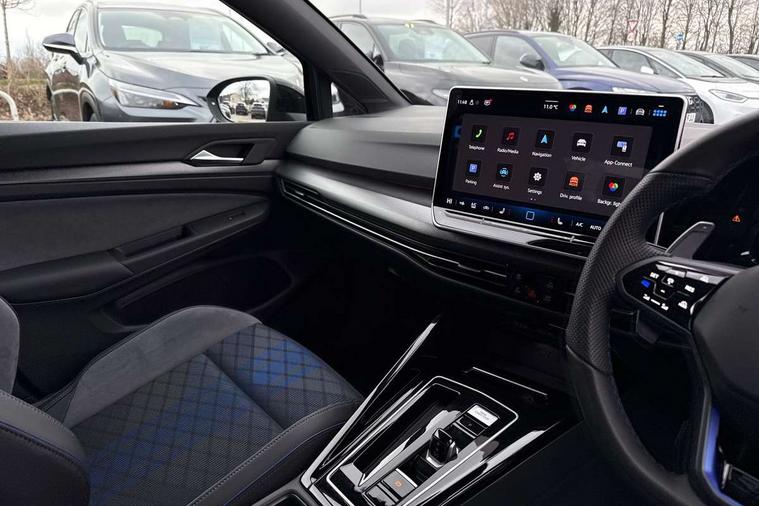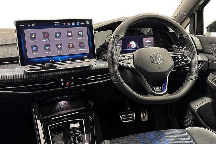 Activated carbon canister, Adaptive cruise control (ACC), Advanced driver attention and drowsiness monitor, Dynamic road sign display, E-Sim card for online connectivity, eCall emergency call system, Electronic maximum speed limit increased to 270 km/h, includes driving Modes 'drift' and 'special', larger roof spolier and GPS laptimer + G-Meter, Multi-color Digital cockpit pro, selection of different info profile possible, Multifunction front facing camera for distance control, Navigation system, Oncoming vehicle braking when turning including swerve support, Progressive steering, Side assist blind spot lane change system, rear traffic alert and exit warning system, Speed limiter, Speedo, rev counter, electronic odometer, trip, service interval display, exterior temperature and fuel gauge, Traffic jam assist, Voice enhancer and voice control, Warning signal and warning light for front and rear seatbelts not fastened, We connect plus preparation, We connect preparation, Wireless app connect, All wheel drive - 4Motion, Petrol Particulate Filter, Start-stop system with battery regeneration (recuperation - energy recovery during braking), XDS electronic differential lock for improved traction and handling, 2 USB C ports in front, 2 USB charging sockets on the centre console in the rear charging capacity upto 45W, Digital radio reception (DAB), Diversity antenna for FM reception, Gaming platform via car app, Infotainment system with 12.9" display, Mobile phone interface with inductive charging feature, 3rd brake light, Auto dimming rear view mirror, Automatic headlamp activation with Coming home and Leaving home feature, Black badge on B-pillar, Black mirror caps, Black strips on radiator grille and headlights, Body colour door handles, Darkened headlights, Darkened R Logos and VW logos in front, rear and on fender, Exterior mirrors convex on the left and aspherical on the right, Front and rear electric windows, Front fog lamps and cornering light, Heat insulating windshield made of laminated glass, Illuminated lighting animation with wake up/goodbye scenario, LED matrix headlights with ambient light V2, advanced high beam, dynamic range contol with cornering, LED rear lamp with indicator, poor weather, LED separate daytime running light, Light assist with High beam control, R name plate, Rain sensor, Rear fog light on one side and reversing lights on both sides, Rear side wing doors, Rear tinted glass 65% light absorbing from B pillar backwards, Rear windscreen washer and wiper with interval delay, Remote electrically foldable door mirrors, puddle lights and reverse activated passenger's door mirror, Welcome light with surround lighting, 12V socket in front centre console, 12V socket in luggage compartment, 3 rear head restraints, 3 seat bench in 2nd row, 30 colour ambient lighting, illuminated center console storage compartment in front, Air care climatronic 3 Zone automatic climate control with rear air conditioning control panel, Aluminium gearshift handle, Brushed stainless steel pedals, Chrome plated radiator grille inserts, air vent surrounds and light switch surrounds, Entry lights, Front + rear black carpet mats, Front centre armrest, Integrated front head restraints, ISOFIX anchors for child seats on outer rear bench seats and on front passanger seat compatible for i-Size, Luggage compartment lighting, Rear cupholder and loadthough, Single front passenger seat, Soul black instrument panel, Soul black roof lining, Split folding backrest with centre armrest and unsplit rear seat bench, Sun visors with illuminated vanity mirrors, Driver assistance pack - Golf Estate/Hatchback Auto, R styling pack - Golf, Technology park and comfort pro package - Golf Hatchback, 3 point height adj front seatbelts + pretensioners, 3 rear three point seatbelts, ABS, Autonomous emergency braking front assist with pedestrian and cyclist monitoring, Child locks on rear doors, Driver and front passenger airbag with front passenger airbag deactivation, Electronic parking brake with auto hold, ESC (Electronic Stability Control), Extended pedestrian protection measures, Front and rear black brake calipers with darkened R-logo, Hill start assist, Rear disc brakes, Two tone horn, Tyre pressure loss indicator, Volkswagen roadside assistance, Anti theft wheel bolts, Preparation for alcohol interlock, Sporty vehicle dynamics, Tool kit for tyre mobility set, Tyre mobility kit Includes 12V compressor and tyre sealant, Wheel hub cover with darkened R-logo,