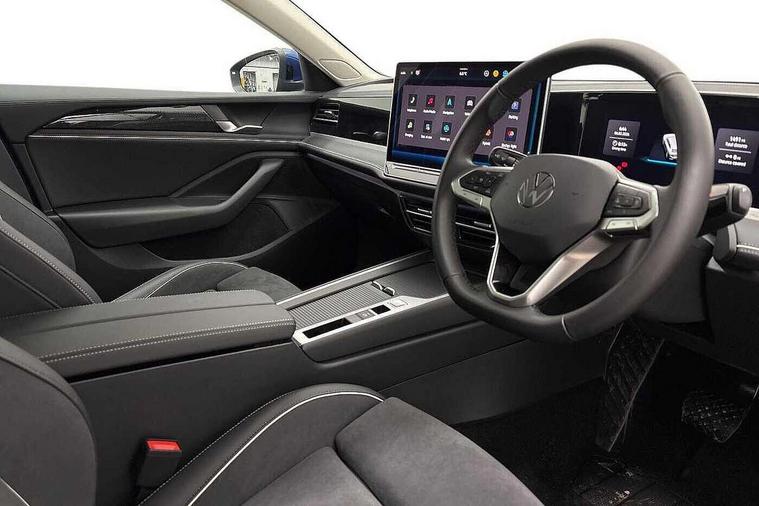 2 x Front USB-C ports, 2 x USB-C charging sockets on the centre console in the rear, charging capacity up to 45W, Adaptive cruise control, Advanced driver attention and drowsiness monitor, Chat GPT function for IDA voice assistant, Digital cockpit pro 10.25" high resolution, Discover media navigation system includes streaming and internet, Dynamic road sign display, E-Sim card for online connectivity, eCall emergency call service, Electronic engine sound, Full electric tailgate operation, Inductive smartphone charging without external antenna connection, Memory feature for park assist, Oncoming vehicle braking when turning including swerve support, Park assist with park distance control, Predictive speed limiter, Preparation for We connect and We connect plus, Wireless app connect, Battery 340 A (58 Ah), Front wheel drive, Petrol Particulate Filter, 8 Speakers, Auto dimming interior rear view mirror, Automatic headlights, Body colour bumpers, Body colour door handles, Heat insulating glass in side and rear windows, LED third brake light, Rain sensor, Rear side wing doors, Rear wiper, Welcome light with surround lighting, 3 seat bench in 2nd row, 3 zone air care climatronic with rear air conditioning control panel, Front + rear carpet mats, Front head restraints, Isofix child seat preparation, easy-fit (for two outer rear seats, and front passenger seat), compatible with I-size, Luggage compartment cover, power operated, Single front passenger seat, Standard pedal cluster, Sun visors with illuminated vanity mirrors for driver and front passenger, Sunblind for rear side windows, Three rear head restraints, Unsplit rear seat bench, split folding backrest, Infotainment package plus - Passat Estate, Park and comfort pack - Passat Estate, 3x3 point rear seat belts, ABS (Anti locking brake system) includes BAS (Brake assist) and EBD (Electronic brake pressure distribution), Autonomous emergency braking front assist with pedestrian and cyclist monitoring, Disc brakes in front, Driver/Front Passenger airbags, Drivers knee airbag, Electronic parking brake with auto hold, ESC (Electronic stability control) + EDL (Electronic Differential lock) and ASR (Traction control), EDTC (Engine drag torque control), Extended safety system with proactive passenger protection system, Front passenger airbag deactivation switch, Hill hold function, Tyre pressure loss indicator, Warning triangle and first aid kit, Alarm with interior protection, Electronic engine immobiliser, Keyless locking and starting system keyless access with safelock, Aluminium decorative inserts, Tool kit for tyre mobility set, Trims for alloy wheels,