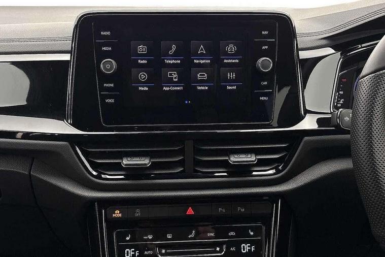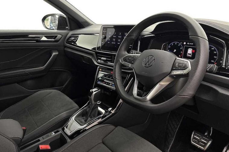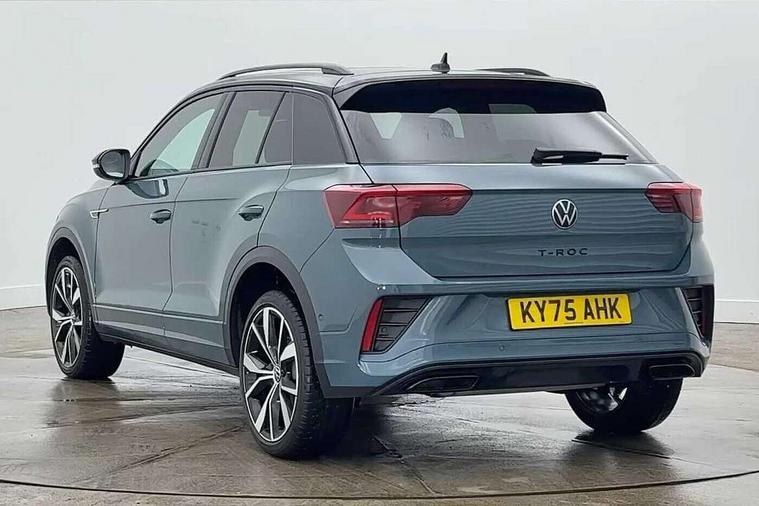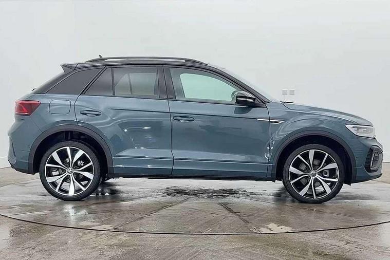 10.25" Digital cockpit pro, Advanced driver attention and drowsiness monitor, Emergency call service, Lane keeping system Lane Assist, Mobile phone interface, Modified key software - reduce switch off time for key status change to Long no motion, Online services, Park assist including front and rear parking sensors, Power assisted speed sensitive steering, Rear view camera, Service interval indicator, Tailgate/trunk lid release from outside, Think blue trainer driver tips and journey analysis, Warning sound and light for front seatbelts unfastened, Wireless app connect, Battery regeneration during braking, Rear shock absorption chassis with increased ride height, Start/stop function with battery regeneration, DAB Digital radio, Diversity antenna for FM reception, Music playback - MP3, WMA and AAC files, SD card slot, Simultaneous pairing of 2 compatible mobile devices, Title and cover art display, We Connect and We Connect Plus functionality, Advanced dynamic light assist for LED matrix headlights, Auto dimming interior rear view mirror, Automatic hazard lights activation under emergency braking, Black roof rails, Dynamic cornering light, Dynamic headlight range control with self adjusting whilst driving, Electrically adjustable and heated door mirrors, Extended roof spoiler, Exterior ambient lighting, Exterior mirrors aspherical on driver side, convex on front passenger side, External USB type C socket and charging sockets, Front windscreen wiper with intermittent wipe and 4 position delay, Heated rear window, Illuminated front grille, IQ LED matrix headlights, LED 3rd brake light, LED rear number plate lights, LED rear tail lights with dynamic turn signal, LED separate daytime running light, Light mode for poor weather, rain, fog or snow, Power windows with comfort operation and circuit breaker, Privacy glass for rear side windows and rear window, R-Line design body coloured bumpers, Rain sensor, Rear exhaust tailpipe, Rear fog light on one side and reversing lights on both sides, Rear side wing doors, Rear wash/wipe with intermittent wipe setting, Remote electrically foldable door mirrors, puddle lights and reverse activated passenger's door mirror, Tilting and sliding panoramic sunroof with rear panoramic sunroof, 12V power socket in centre console, 3 rear head restraints, 3 seat bench in 2nd row, 4 load lashing points in luggage compartment, Air care climatronic air conditoning system with active combination filter and 2-zone temperature control, Chrome plated radiator grille inserts, air vent surrounds and light switch surrounds, Door and side trim panel with leatherette insert, Drawer under drivers seat, Front + rear carpet mats, Front centre armrest, Front comfort sports seats, Front cupholders x 2, Front footwell illumination, Front reading light, Front scuff plates with R Line logo, Front seat back storage pockets, Glove compartment door with light, Instrument lighting, white adjustable panel illumination, Interior ambient lighting and surround lighting, Interior light delay, Isofix child seat preparation, Leather gearshift handle, Load-through provision with cup holder when folded down ('Unsplit rear seat bench, split folding backrest, with centre armrest), Luggage compartment lighting, Non-folding front passenger seat backrest, Single front passenger seat, Stainless steel pedals, Storage compartment in left and right luggage area, Storage compartment in rear doors, Storage compartments in driver and front passenger doors, Sunvisors with illuminated vanity mirrors, Variable boot floor, height adjustable and removable, Black design pack - T-Roc black edition plus, Easy open package with safelock - T-Roc, Sport pack with sports suspension - T-Roc, 3 point height adj front seatbelts + pretensioners, 3 point seatbelts in outer rear with ECE label, ABS, Child locks on rear doors, City emergency braking and pedestrian monitoring, Driver and front passenger airbag with front passenger airbag deactivation, Driver and front passenger safety-optimised head restraints, Drivers seatbelt reminder, Electronic parking brake, Electronic Stability Control (ESC) inc EDL (Electronic Differential Lock) and ASR (Traction Control), Front and rear passengers curtain airbag system including front side airbags, Front disc brakes, Hill start assist, Predictive pedestrian protection, Rear disc brakes, Two tone horn, Tyre pressure loss indicator, Volkswagen roadside assistance, Keyless locking and starting system keyless access with safelock, Gloss deep iron dash trim, 19" Misano black diamond turned alloy wheels with low rolling resistance and anti theft wheel bolts, Tool kit, Trims for alloy wheels, Tyre mobility kit including compressor and sealing foam,