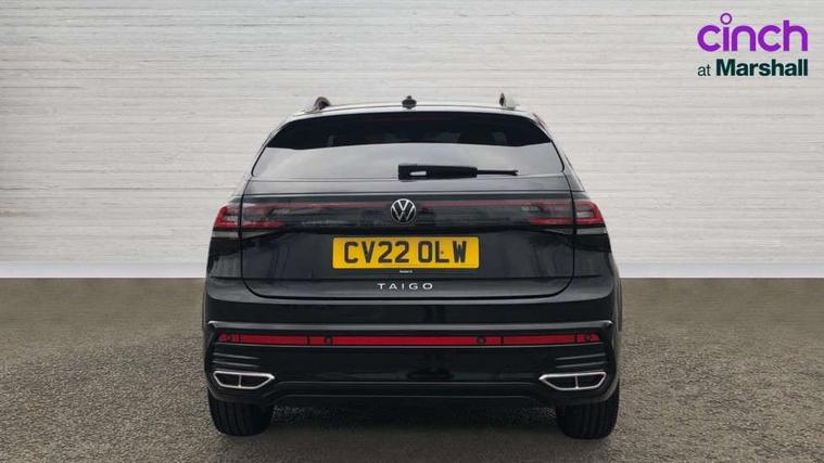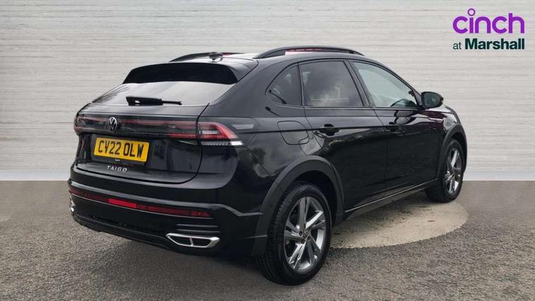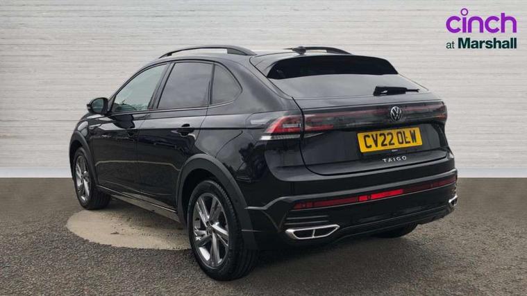 Adaptive cruise control, App-Connect including App-Connect Wireless, Digital cockpit pro - 10.25" high resolution TFT dash display screen with customizable menus and information, Driver alert system, Driving profile selection, e-Call (emergency call), Power Steering, Travel assist including emergency assist, Washer fluid level indicator, Wireless Charging including Bluetooth, Start-stop system with battery regeneration (recuperation - energy recovery during braking), XDS electronic differential lock for improved traction and handling, Digital radio reception (DAB+), Diversity antenna for FM reception, WeConnect plus, Ambient lighting with logo projection, Aspherical driver's exterior mirror, Body coloured bumpers, Body coloured exterior mirror housings and door handles, Bumpers in R-Line style, Electric windows, External USB type C socket and charging sockets, Front fog lamps with cornering function, Front scuff plates with R-Line logo, Headlight range control, LED headlamps, LED rear combination lamp, LED third brake light, Left convex exterior mirror, Power folding adjustable/heated exterior mirrors and front passenger exterior mirror lowering function, Rear fog light on one side, reversing light on both sides, Rear wash/wipe with intermittent wipe setting, 12V socket in centre console, 2 front reading lights, 3 rear head restraints, Air care climatronic air conditoning system with active combination filter and 2-zone temperature control, Black carpets, Black roof lining, Child seat anchor for child seat system i-Size, 2x top tether and child seat anchor in front on front passenger side, Chrome bezel for instrument cluster, vents, door handles + gear shift, Driver and front passenger seat height adjustment, Front + rear carpet mats, Front centre armrest, Front footwell illumination, Front sports comfort seats, Height and reach adjustable steering wheel, Interior ambient lighting and surround lighting, Karoso artvelours cloth upholstery, Leather trimmed gear knob, Leather wrapped multifunction steering wheel, Luggage compartment floor, Luggage compartment light, Lumbar support for driver's and front passengers seat, Seat covers in grey + titanium black, Split folding backrest with centre armrest and unsplit rear seat bench, Stainless steel pedals, Storage compartment under front seats, Sun visors with illuminated vanity mirrors, Chrome Package - Taigo, Drivers assistance pack - Taigo, Light and Sight pack including High beam assist - Taigo, 2 x 3-point seatbelts/outer rear seats with ECE label, 3-point seat belts in front with pretensioner and height adjustment, 3-point seatbelt for centre rear seat, Driver and front passenger airbags with front passenger airbag de-activation, front side and curtain airbags, Driver and front passenger safety-optimised head restraints, Electronic stability control, Extended and predictive pedestrian/ cyclist protection, Front and rear disc brakes, Front curtain and side airbags with center airbag, Hill start assist, Single tone horn, Tyre pressure loss indicator, Anti-theft alarm system with interior monitoring, backup horn, and towing protection, Anti-theft wheel bolts, Grey anodised matte decorative inserts in dash and front door panels, Low rolling resistance tyres,