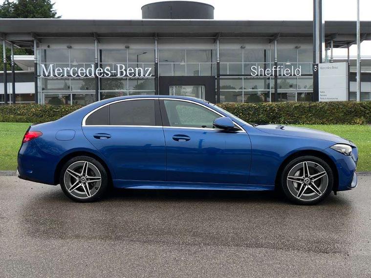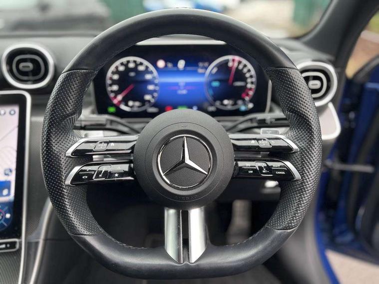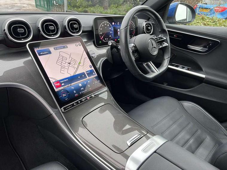 11.9" high resolution multimedia colour display, 12.3" digital instrument cluster display, Active blind spot assist, Active brake assist plus, Active lane keeping assist, AMG DYNAMIC SELECT with a choice of driving modes (Slippery, Comfort, Sport, Sport+, Individual), Attention assist, Cruise control with speedtronic variable speed limiter, E-call, Extended MBUX functions, Finger print sensor, Fluorescent jacket for driver, MBUX navigation premium, MBUX voice control activated by keywords "Hey Mercedes", Mercedes connect me, Mercedes me remote services, Outside temperature gauge, Pre-installation for digital key transfer, Remote boot release, Service indicator (ASSYST), Smartphone integration, Sports direct steer speed sensitive steering, Status display for rear seat belts in instrument cluster, 11 kW AC onboard charger, 5m charging cable for wall box/public charging stations(mode 3), 66l fuel tank with increased capacity, 9G TRONIC 9 speed automatic transmission, Agility control sports suspension and lowered by 15 mm, Petrol Particulate Filter, Sporty engine sound system, DAB Digital radio, MBUX multimedia system, Adaptive brake lights, Adaptive high beam assist, AMG body styling front apron, rear apron and side skirts, AMG front bumper with sporty air intakes and chrome elements, AMG rear bumper with high gloss chrome elements, AMG side skirts in vehicle colour, B-pillar trim in glossy black, Body coloured bumpers, Body coloured door mirrors, Chrome beltline trim, Daytime running lights, Electric windows with one touch opening/closing and obstruction sensors, Electrically adjustable and heated door mirrors, Green tinted glass, LED high performance headlamps, LED Indicators, LED tail lights, LED third brake light, Powerdomes on bonnet, Privacy glass, Radiator diamond grille with integrated Mercedes Benz star and louvre silver with chrome pins, Radio aerial integrated into rear window, Rain sensor with automatic windscreen wiper activation, Rear boot, Rear side wing doors, Side windows surround in polished aluminium, Two visible exhaust pipes integrated into rear bumper, 3 spoke flattened bottom AMG multifunction steering wheel in black nappa leather with chrome inserts and perforated leather in grip area, 40:20:40 split folding rear bench seat, AMG Leather upholstery, AMG sports seats, Audio and onboard settings control on multifunction steering wheel, Auto Mercedes-Benz child seat recognition sensor, Black air vents with silver chrome elements, Black floor mats with AMG lettering, Black roof liner, Door trim elements high gloss black with silver chrome surroundings and switches, Double cupholder in centre console, Folding rear seat backrest, Front and rear head restraints, Front centre armrest with storage compartment, Front door sills with Mercedes Benz lettering, Gearshift paddles on steering wheel, Heated front seats, Illuminated glove compartment stowage, Manually height and reach adjustable steering column, Overhead control unit in high gloss black, Rear top tether child seat ISOFIX attachment, Single front passenger seat, Sports pedals with stainless steel surfaces and rubber studs, Sunvisors with illuminated vanity mirrors, THERMATIC 2 zone automatic climate control, Interior lighting package - C Class, Mirror pack - C Class, Parking package with reversing camera - C Class, Seat comfort pack - C Class, Stowage space pack - C Class, USB package - C Class, 3 rear 3 point seatbelts, Active bonnet pedestrian safety measure which detects an impact and raises bonnet, Adaptive brake system with HOLD function and brake drying in the wet, Anti-lock braking system (ABS), Black seat belts, Brake calipers with Mercedes-Benz lettering + perforated front brake discs, Child proof door locks, Drivers knee airbag, Drivers pelvis airbag, Dual stage driver/passenger airbags, Electric parking brake, Electronic Stability Programme (ESP), Front centre airbag between driver and front passenger seats, Front side airbags, Larger brake discs on front axle, Rear passenger airbag, Rear seatbelt warning indicator, Sports braking system with perforated front disc brakes, Tyre pressure monitoring system, Warning triangle and first aid kit, Window airbags, Central locking with interior switch, automatic locking and crash sensor with emergency opening function, Chrome surround in electric key, URBAN GUARD vehicle protection (Thatcham Category 1) consisting of break-in, anti-theft alarm system (ATA), interior monitoring and tow-away protection, Artico man-made leather dashboard with contrast stitching, Centre console trim in metal weave, 18" AMG 5 spoke design aerodynamically optimised alloy wheels painted in tantalite grey with high sheen finish, Summer tyres, TIREFIT with tyre inflation compressor,