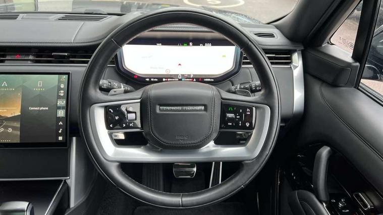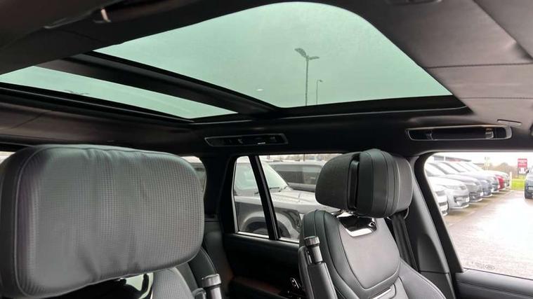 13.1" Touchscreen, 3D surround camera inc frwd traffic detection, vehicle clearance guidance, 3D view, clearsight ground view, manoevure light, 360 parking aid, wade sensing, All Terrain Info Centre, All wheel steering, Android Auto, Apple car play, Blind spot assist, Bluetooth connectivity streaming, Configurable programs, Driver condition response, Eco mode, Electric power assisted steering (EPAS), Emergency call service, Front and rear parking aid, Head up Display, Interactive driver display, Lane keep assist, Rear collision monitor, Rear traffic monitor, Remote, Traffic sign recognition with adaptive speed limiter, Wi-Fi Enabled with data plan, Wireless device charging with phone signal booster, 8 speed automatic transmission, Active damper technology system, Adaptive dynamics, Adaptive off-road cruise control, All Wheel Drive (AWD), Automatic access height, Electronic active differential with torque vectoring by braking, Electronic air suspension with dynamic response pro, Terrain Response 2 Auto, Twin speed transfer box, Digital Audio Broadcast radio-DAB, Meridian 1600W signature sound system, Pivi pro including smart settings, Connected navigation pro, nuance speech, USB socket, Acoustic laminated windscreen, Animated directional indicators, Automatic headlights, Automatic levelling headlights, Centre high mounted stop light, ClearSight interior rear view mirror, Digital LED headlights with signature DRL and image projection, Electric windows with one touch open/close and anti trap, Flush deployable exterior door handles, Front and rear recovery eyes, Front fog lights, Headlamp power wash, Heated rear window, Heated washer jets, Illuminated aluminum treadplates with illuminated SV script, Laminated front and rear side glass, LED tail lights, Power fold, auto-dimming, heated door mirrors with approach lights, Rain sensing windscreen wipers, Rear boot, Rear fog lights, Rear side wing doors, Side repeater indicators in mirror, Solar attenuating windscreen, SV branded puddle lamps, SV etched roundel on side gill inserts, SV exclusive front bumper and grille design, SV exterior badge, SV white ceramic exterior badge with black SV roundel, Trailer stability assist, Winter wiper park position, 12V power sockets, 24-way heated and cooled, hot stone massage electric front seats with Executive Class Comfort Plus rear seats, 3 seat bench in 2nd row, Air quality sensor, Auto folding loadspace cover, Bright metal pedals, Cabin air purification pro, Cabin lighting, Centre console with armrest, Customer configurable single point entry, Driver and passenger front seat armrests, Easy boot loading, Electric rear side window sunblinds, Four zone climate control, Front and rear cupholders, Front and rear grab handles, Front head restraints, Gearshift paddles, Heated steering wheel, Hook in load space, Loadspace light, Luggage tie down in loadspace, Multifunction steering wheel, Rear centre armrest, Rear head restraints, Rear ISOFIX, Single front passenger seat, SV exclusive seat foams and sculpting, SV exclusive seat pattern embroidery/ perforation, SV exclusive speaker grille design, SV start up graphics in IP screen, Twin blade sunvisors with Illuminated vanity mirrors, Upper and lower glovebox, Versatile loadspace floor in tailgate, Online pack with data plan - Range Rover, 3x3 point rear seat belts, Anti-lock braking system (ABS), Brake hold function, Cornering brake control (CBC), Customer configurable autolock, DSC - Dynamic Stability Control, Electronic brake force distribution, Electronic parking brake, Electronic traction control, Emergency brake assist, Emergency braking, Front airbags with passenger seat occupant detector, Front side airbags, Hill descent control, Hill launch assist, Illuminated seat belt buckles, Low traction launch, Occupant protection assist, Power operated child locks, Roll stability control, Tyre pressure monitoring system (TPMS), Immobiliser, Intrusion sensor and alarm, Keyless entry, Locking wheel nuts, Remote central locking, SV exclusive key fob with white and black SV roundel,