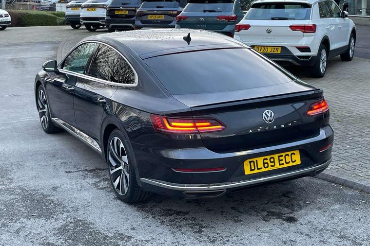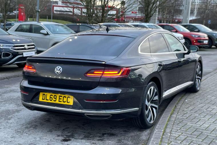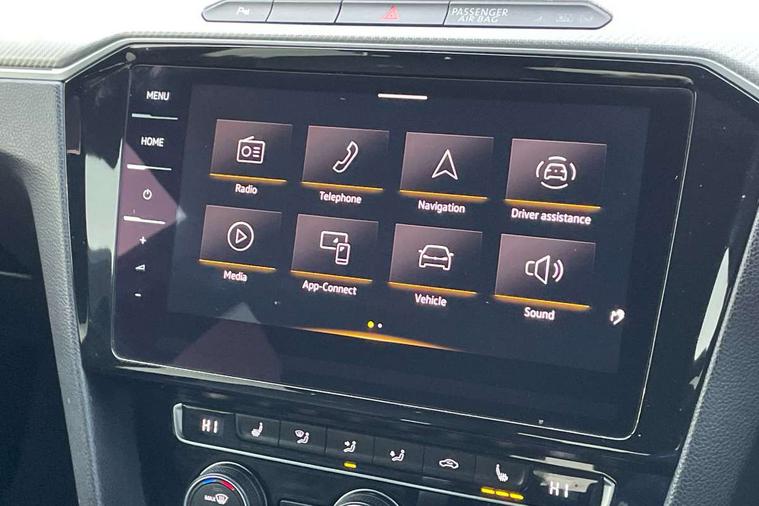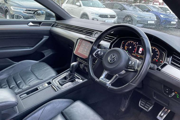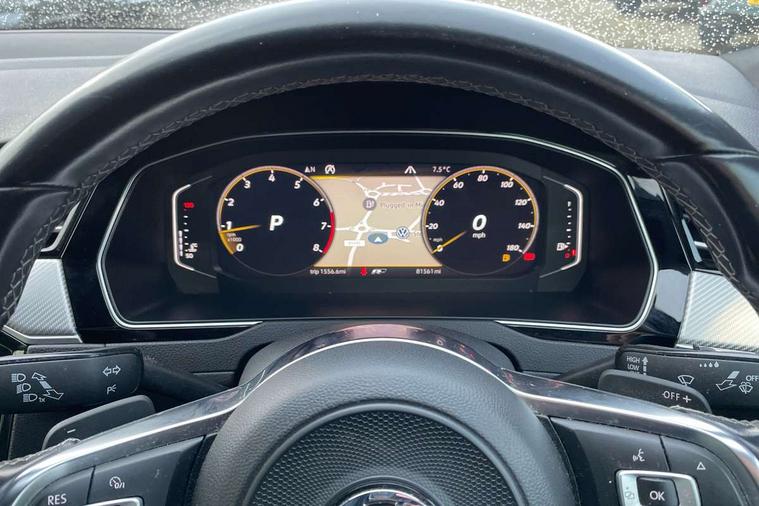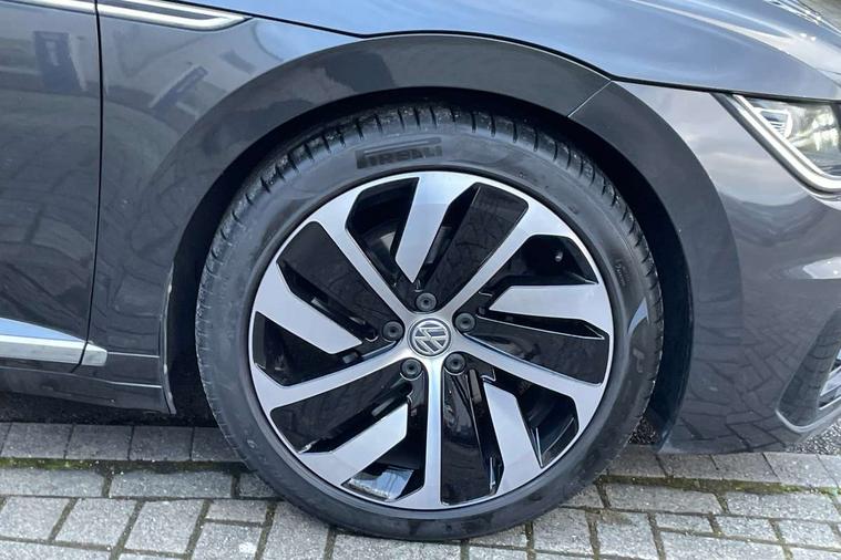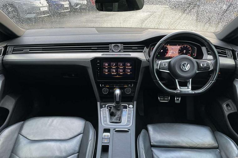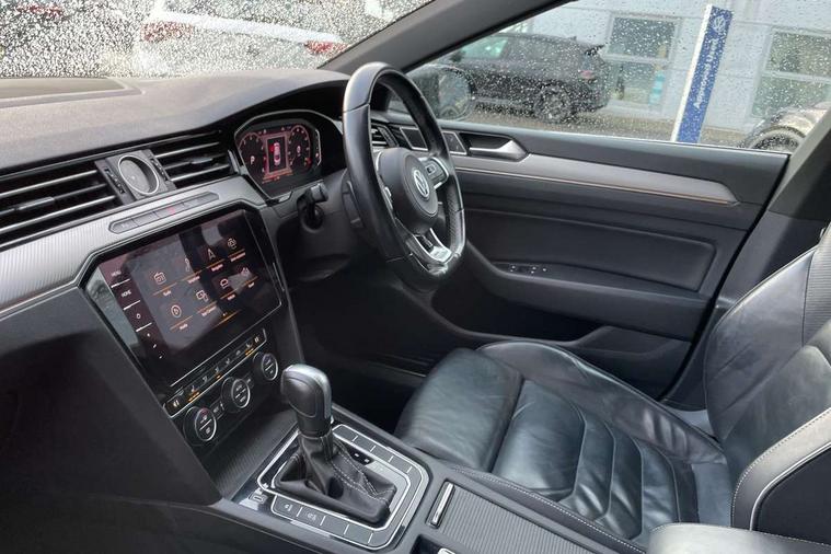'Lights On' Reminder warning buzzer, 2D/3D map view, Active Info display 12.3" high resolution TFT dash display with customisable menu and information, Adaptive Cruise Control with pedestrian detection and speed limiter, Analogue clock in the dasboard, Bluetooth telephone and audio connection for compatible devices, Car-Net Security and Service, Discover navigation pro with 9.2" touchscreen, integrated voice activation, gesture control, car-net guide and inform plus, Driver alert system with fatigue detection, Driver profile selection, Front Assist with radar sensor controlled distance monitoring system, Lane assist, Low washer fluid warning light, Press and drive key, Progressive steering, Remote boot unlocking, Speedo and rev counter, electronic odometer, trip, service interval display and fuel gauge, Start/Stop function, Streaming and internet, Think blue trainer driver tips and journey analysis, Traffic jam assist, Warning sound and light for doors and boot lid opening, Warning sound and light for front and rear seat belts if unfastened, Battery regeneration during braking, Part galvanised body, CD/MP3/WMA and SD card reader, DAB Digital radio, Driver Personalisation profile selection, MDI with USB/iPod connection cables, Premium USB cable in choice of either Apple or Android smartphone compatibility, SMS functionality - read, compose and send SMS messages using touch-screen display, Title and cover art display, USB interface 3.0 with type C, Auto dimming interior rear view mirror, Automatic coming/leaving home lighting function, Automatic hazard lights activation under emergency braking, Automatic headlights with dusk sensor, Black gloss rear tailgate spoiler, Body colour bumpers, Body colour door handles, Body colour side skirt, Body coloured top and matt black lower door mirrors, Chrome lower door mouldings, Chrome side window surrounds, Chrome trim headlights extending into the radiator grille, Chrome trim on lower bumpers, Chrome trim on radiator grille louvres, Dynamic cornering lights, Dynamic light assist, Electric adjust/heated/foldable with auto dimming on driver side, puddle lights on door mirror and reverse activated kerbview adjust on passenger side, Emergency release function in rear tailgate, Frameless side windows with one touch and convenience opening and closing functions, Front and rear electric windows, Front fog lights, Headlight range control, Headlight washers, Heated rear window, Heated windscreen washer jets, High level 3rd brake light, LED headlights with separate daytime running lights, LED number plate light, LED tinted rear light clusters with dynamic indicators, Left and right chrome effect trapezoid dummy exhaust tailpipe surrounds, R Line bading on front raddiator grille, R Line Design front bumper, R Line lettering on side fender vents, R Line logo on door sill protectors, Rain sensor, Rear tinted glass on rear side windows with 87% and rear windows with 77%, Side skirts with chrome inserts, Windscreen wipers/ intermittent wipe + 4 position delay, 12V socket in centre console storage area, 12V socket in storage compartment with soft touch opening cover, 12V socket on rear of front centre armrest, 2 bag hooks in luggage compartment, 2 reading lights front and rear with interior delay and dimming function, 3 spoke leather multifunction steering wheel including paddle shift with Aluminium inserts and R-Line logo, 3 Zone electronic climate control with automatic air recirculation, 4 load lashing points in luggage compartment, 60/40 split folding rear seat with armrest, Aluminium finish interior door handles, Aluminium trim on upper and lower air vents extending across cockpit, Front + rear carpet mats, Front and rear interior lighting with delay and dimming function, Front centre armrest with storage compartment, longitudinal and height adjustable and two rear air vents, Front cupholders x 2, Front footwell ambient lighting, Front seat and rear pockets, Front seats with R-line logo on seat backrest, Gearshift paddles, Glovebox, Heated front seats, Height adjustable 3 rear head restraints, Height/reach adjust steering wheel, Illuminated vanity mirrors, Isofix child seat preparation easy fit for two outer rear seats, Jack and tool kit, Light strips below trim in front doors and dashboard, Luggage compartment lighting, Nappa leather upholstery, Rear armrest with 2 cupholders, Rear load through provision with 2 cup holders in armrest when folded down, Removable luggage compartment cover, Stainless steel footrest and pedals, Storage compartment in drivers and front passengers door, Storage compartment in rear doors, Storage compartment with soft touch opening cover in centre console, Storage compartments in luggage area left and right, Titan headlining, USB charging point, 3 rear three-point seat belts with tensioners on outer seats, ABS+EBD+Brake assist, Active bonnet, City Emergency Braking in active traffic speeds up to 19mph, Drivers and front passengers airbags with passengers deactivation switch, Drivers and front passengers safety optimised head restraints, Drivers knee airbag, Electronic parking brake with auto hold, Electronic stability control (ESC) includes ASR, EDL, EDTC and trailer stabilisation function, Front and rear curtain airbags, Front seat side impact airbags, Front ventilated disc brakes and rear disc brakes, Height adjustable front 3 point seatbelts + pretensioners, Hill start assist, Outer rear seat side impact airbags, Pedestrian monitor, Proactive passenger protection system, Rigid safety cell with front and rear crumple zones, Two tone horn, Tyre pressure loss indicator, Warning triangle, Alarm with interior protection, Electronic engine immobiliser, Remote central locking with 2 remote folding keys, Piano black centre console, Silver Rise decorative inserts in dash and door panels, Full size alloy spare wheel,