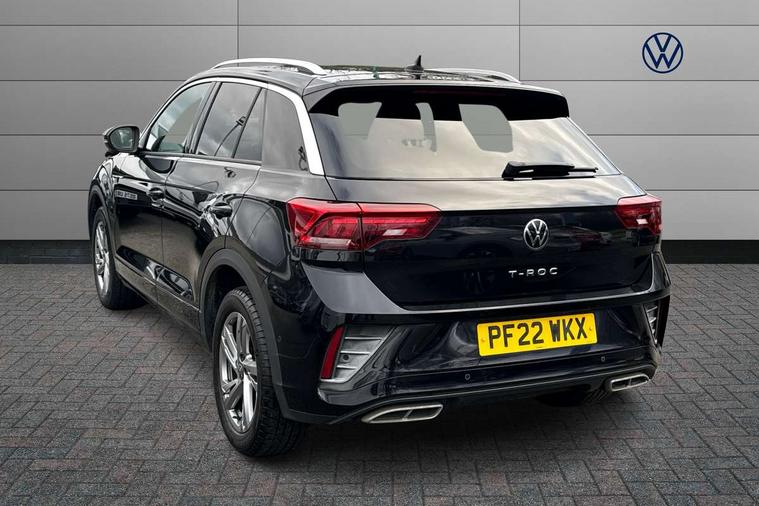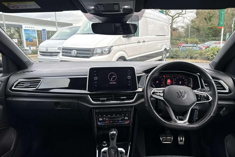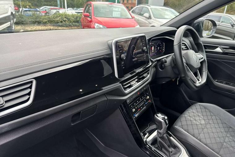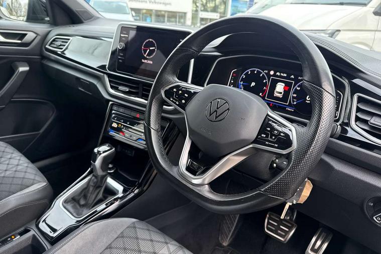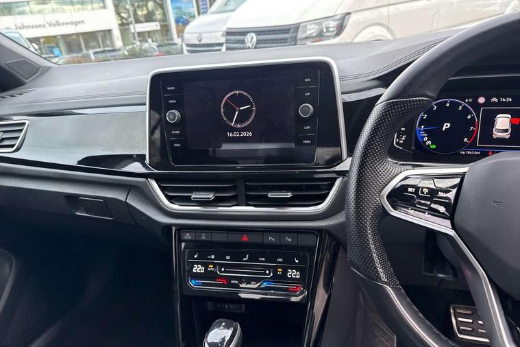 10.25" Digital cockpit pro, Bluetooth mobile phone interface, Driver alert system with fatigue detection, Driver tips and journey analysis, Emergency call service, Lane keeping system Lane Assist, Modified key software - reduce switch off time for key status change to Long no motion, Online services, Park assist including front and rear parking sensors, Service interval indicator, Tailgate/trunk lid release from outside, Think blue trainer driver tips and journey analysis, Warning sound and light for front seatbelts unfastened, Wireless app connect, Battery regeneration during braking, Start/stop function with battery regeneration, Diversity antenna for FM reception, Front and rear 6 speakers, Music playback - MP3, WMA and AAC files, Premium USB cable in choice of either Apple or Android smartphone compatibility, SD card slot, Simultaneous pairing of 2 compatible mobile devices, Title and cover art display, We Connect and We Connect Plus functionality, 3rd brake light, Auto dimming interior rear view mirror, Automatic hazard lights activation under emergency braking, Automatic headlight control with LED separate daytime running lights with coming/leaving home function, Extended roof spoiler, Exterior mirrors aspherical on driver side, convex on front passenger side, External USB type C socket and charging sockets, Front windscreen wiper with intermittent wipe and 4 position delay, Heated rear window, LED Plus headlamps, LED rear combination lamps, LED rear number plate lights, LED tail lamp rear comination lamps, Power windows with comfort operation and circuit breaker, R-Line design body coloured bumpers, Rain sensor, Rear exhaust tailpipe, Rear fog light on one side and reversing lights on both sides, Rear side wing doors, Rear wash/wipe with intermittent wipe setting, Remote electrically foldable door mirrors, puddle lights and reverse activated passenger's door mirror, 12V power socket in centre console, 3 rear head restraints, 3 seat bench in 2nd row, 4 load lashing points in luggage compartment, Air care climatronic air conditoning system with active combination filter and 2-zone temperature control, Black roof lining, Chrome plated radiator grille inserts, air vent surrounds and light switch surrounds, Door and side trim panel with leatherette insert, Drawer under drivers seat, Front + rear carpet mats, Front centre armrest, Front cupholders x 2, Front footwell illumination, Front reading light, Front scuff plates with R logo, Instrument lighting, white adjustable panel illumination, Interior ambient lighting and surround lighting, Interior light delay, Isofix child seat preparation, Leather gearshift handle, Load-through provision with cup holder when folded down ('Unsplit rear seat bench, split folding backrest, with centre armrest), Luggage compartment lighting, Single front passenger seat, Stainless steel pedals, Storage compartment in left and right luggage area, Storage compartment in rear doors, Storage compartments in driver and front passenger doors, Sunvisors with illuminated vanity mirrors, Variable boot floor, height adjustable and removable, Driver assistance pack without proactive passenger protection - T-Roc, 3 point height adj front seatbelts + pretensioners, 3 point seatbelts in outer rear with ECE label, ABS, Child locks on rear doors, Driver and front passenger airbag with front passenger airbag deactivation, Driver and front passenger safety-optimised head restraints, Drivers seatbelt reminder, Electronic parking brake, Electronic Stability Control (ESC) inc EDL (Electronic Differential Lock) and ASR (Traction Control), Front and rear passengers curtain airbag system including front side airbags, Front assist with city emergency braking and pedestrian monitoring, Front seat side impact airbags, Hill start assist, Predictive pedestrian protection, Rear disc brakes, Single tone horn, Tyre pressure loss indicator, Volkswagen roadside assistance, Alarm with interior protection, Anti-theft alarm system with interior monitoring, backup horn, and towing protection, Remote central locking with SAFELOCK, radio remote control with 2 remote control folding keys, Trims for alloy wheels,
