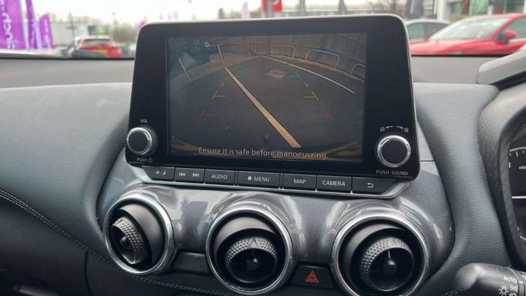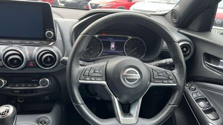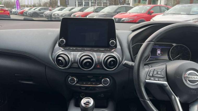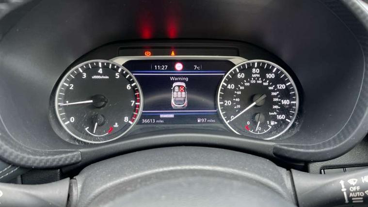 Alarm, Immobiliser, Intelligent Key with push button starter, Remote central locking, 6 speakers, Bluetooth system, USB, Aux-in and 12V socket, DAB Digital radio, Rear console USB port, ABS with EBD and brake assist, Active ride control, Active Trace Control, Driver and passenger airbags, Driver and passenger side airbags, Electric handbrake with auto hold function, Electronic Stability Programme (ESP), Front and rear curtain airbags, Height adjustable seatbelts, Hill start assist, Intelligent emergency braking with pedestrian and cyclist recognition, Seatbelt reminder for driver/front passenger and rear seats, Single tone horn, Three 3 point rear seatbelts, Traction control, Tyre pressure monitoring system, VDC Dynamic Vehicle Control, Ventilated rear brake discs, Auto dimming interior rear view mirror, Automatic hazard signal with emergency stop signal, Body colour bumpers, Body colour door handles, Electrically adjustable door mirrors with integrated indicators, Follow me home headlights, Front and rear electric window with one touch driver and passenger window, Heated and auto folding door mirrors, High beam assist, LED daytime running lights, LED front fog lights, LED headlamps, LED rear fog lamp, LED rear lamps, Rain sensor windscreen wipers, Rear privacy glass, Rear spoiler, Rear wiper, Three blink turn signal, 3 height adjustable rear headrests, 60/40 split folding rear seat, Automatic climate control, Card holder on driver sunvisor, Cloth upholstery, Door ambient lighting, Driver and passenger sliding and reclining seats, Driver seat back pocket, Driver side rear coat hanger, Driver/passenger sunvisors and illuminated vanity mirrors, Front and rear cabin lighting, Front armrest, Front door pockets with bottle holders, Front head restraints, Front/rear passenger grab handles, Gear console ambient circle lighting, Grey synthetic leather kneepad, Height adjustable driver's seat, Internal chrome door handles, Leather gearshift knob, Leather steering wheel, Luggage board, Luggage space lighting, Monoform sporty seats, Multifunction steering wheel, Passenger seat back pocket, Rear door bottle holders, Telescopic steering wheel adjustment, Two cupholders in front centre console, Two rear isofix child seat anchorage points with top tether, Welcome light and console tray ambient lighting, 7" full colour TFT screen combimeter, 8" infotainment colour display with touch screen, Apple CarPlay and Google Android auto, Drive modes select (Eco, normal and sport), Emergency and breakdown call, Front parking sensor, Idle start/stop system, Intelligent lane intervention, Lane departure warning system, Nissan connect nav with TomTom traffic, Nissan connect services and Wifi connection, Outside temperature sensor, Power Steering, Rear parking sensor, Traffic sign recognition, Trip computer, Voice recognition switch on steering wheel, Gasoline particulate filter,