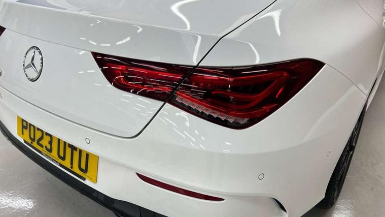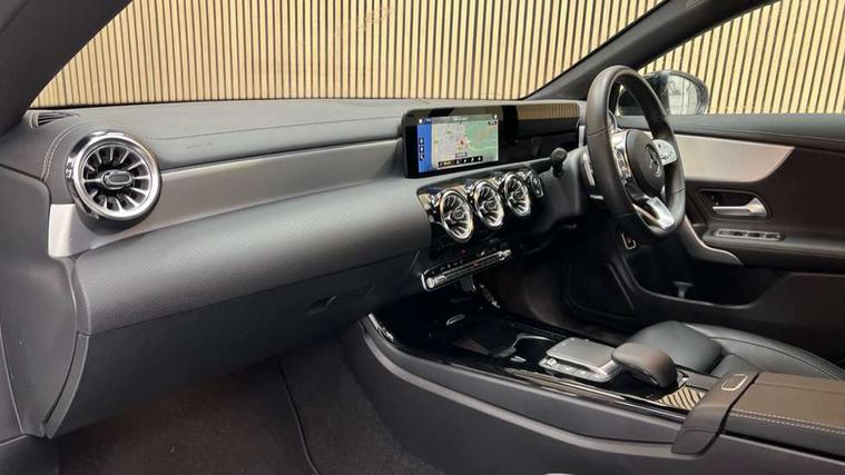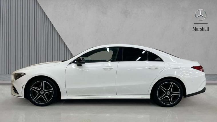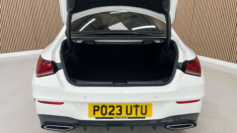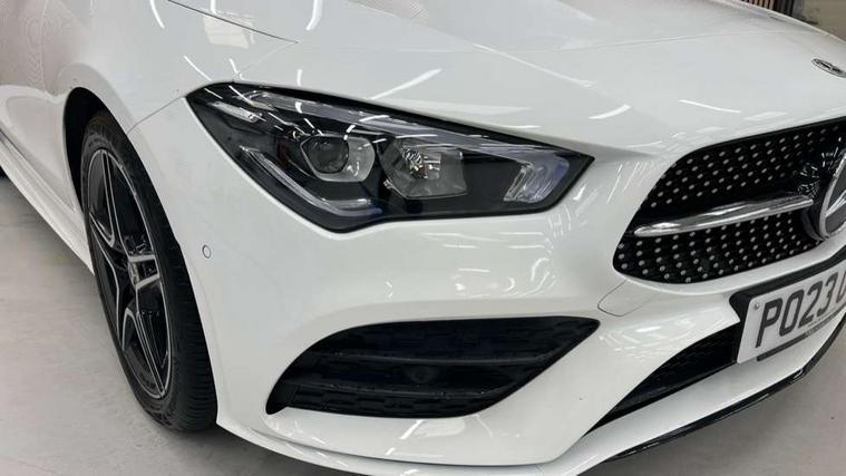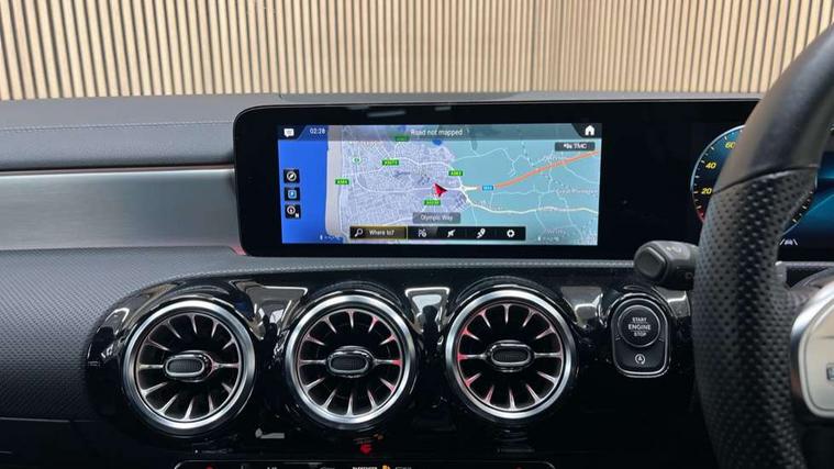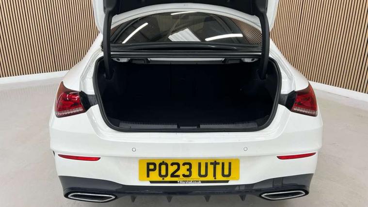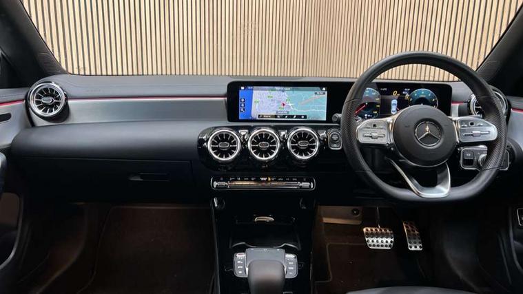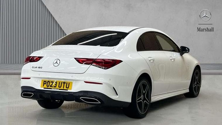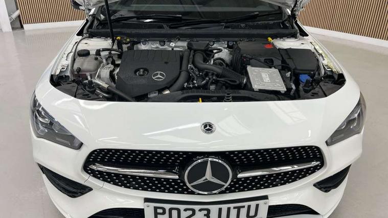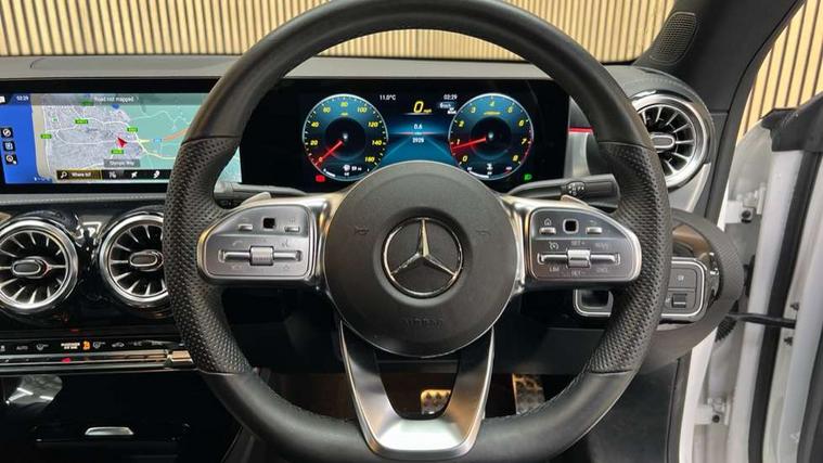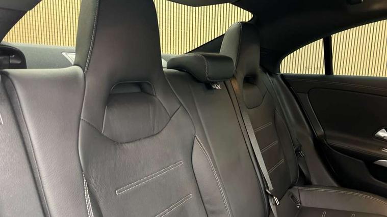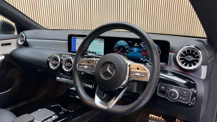 10.25 inch Instrument display with digital cockpit, 10.25 inch touchscreen central media display, Active lane keeping assist, Attention assist - Monitors steering behaviour and long journey fatigue, Bluetooth connection, Car wash mode, Cruise control with limiter, Direct steer system with speed sensitive power steering, DYNAMIC SELECT with a choice of driving modes (ECO, Comfort, Sport and Individual), ECO start/stop function, Fluid level warning indicator for fuel, oil, coolant and washer fluid, Hard-disk navigation, Hey Mercedes Voice activation, Lamp failure indicator, Mercedes me connect including emergency call system, accident recovery, breakdown and maintenance management, Mercedes me remote services, Outside temperature gauge, Owners manual and service booklet in English, Pre-installation of private car share, Preinstallation for Mercedes Benz link, Radio aerial integrated into front and rear windshields, Service indicator (ASSYST), Smartphone integration with Apple CarPlay and Android auto, Speed limit assist, Trip computer in multifunction display with current consumption indicator, Lowered comfort suspension, Rear axle multi-link, DAB digital radio tuner, MBUX multimedia system, Mercedes Benz sound system (100 W) with 6 speakers, USB (type C) ports (2) in stowage compartment and 1 in front of centre console, Adaptive brake lights, AMG body styling with AMG front apron and rear apron and visible exhaust tailpipe in chrome trim elements, AMG bodystyling side skirts, Body colour bumpers, Body colour door handles, Chrome beltline strips, Diamond radiator grille pins in chrome, Electric windows, Electrically adjustable and heated door mirrors with integrated LED indicators, Exhaust system with 2 Visible tailpipe trim elements and rear apron with trim in chrome, Headlamp assist automatic headlamp activation, Heated glass rear windscreen + timer control, High level LED third brake light, Interior mirror with black reading lamps and frameless, LED high performance headlamps with integrated LED daytime running lights, LED tail lamp, Privacy glass with dark tinting on rear side windows and rear window, Rain sensing windscreen wipers with two sensitivity settings, Rear boot, Rear fog lamp, Rear side wing doors, Variable front intermittent wipers, Window line trim strip in chrome, 3 seat bench in 2nd row, 3 spoke flattened bottom nappa leather multifunction steering wheel with perforated leather in grip area, 40:20:40 split folding rear seat backrests, Air conditioning - Two zone thermotronic luxury automatic climate control with display, Air vents with surround in silver chrome, Artico man-made leather upholstery, Automatic child seat recognition sensor, Black roof lining, Brushed stainless steel sports pedals with rubber studs, Floor mats with stitched AMG lettering, Front centre armrest with stowage, Front door sills with Mercedes Benz lettering, Galvanished gear shift paddles on steering wheel, Heated front seats, Illuminated glove compartment stowage, Interior lighting - 64 colour Ambient lighting, Luggage net on driver/front passenger seat backrest, Manually adjustable front seats, Manually height and reach adjustable steering column, Rear head restraints, Single front passenger seat, Sport seats with fixed head restraints, Stowage compartment in centre console with retractable cover, Sunvisors with illuminated vanity mirrors, Touchpad on center console, Twin front cupholders, Two outer rear seat isofix and top tether child seat fixing points, Light and sight pack - CLA, Mirror pack - CLA, Night package - CLA, Parking package - CLA, Seat comfort pack - CLA, Active bonnet pedestrain safety measure which detects an impact and raises bonnet by 65mm, Active brake assist includes forward collision warning system with autonomous braking, Adaptive brake assist with hold function and hill start assist, Anti lock braking system (ABS) with brake assist, Black seat belts, Bonnet with power domes, Brake pad wear warning indicator, Childproof locks manually operated for rear doors and electrically operated for rear power windows, Crash responsive emergency lighting, Driver and front passenger head and sidebags, Driver and front passenger windowbags, Drivers knee airbag, Dual stage driver and front passenger airbags, Electric parking brake, Electronic stability programme with acceleration skid control, ESP curve dynamic assist, Front and rear seatbelt reminder, Front passenger seat occupancy sensor, Three point rear seat belts, Tyre pressure monitoring system, Warning triangle and first aid kit, Guard 360 degree guard vehicle protection system with immobiliser and interior protection, Keyless Go starting function, Remote central locking and crash sensor with emergency opening function, Light aluminium with longitudinal grain interior trim, 18" AMG 5 twin spoke light alloy wheels painted in black with high sheen finish, Summer tyres, Tirefit tyre sealant kit,