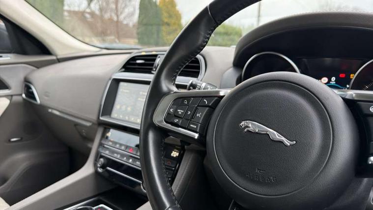 Analogue dials with 7" central TFT display, Auto speed limiter, Driver condition monitor, Eco driving style assistant, Front parking aid, Lane departure warning system, Lane keep assist with driver alert control, Outside temperature gauge, Pro services and wifi hotspot, Push button starter, Rear parking aid, Satin chrome surround on touch screen, Service interval indicator, Servotronic speed sensitive power steering, Start up sequence with movement in dials and lighting, Traffic sign recognition, Trip computer, Voice control system, All terrain progress control, AM/FM radio, Bluetooth connectivity including audio streaming, DAB Digital radio, Dynamic volume control, InControl protect, USB/iPod connection, 3 flash lane change indicators, Approach Illumination, Auto dimming rear view mirror, Automatic headlights, Black rear bumper valance, Body colour bumpers, Body colour door mirrors, Dual tailpipe, Electric front/rear windows with one touch/auto up/down, F-Pace badge, Front fog lights, Grained black door claddings, Green tinted heat insulating glass, Headlight washers, Heated rear window with timer, Heated washer jets, Illuminated metal tread plates with Jaguar script, LED tail lights, Rain sensor windscreen wipers, Rear fog lights, Rear metal tread plates, Rear wiper, Trailer stability assist, Variable front intermittent wipers, 12V power point front, 12V power point in luggage area, 2nd row air vents, 3 rear headrests, 40:20:40 split folding rear bench seat, Bright metal foot pedals, Centre armrest console, Door sill tread plates, Fold flat front seats, Front centre armrest with storage compartment, Illuminated glovebox, Illuminated luggage compartment, Interior front door handles with separate locking switches, ISOFIX on outer rear seats, Jaguar sense, JaguarDrive selector, Luxury seats, Multifunction steering wheel, Overhead lighting console, Perforated Windsor leather upholstery, Premium carpet mats, Rear armrest with 2 cupholders, Reversible boot floor, Shopping hook in boot, Sport leather steering wheel, Steering wheel gearshift paddles, Sunvisors with illuminated vanity mirrors, Tie down hooks in luggage area, Twin front covered cupholders, Connect pro pack - F-Pace, 3x3 point rear seatbelts, ABS, Anti-whiplash front headrests, Autonomous emergency braking (AEB) with forward facing camera, Brake pad warning light, Driver/Front Passenger airbags, DSC - Dynamic Stability Control, Electronic parking brake, Front and rear curtain airbags, Front and rear seatbelt reminder, Front passenger seat occupancy sensor, Front side airbags, Grey brake calipers, Hill start assist, Power child locks, Torque vectoring brake, Traction control, Tyre pressure monitoring system, Immobiliser, Keyless start, Perimeter alarm, Remote central locking, Valet mode, Luxtec door trim, Luxtec wrapped instrument panel, Satin chrome centre console surround,