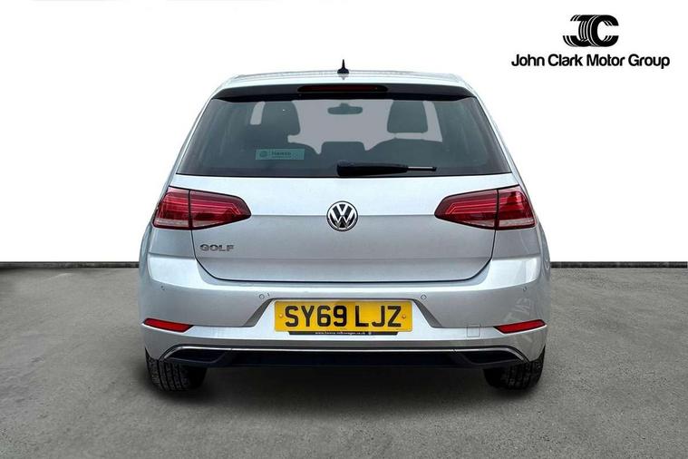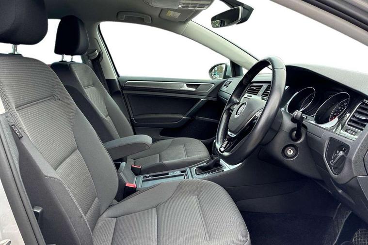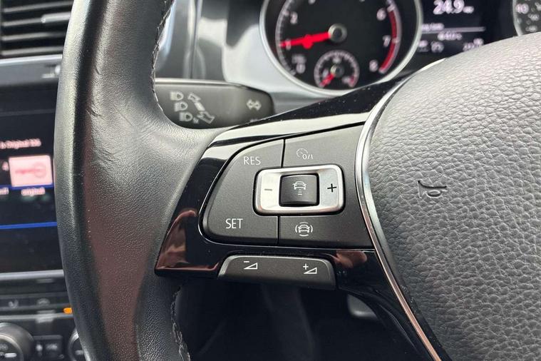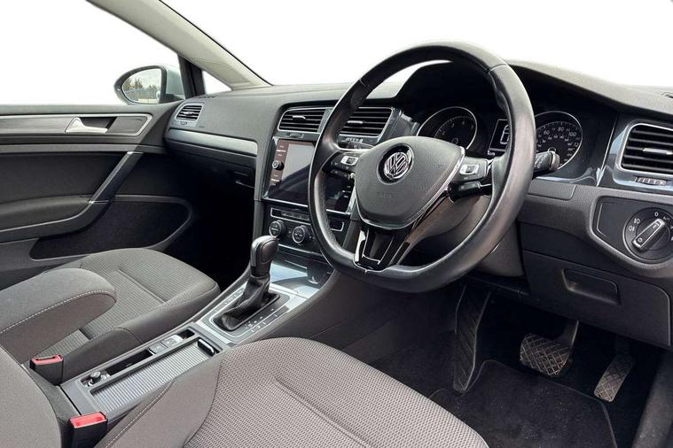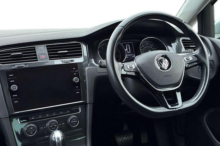 'Lights On' Reminder warning buzzer, ACC - Adaptive cruise control with front assist, forward collision warning, distance monitoring, city emergency brake and speed limiter, Bluetooth telephone and audio connection for compatible devices, Brake pad wear indicator warning light, Driver alert system, Driving Mode Selection with four preset modes - Eco, normal, sport or individual modes, Instrument cluster in white, Multifunction computer with visual gear change recommendation for fuel consumption, Power assisted speed sensitive electro-mechanical steering, Push tank flap, Speed limit display, Speedo, rev counter, electronic odometer, trip, service interval display, exterior temperature and fuel gauge, Stop/start system, Think blue trainer driver tips and journey analysis, Warning buzzer and light for front seatbelts unfastened, We Connect Go Dongle, Battery regeneration during braking, XDS electronic differential lock, Composition media system, DAB Digital radio receiver, Driver Personalisation profile selection, MP3/WMA compatability, Multi device interface (MDI) with USB connection, Personalisation 1.1 profile for media, Premium USB cable in choice of either Apple or Android smartphone compatibility, SMS Functionality, Title and cover art display, 4 X 20W output, USB connection and socket, USB and SD card connectivity, Auto dimming rear view mirror, Black front air intake and radiator grille with chrome insert, Black rear diffuser, Body colour bumpers, Body colour door handles, Body colour door mirrors with integrated indicators, Dusk sensor + automatic driving lights, Electric front windows, Electric rear windows, Electrically adjustable and heated door mirrors, Fully galvanised body, Heated rear windscreen, Hidden exhaust pipe, High level 3rd brake light incorporating LED Technology, LED front fog lights with static cornering light function, Range adjustable headlights via infotainment system with LED daytime running lights, Rear fog lamp, Rear number plate lights incorporating LED technology, Rear tinted glass 65% light absorbing from B pillar backwards, Rear window aerial, Rear window wash/wipe with intermittent wipe, Reflectors in all doors, Remote electrically foldable door mirrors, door mirror puddle lights and reverse activated kerb-view adjustment on passengers door mirror, Tailgate with integrated rear roof spoiler, Windscreen wipers/ intermittent wipe + 4 position delay, 12V socket in luggage compartment, 3 rear headrests, 4 load lashing points in luggage compartment, 60/40 split folding rear seat backrest, Auto fold down lever in rear seat backrest, Bag hook in luggage compartment x 2, Black decorative sleeve on gear handles, Cooled glovebox, Cover for storage compartment in centre, Cupholder cover, Dust/pollen filter, Front and rear reading lights X 2, Front centre armrest with storage compartment and two rear air vents, Front seat back storage pockets, Grab handles front x 2, rear x 2 with integrated coat hooks, Height and reach adjustable steering wheel, Illuminated vanity mirrors, Instrument lighting white adjustable panel illumination, Interior light delay, Isofix preparation for 2 rear child seats, Load through provision with rear centre armrest and cupholders x2, Luggage compartment lighting, Overhead storage box, Passenger underseat drawer, Pearl grey headlining, Storage box in luggage compartment, Storage compartment in roof console with cover, Storage compartments in centre console, Storage compartments in front doors, Storage compartments in rear doors, Stowable luggage compartment cover, Sun visors, Variable boot floor, height adjustable and removable, Convenience Pack - Golf, Light and Sight pack - Golf, Mirror pack - Golf, 3 rear three point seatbelts, Airbags - Driver's and front passenger's, curtain airbag, Driver's knee, front side impact and passenger's airbag deactivation switch, Anti-lock Braking System (ABS) with Hydraulic Brake Assist (HBA), Automatic post collision braking system, Child locks on rear doors, Driver/Passenger optimised head restraints, Electronic parking brake with auto hold, Electronic stability control (ESC) including Electronic differential lock (EDL) and ASR (Traction control) with deactivation via infotainment system, Front ventilated disc brakes and rear disc brakes, Pre crash preventive occupant protection, Three point height adjustable front seatbelts with tensioners, Tyre pressure loss indicator, Alarm with interior protection and deactivation via infotainment system, Electronic engine immobiliser, Brushed dark silver decorative inserts in dash and door panels, Chrome plated air vent surround, Chrome-plated light switch surround, Polar night black decorative inserts in centre console, Steel space saver spare wheel,